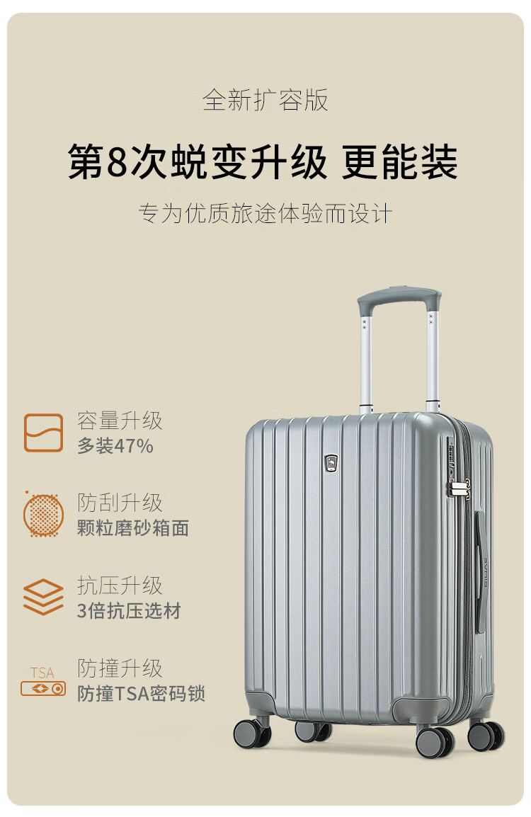 Diplomat外交官行李箱20英寸扩充层拉杆箱男登机旅行密码箱女TC-6012TM银