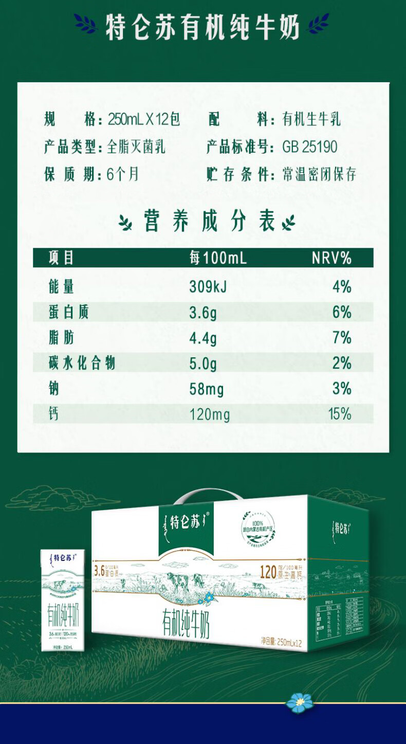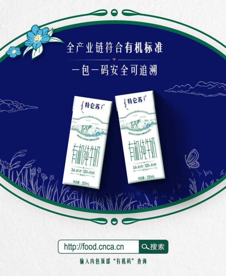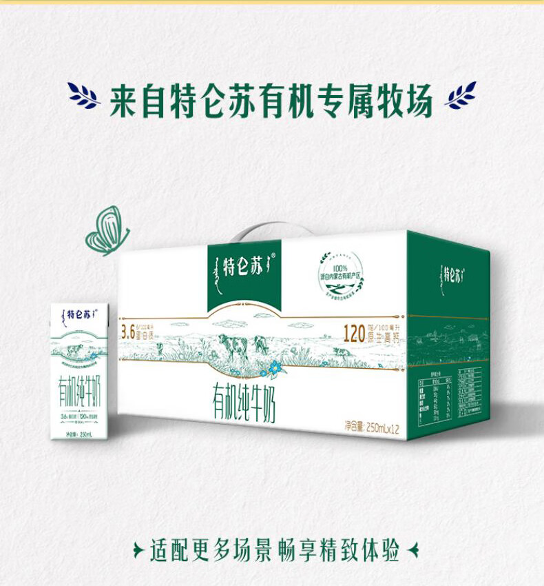 特仑苏有机纯牛奶250mL*12盒【电商定制】