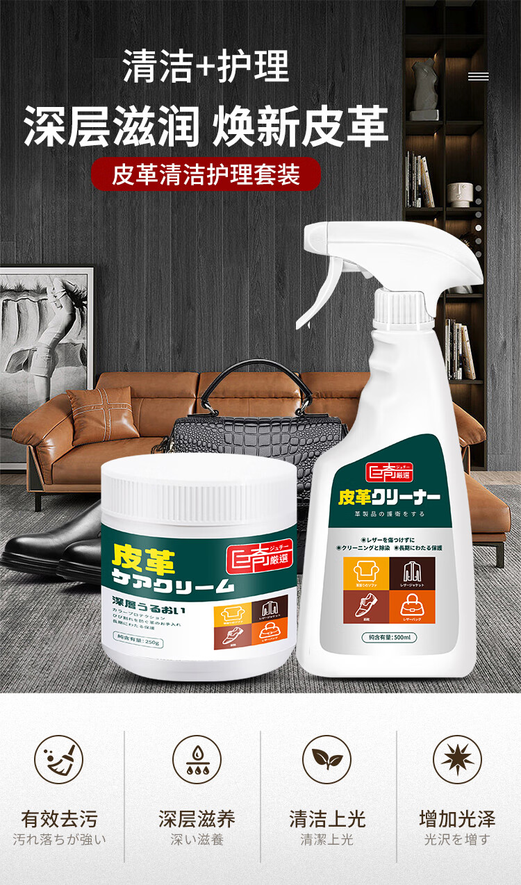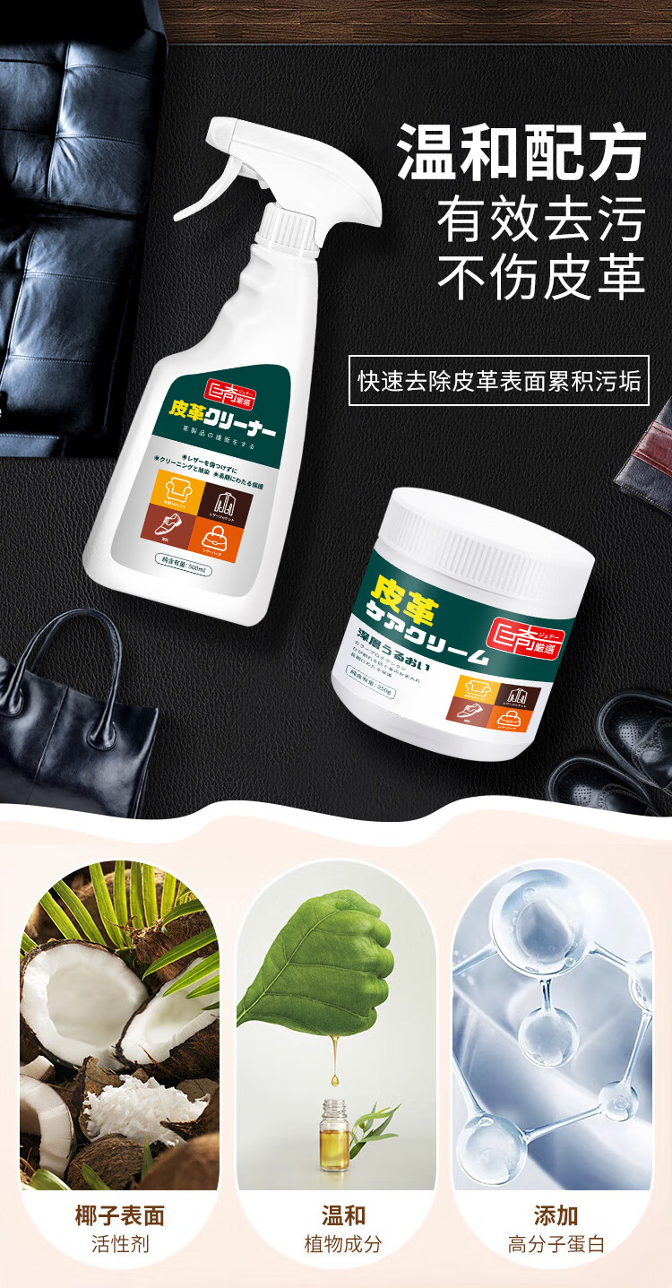 巨奇严选 皮革清洁剂真皮沙发汽车座椅清洗剂皮衣皮鞋皮具护理剂500ml