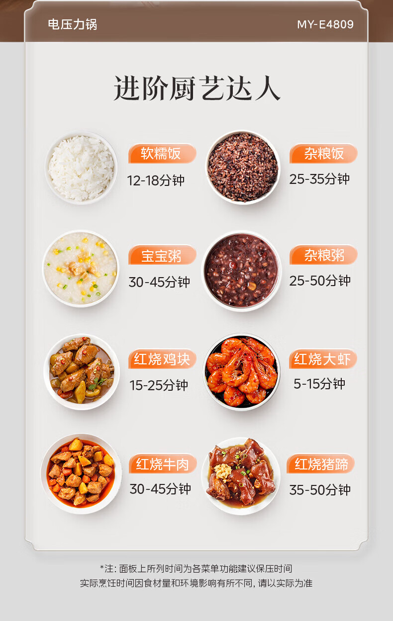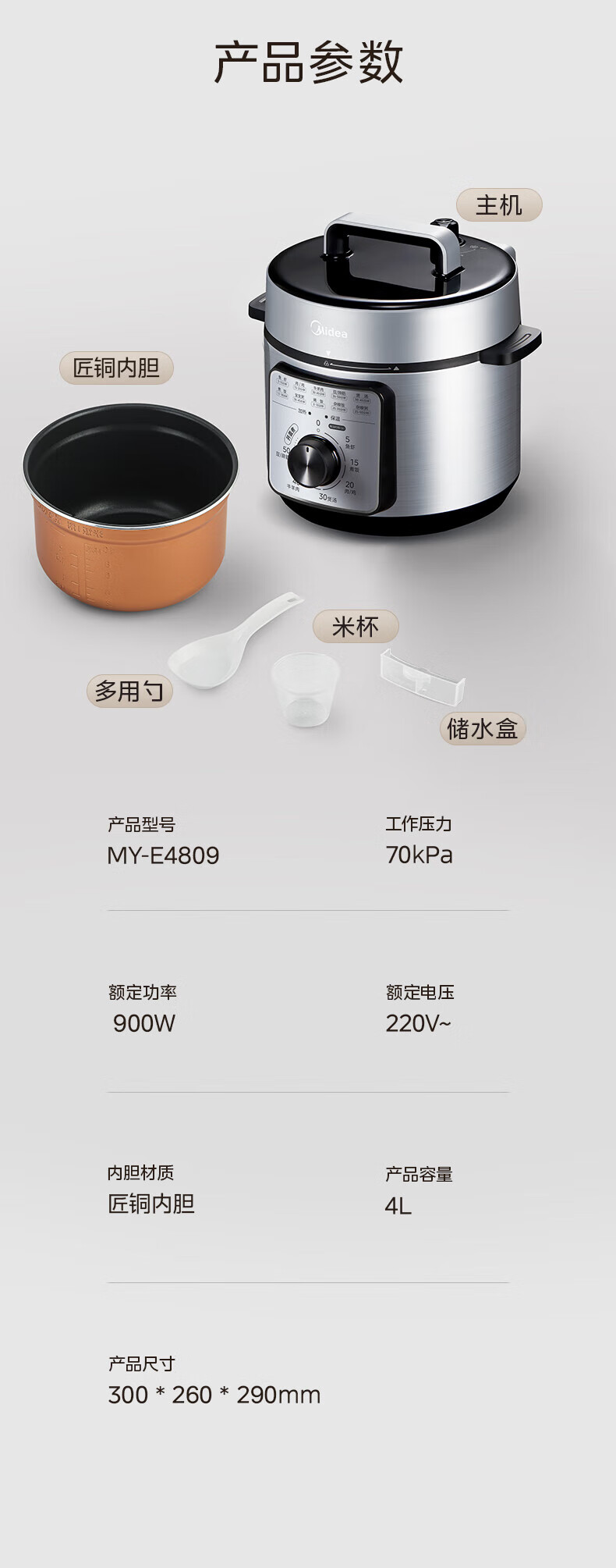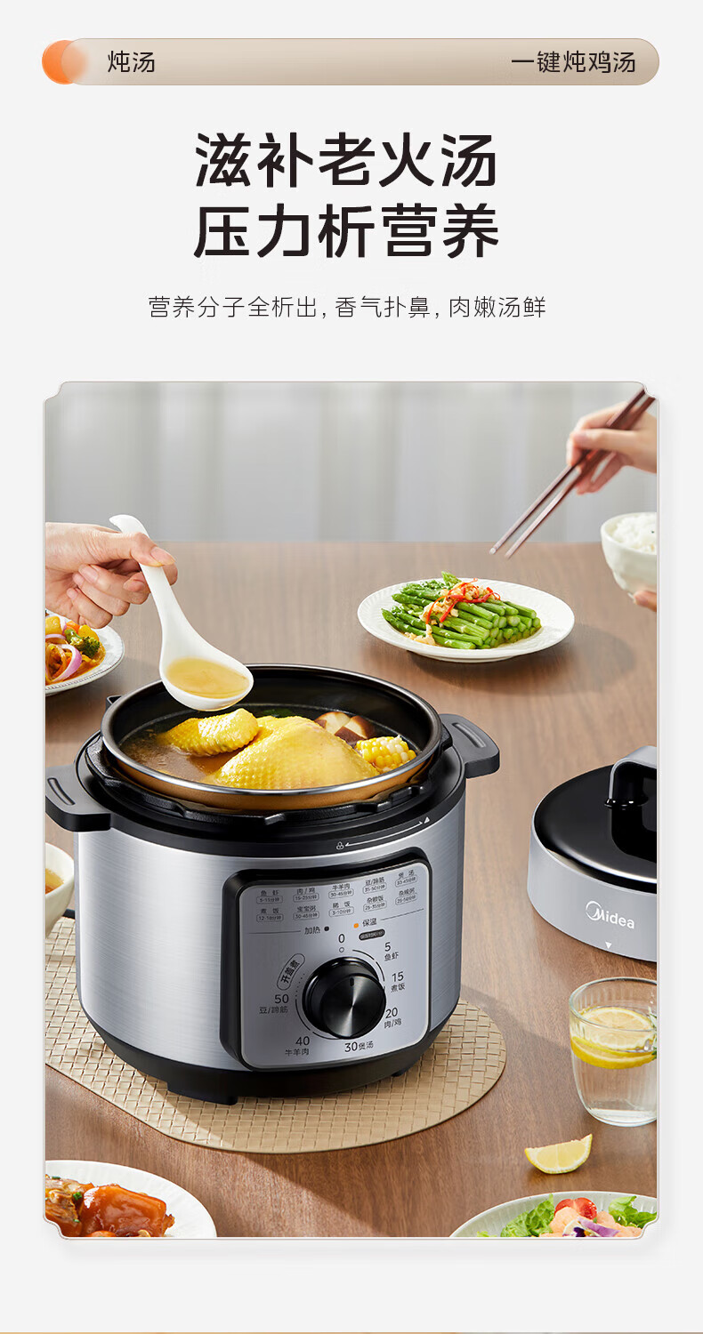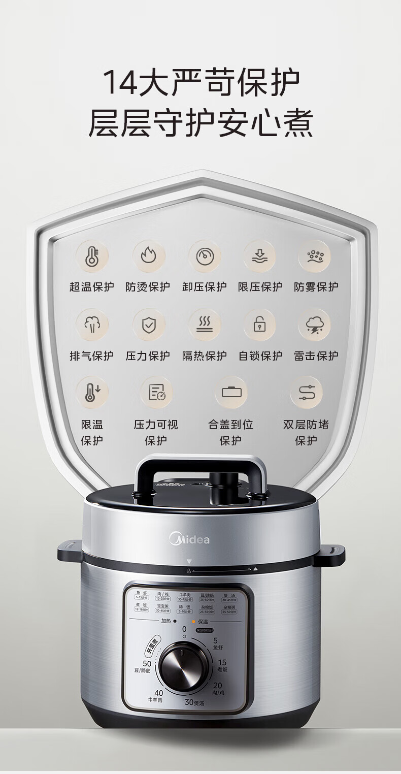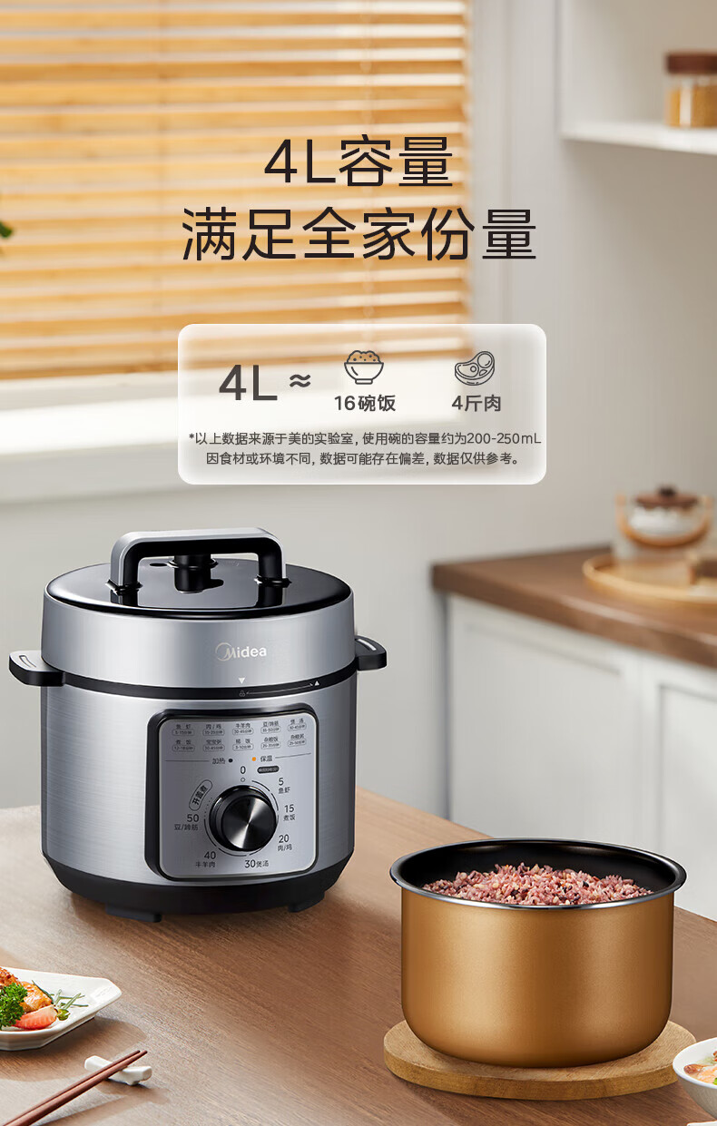 美的(Midea)电压力锅家用不粘锅70kPa高压饭锅3-6人 旋钮操控机械款开盖煮煲汤炖煮小米粥电饭煲4L MY-E4809 【旋钮机械款】 4L