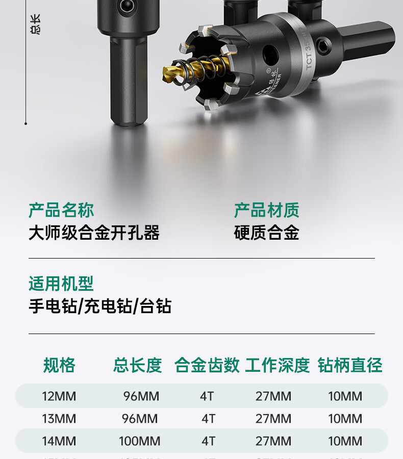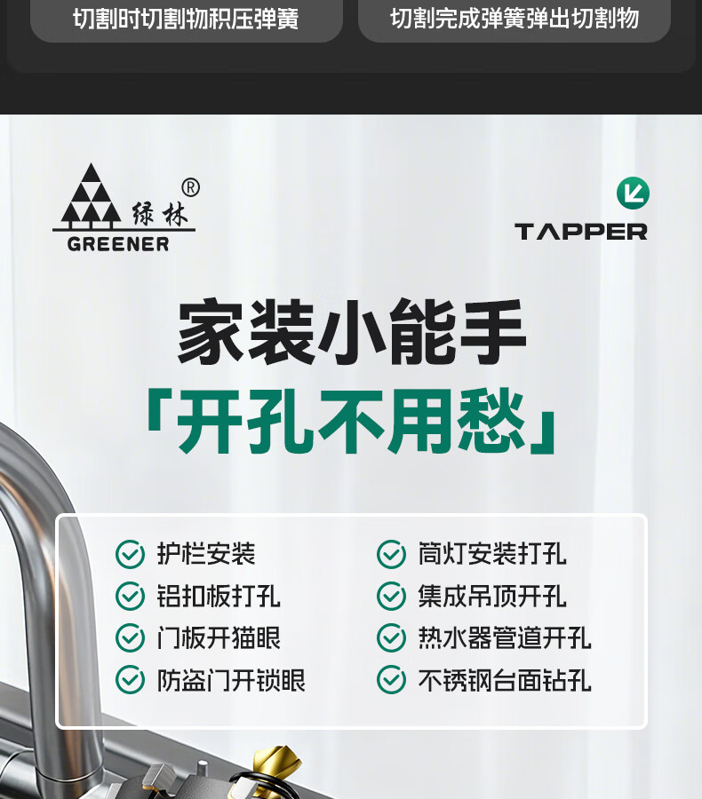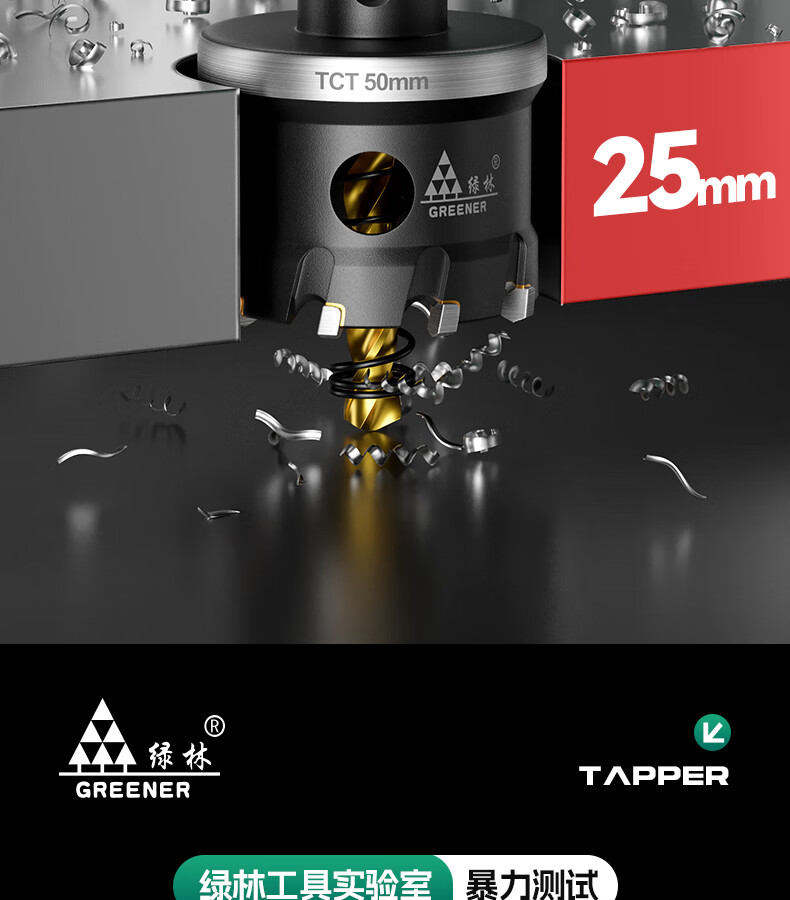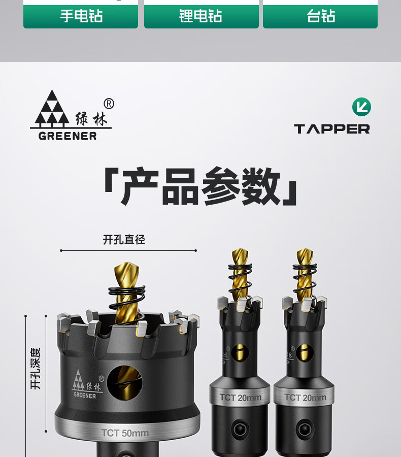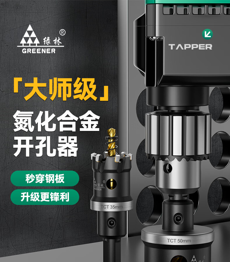 绿林(GREENER)不锈钢开孔器钻头304专用金属扩孔铝合金铁皮厚钢板开口打孔 氮化黑金款18mm