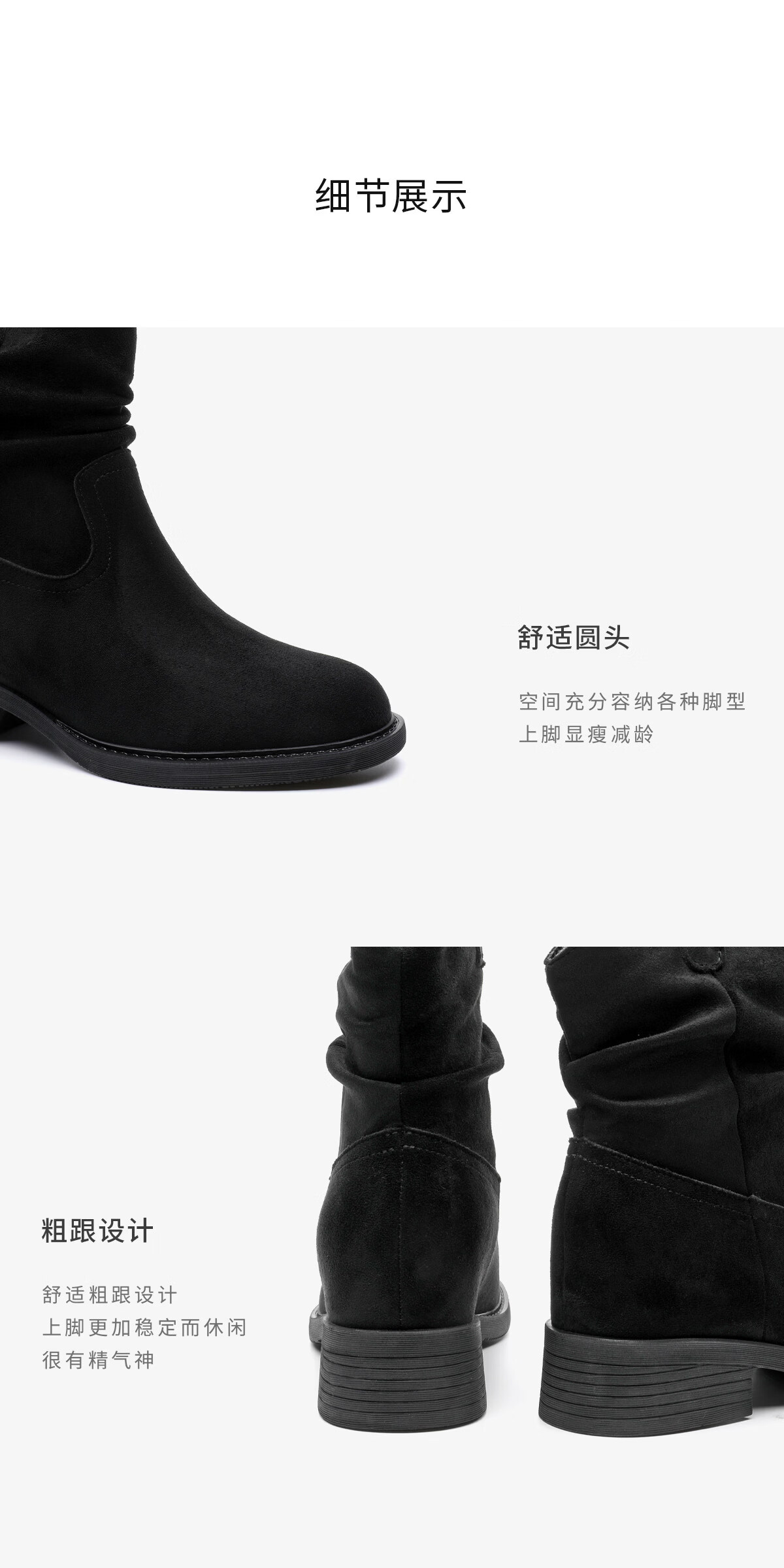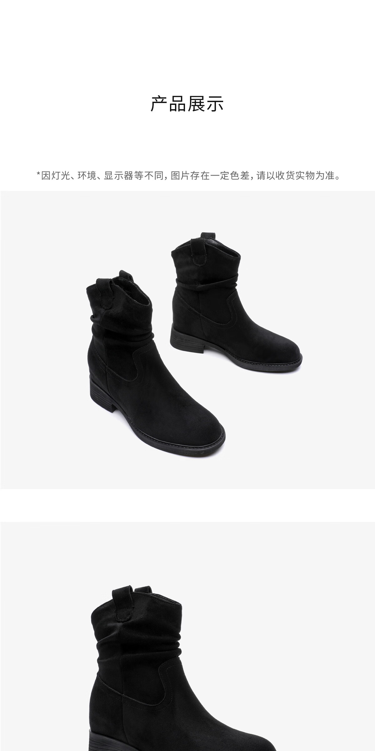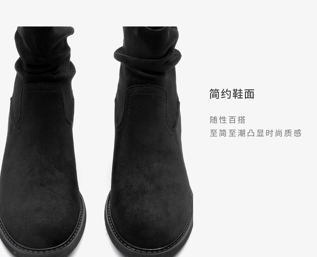 月芽儿英伦堆堆靴女款新款冬季复古短靴绒面马丁瘦瘦靴时装靴 绒里黑色01T 34