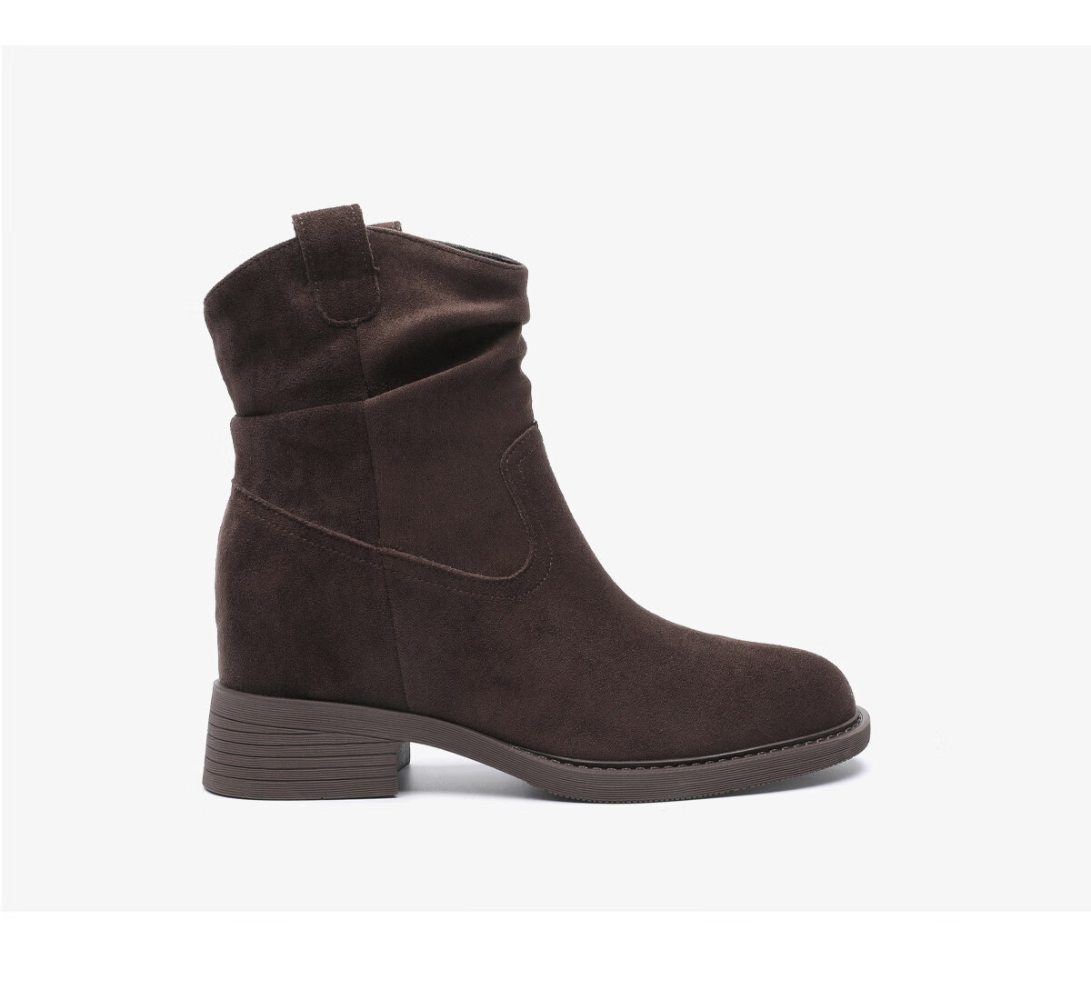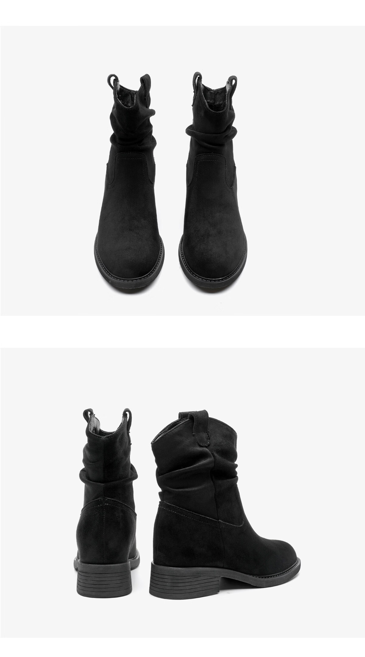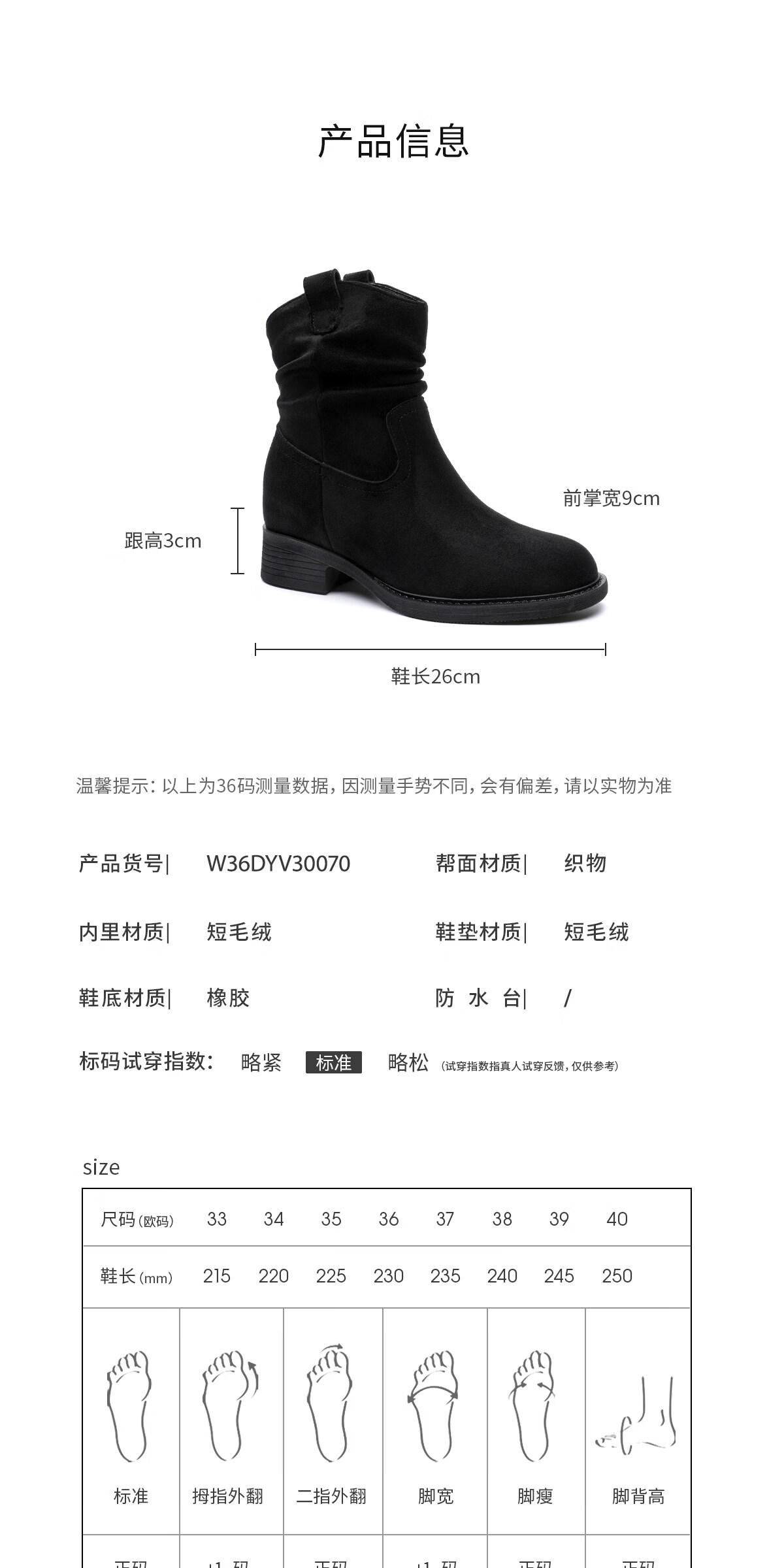 月芽儿英伦堆堆靴女款新款冬季复古短靴绒面马丁瘦瘦靴时装靴 绒里黑色01T 34