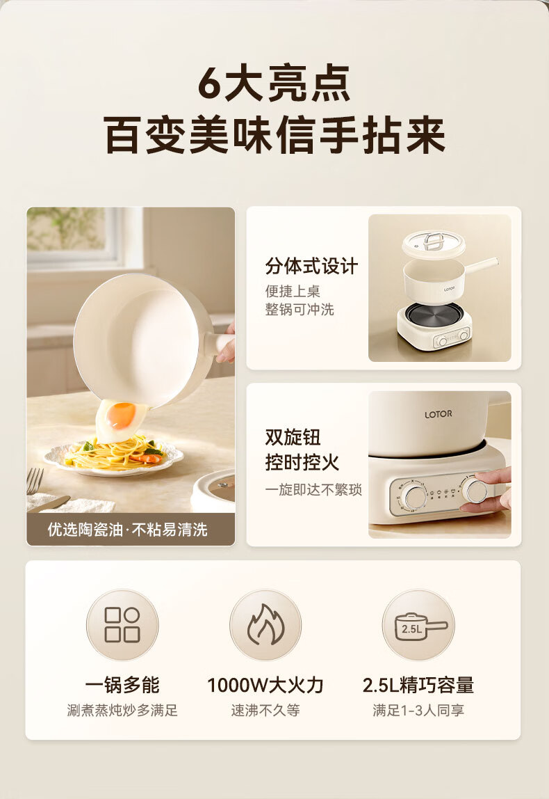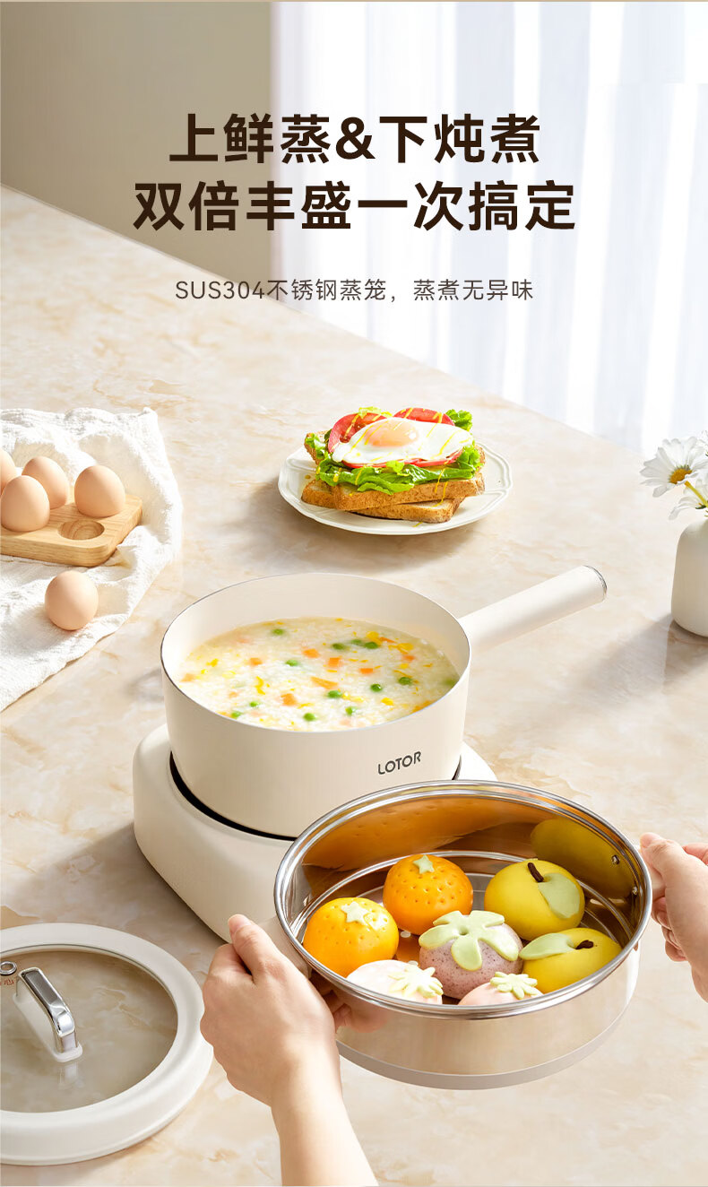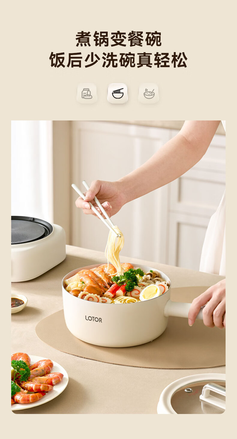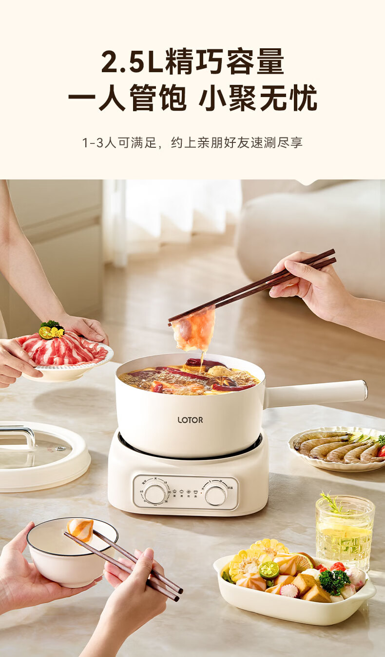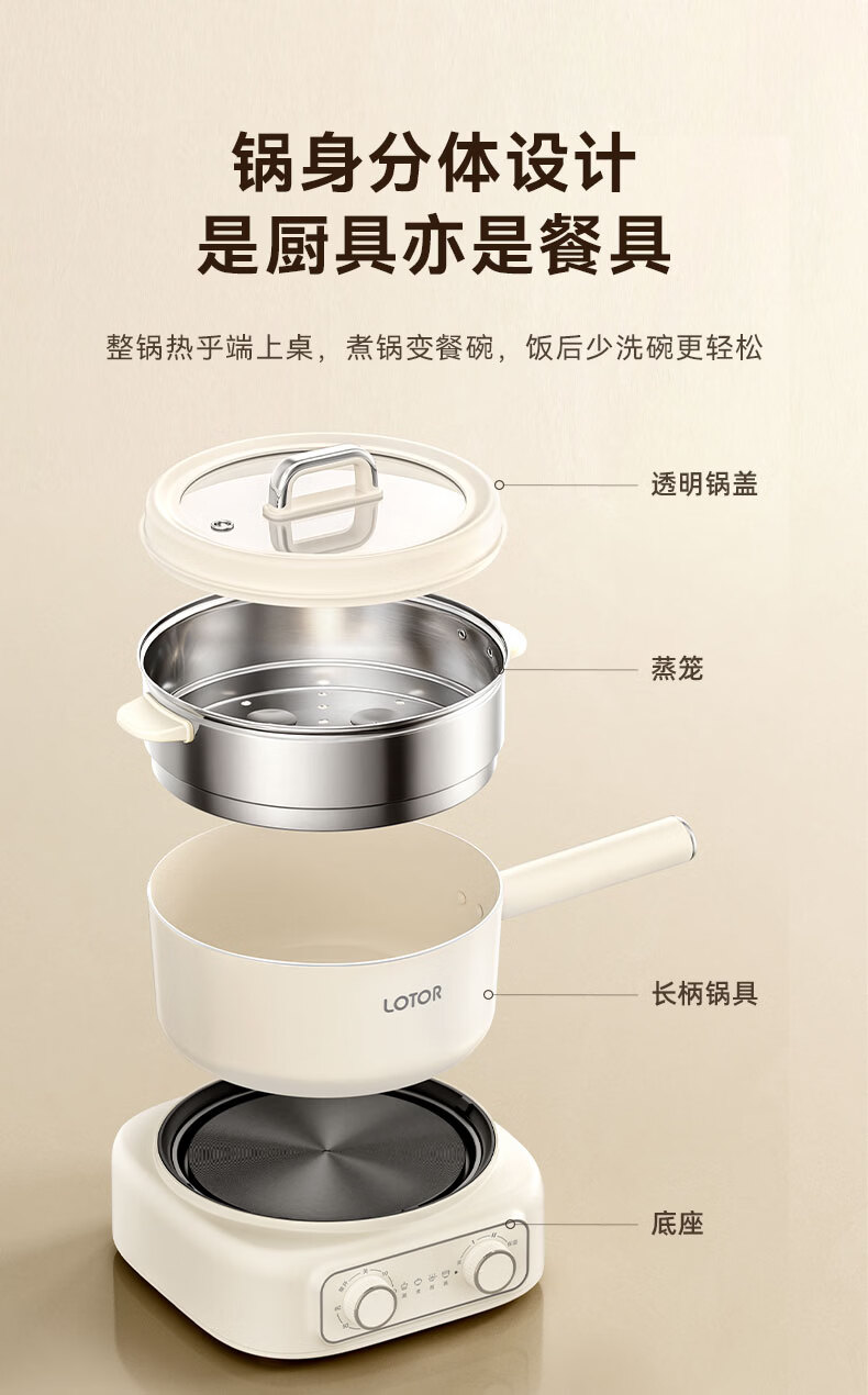 LOTOR徕多电煮锅分体式宿舍家用炒菜锅小型泡面一人食电火锅宿舍多功能蒸煮小电锅LD-DZG-F25基础款