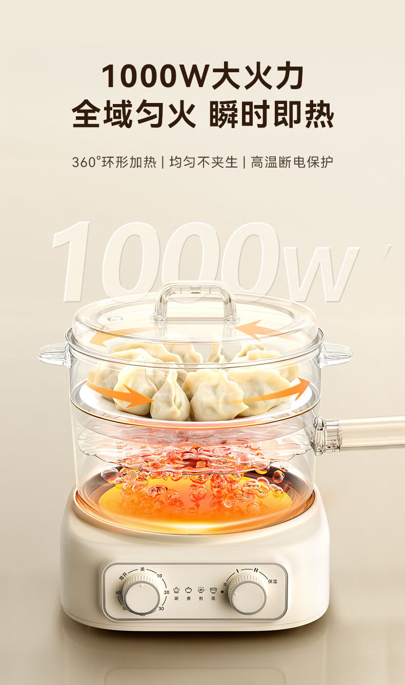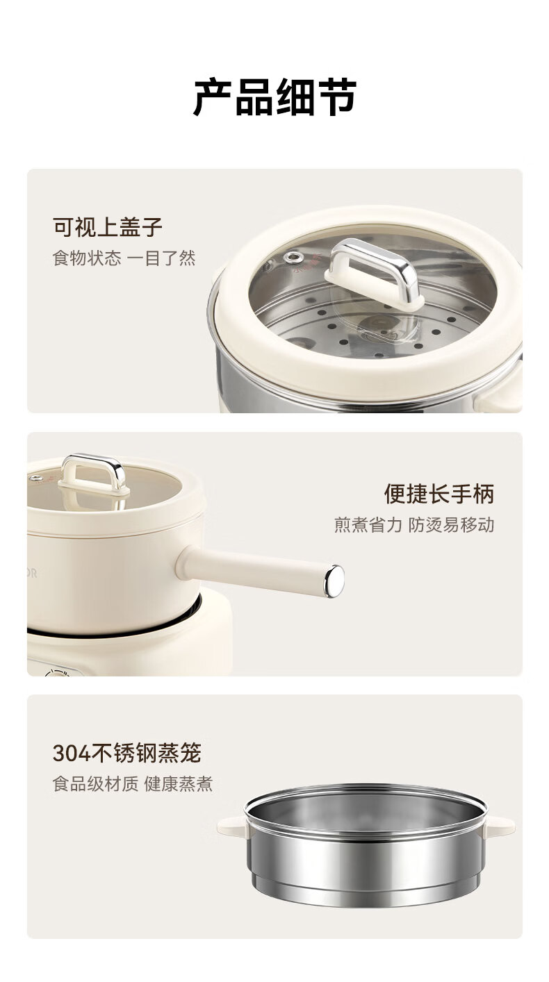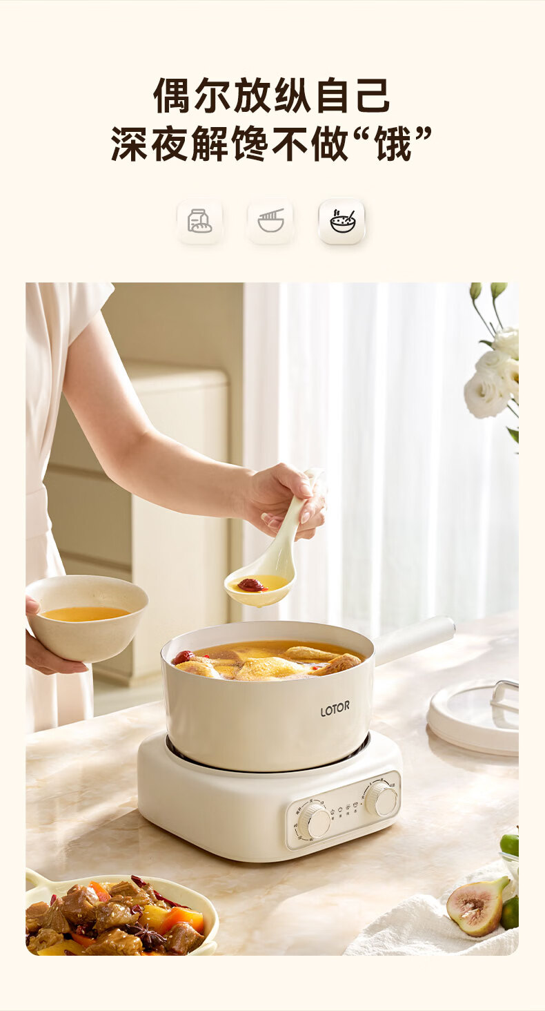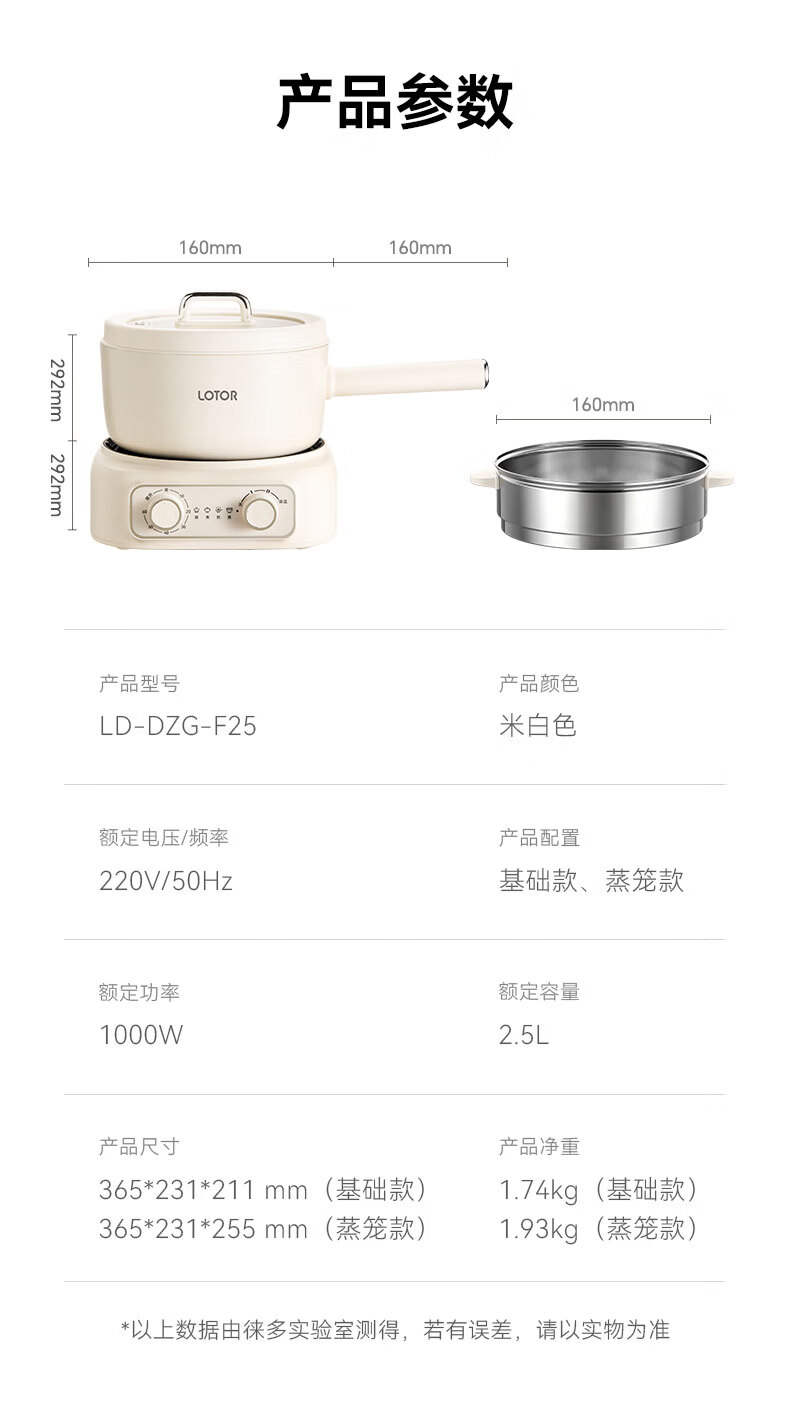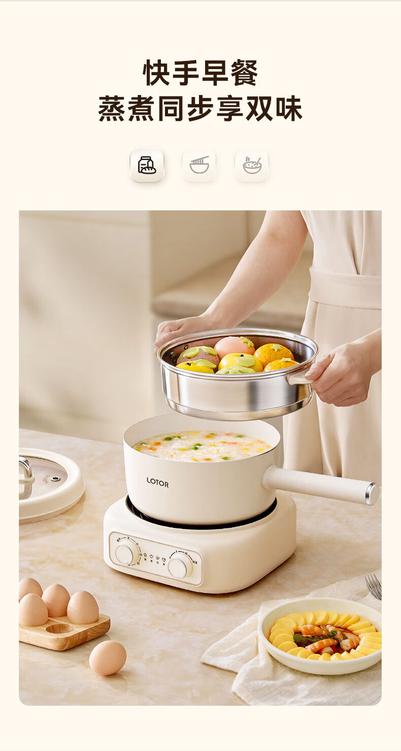 LOTOR徕多电煮锅分体式宿舍家用炒菜锅小型泡面一人食电火锅宿舍多功能蒸煮小电锅LD-DZG-F25基础款