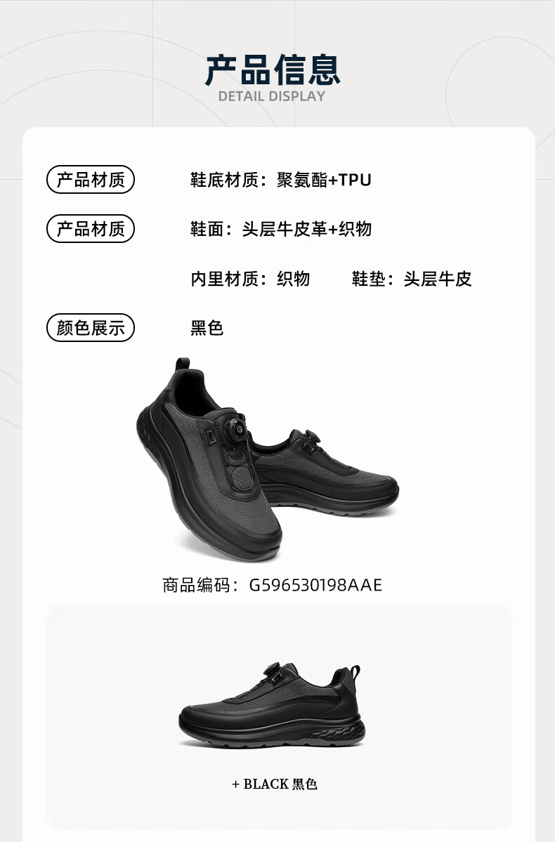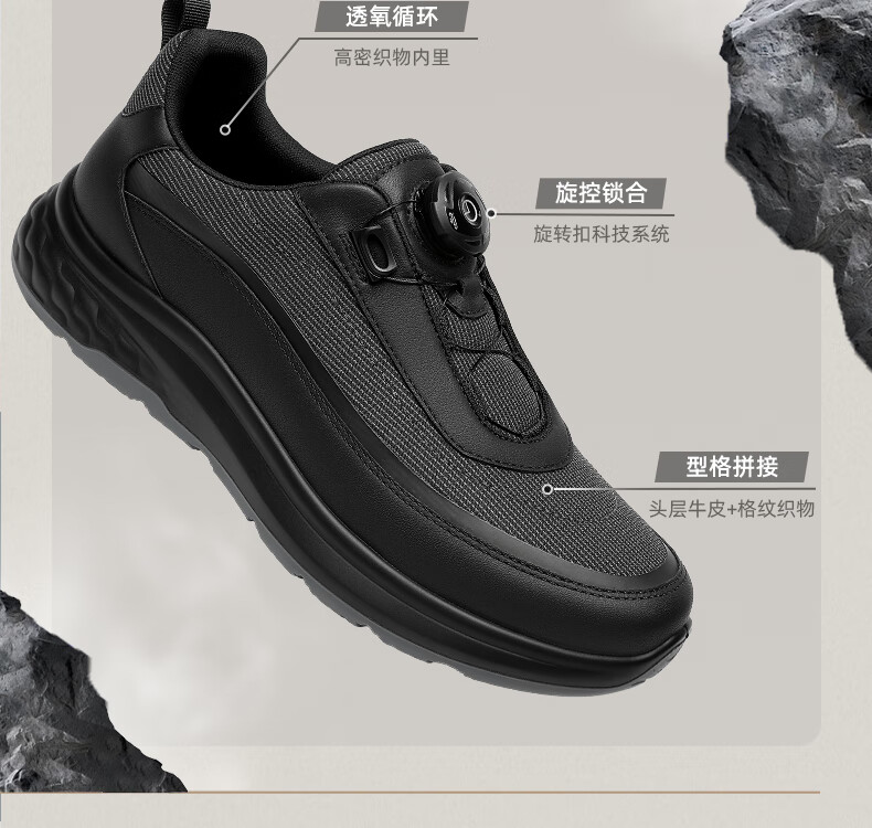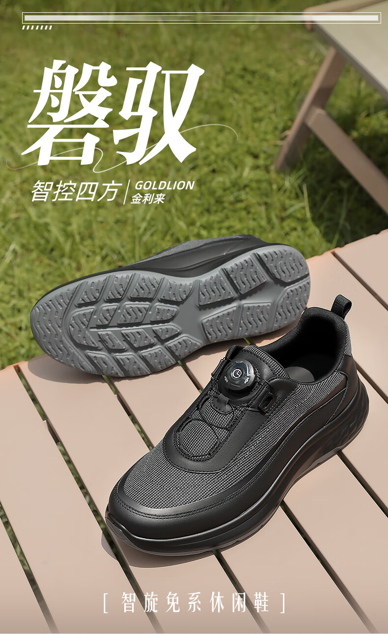 金利来(Goldlion)男鞋休闲鞋25年秋季新品厚底轻便缓震运动鞋男健步鞋皮鞋男跑步鞋 黑色 37