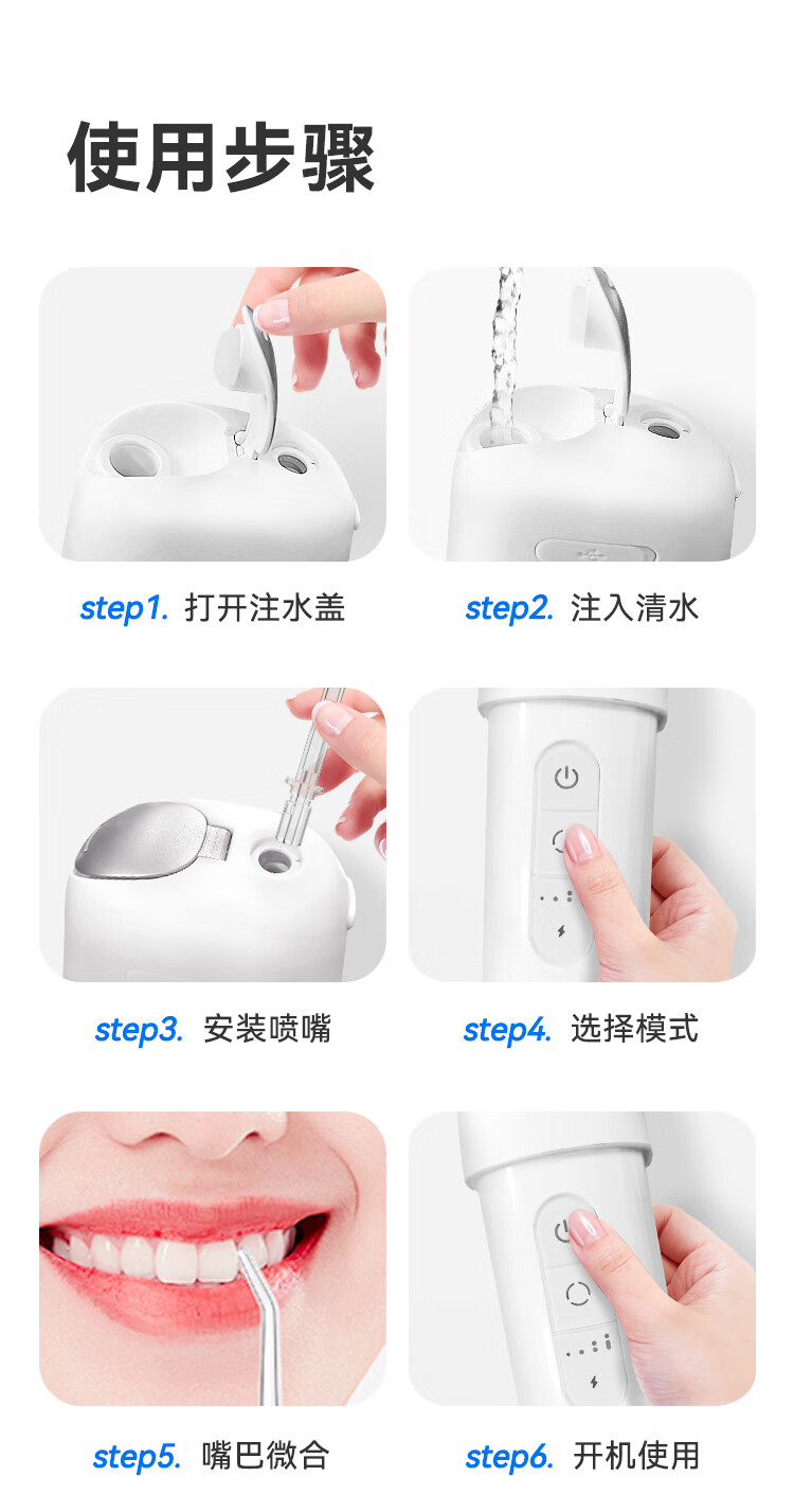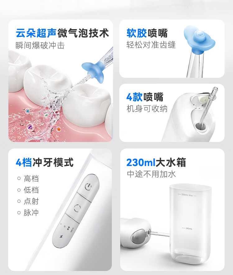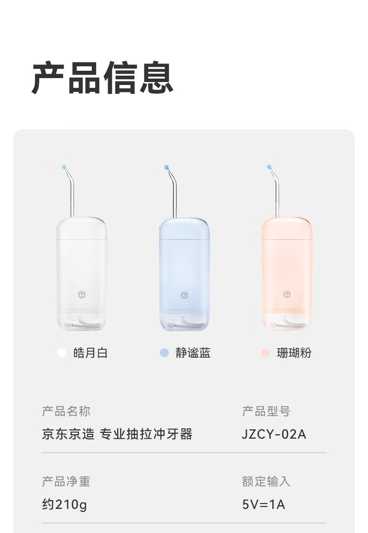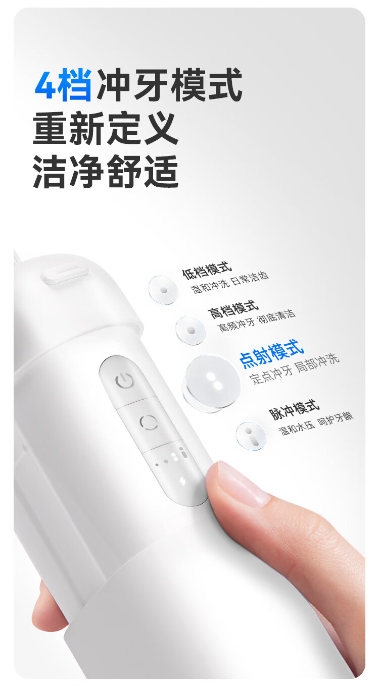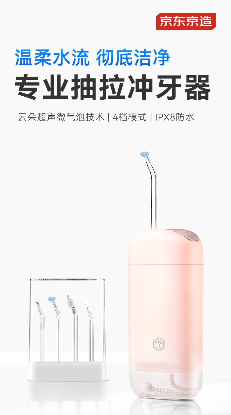 京东京造专业抽拉冲牙器便携式粉 4喷嘴收纳盒洗牙器水牙线洁牙器牙齿冲洗器正畸预防牙结石生日礼物男