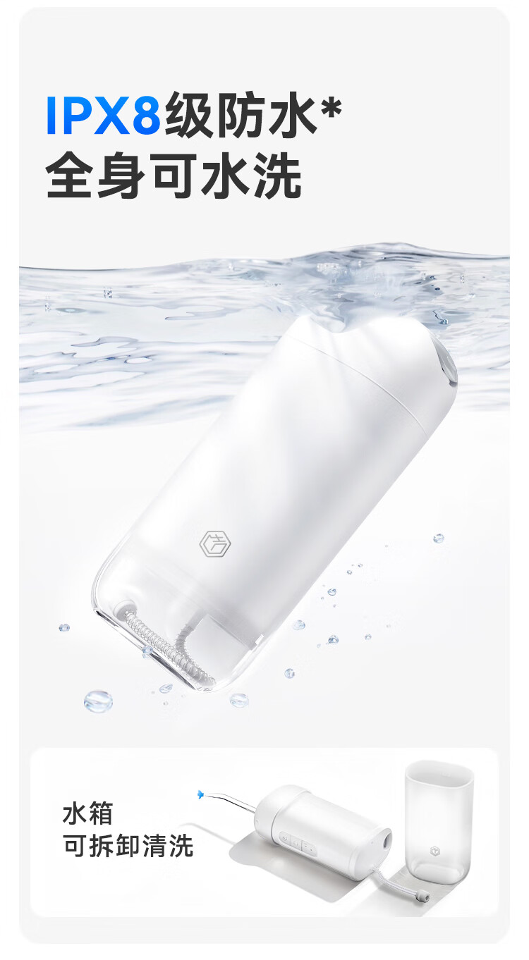博皓(prooral)冲牙器便携式洗牙器家用牙齿冲洗器洁牙器水牙线正畸清洁器除牙垢预防牙结石 送朋友父母礼物 F38 象牙白 标配 2支喷头