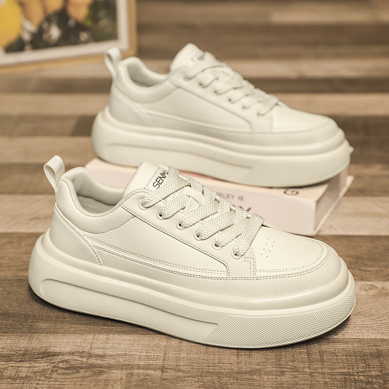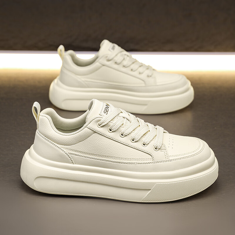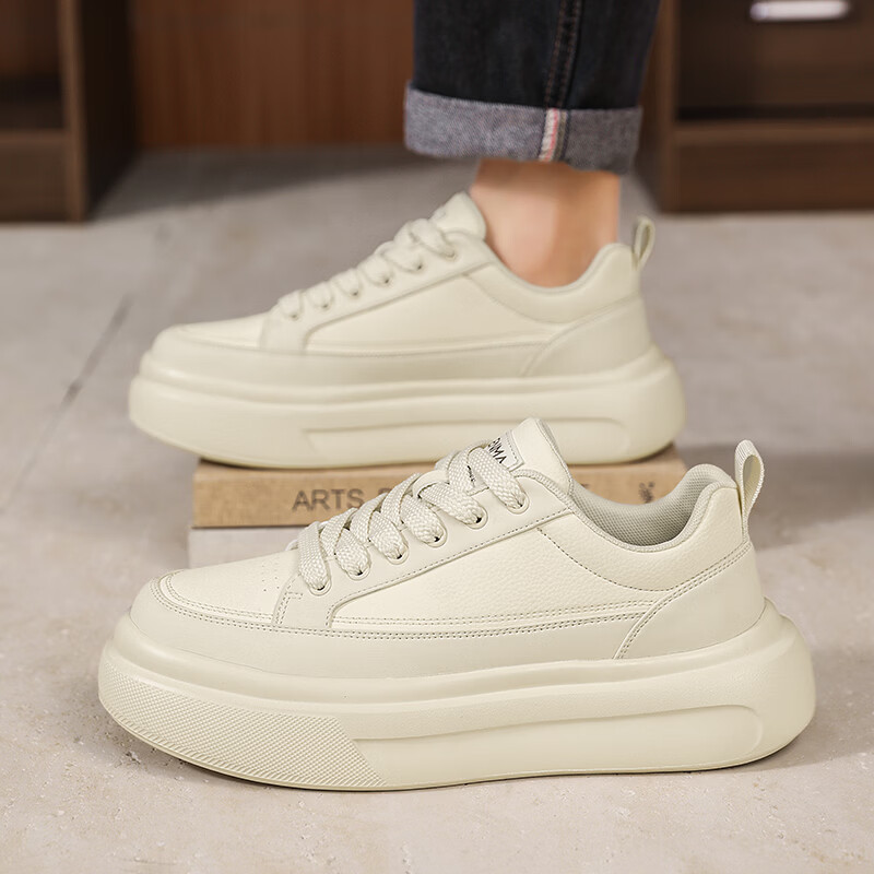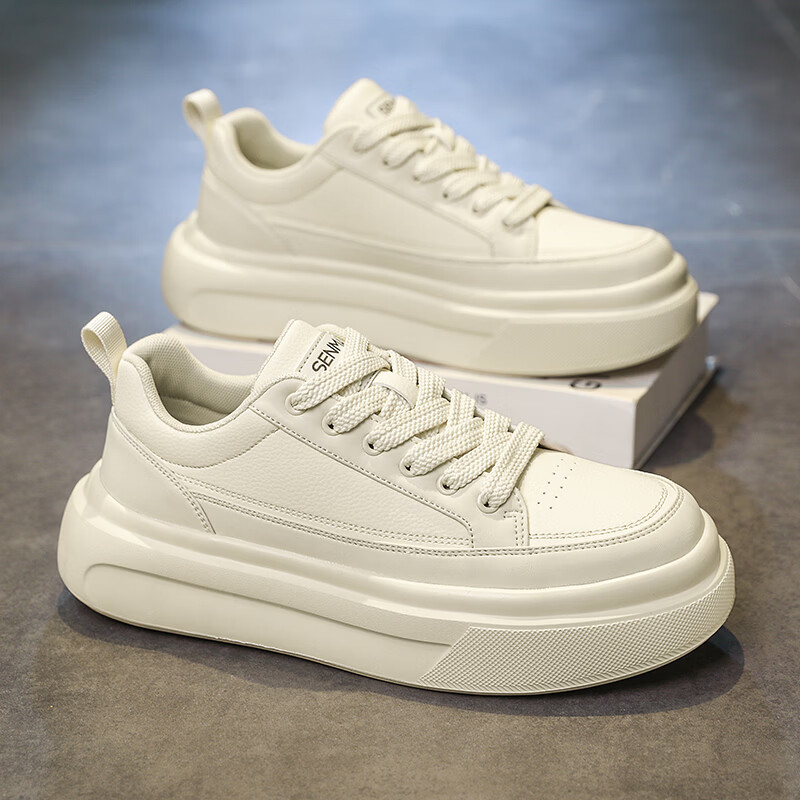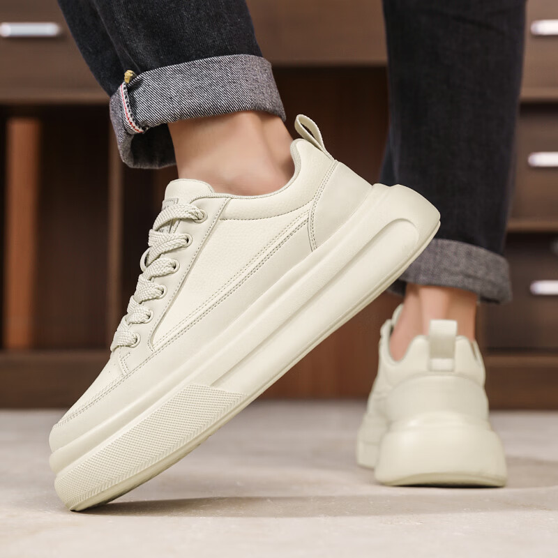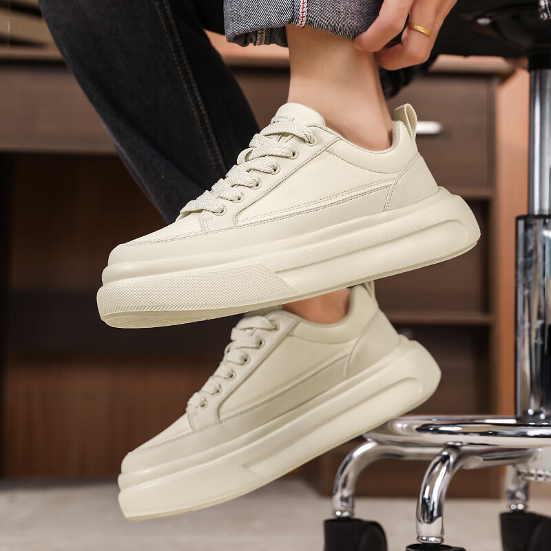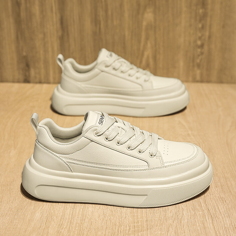 森馬男鞋2026年春季韩版百搭潮流软底休闲小白板鞋男士厚底防滑运动鞋 米色【基础款】 39 标准码数/现货秒发