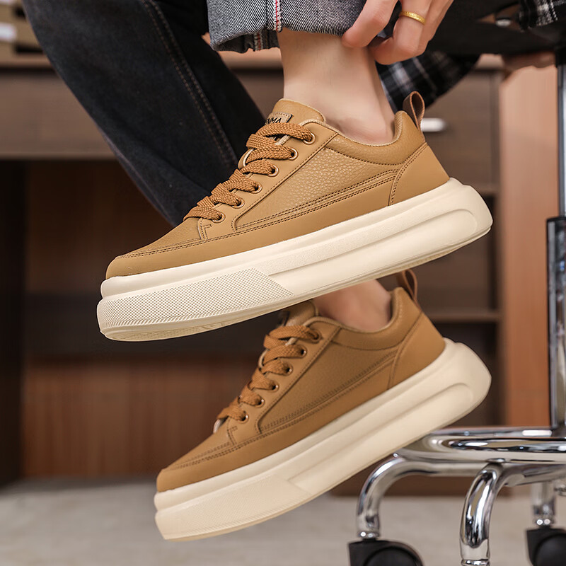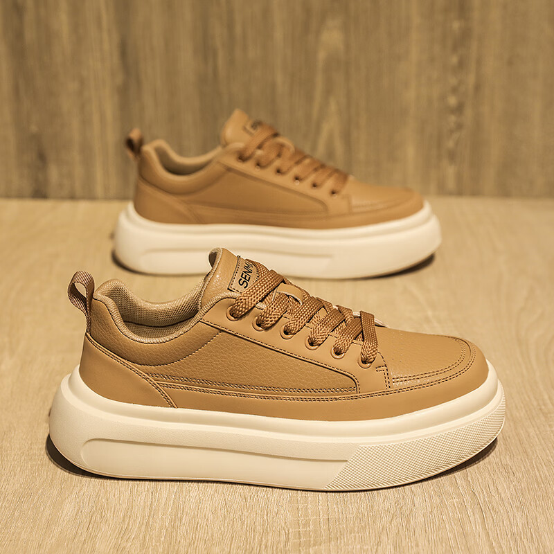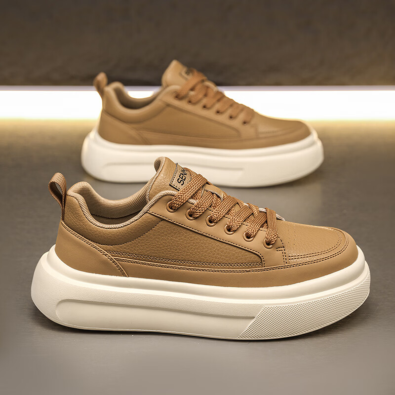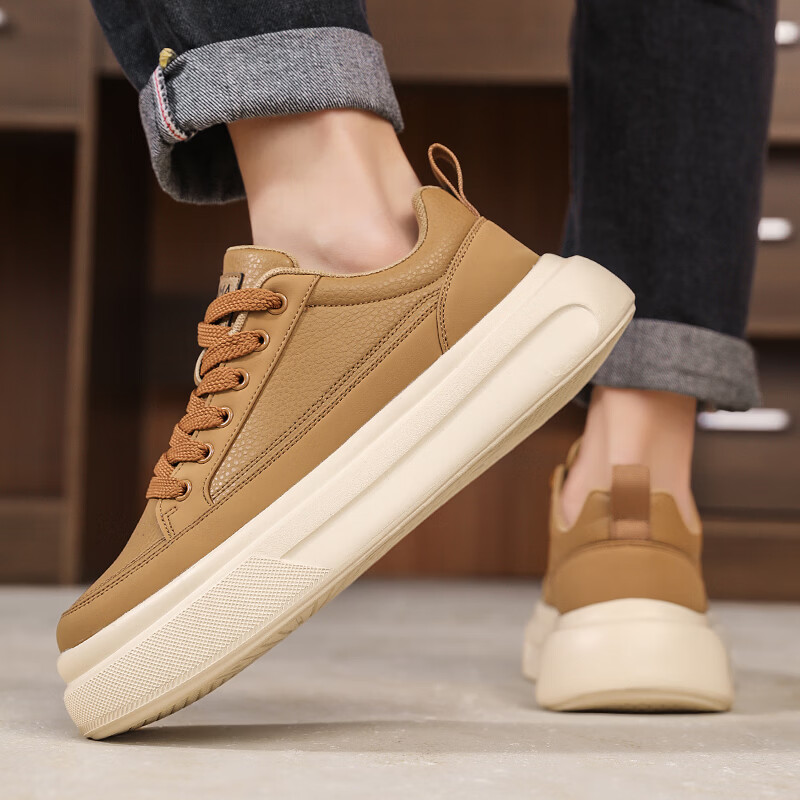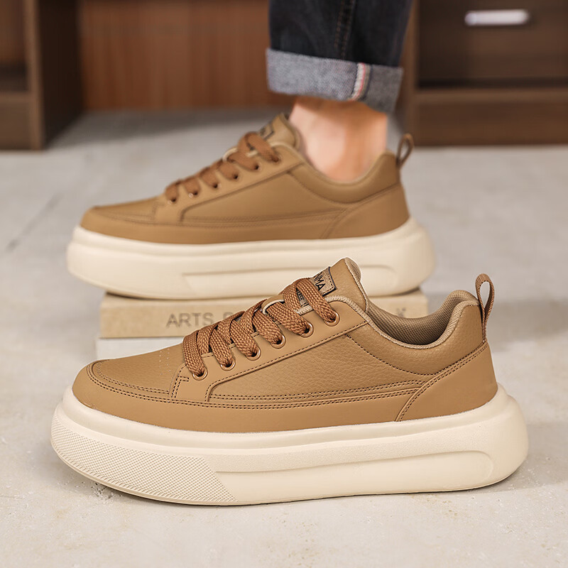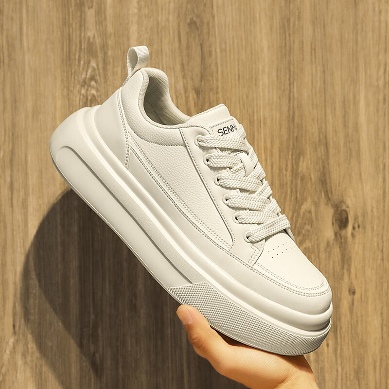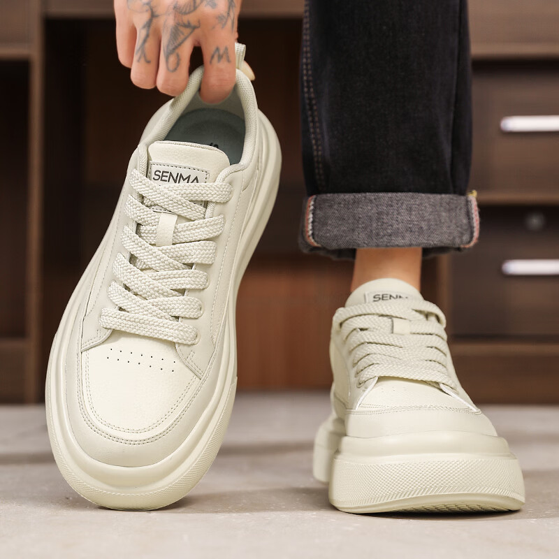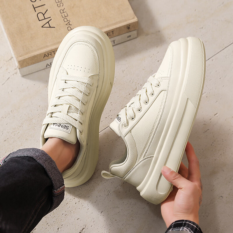 森馬男鞋2026年春季韩版百搭潮流软底休闲小白板鞋男士厚底防滑运动鞋 米色【基础款】 39 标准码数/现货秒发