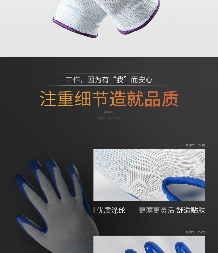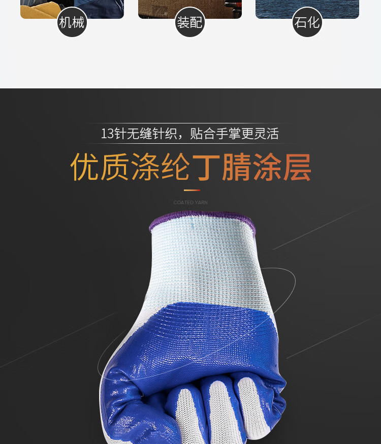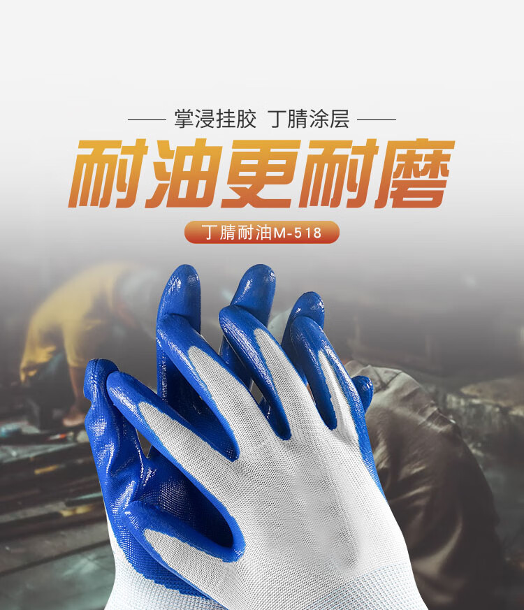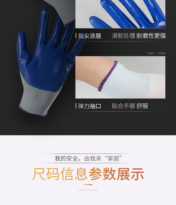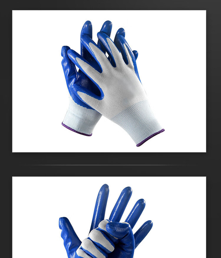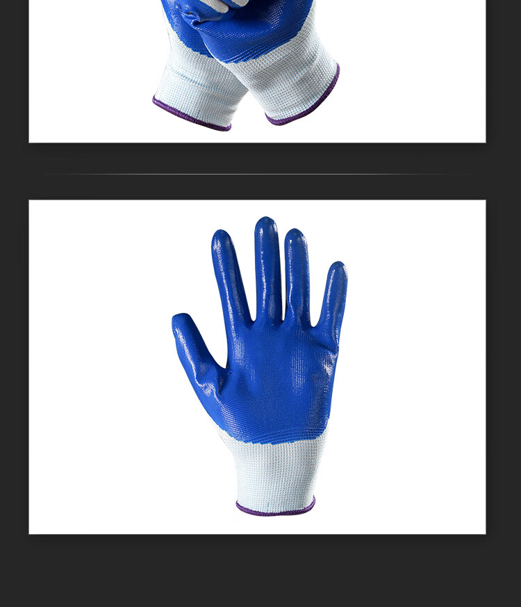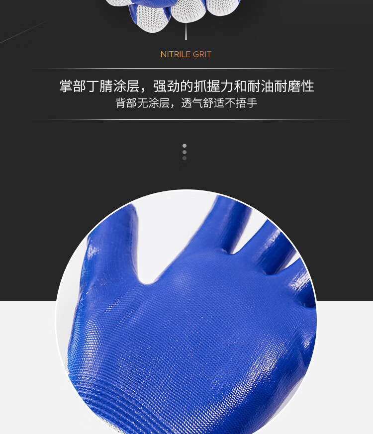 雷宇星 手套劳保工作耐磨橡胶 汽修工地建筑搬砖防滑 浸胶半挂丁腈胶皮手套 丁腈蓝色60双(厂商直送)