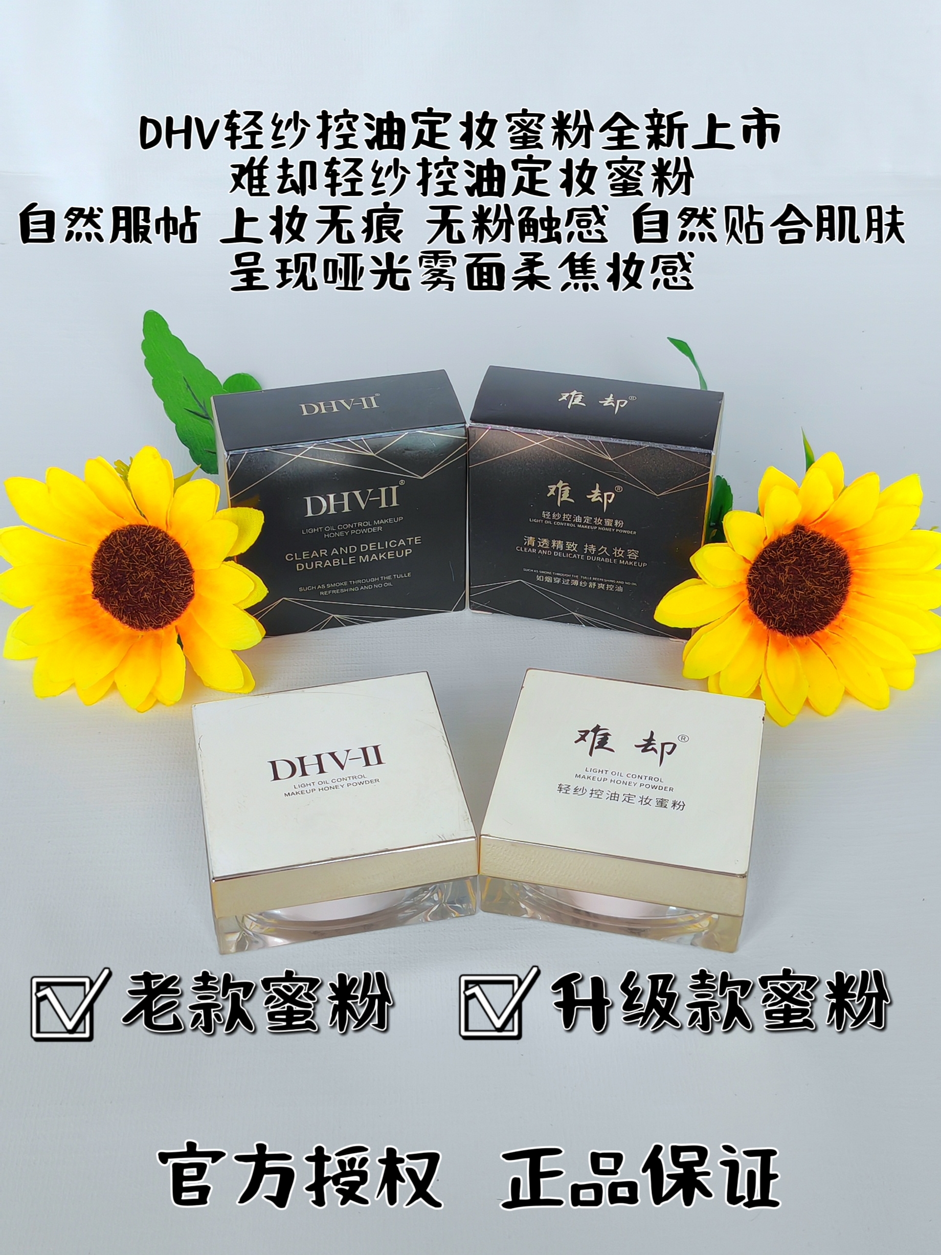 难却dhv定妆蜜粉粉饼散粉难却 遮瑕靓白养肤防水不脱妆细腻敏感肌可用 dhv定妆粉1盒送水乳霜1盒