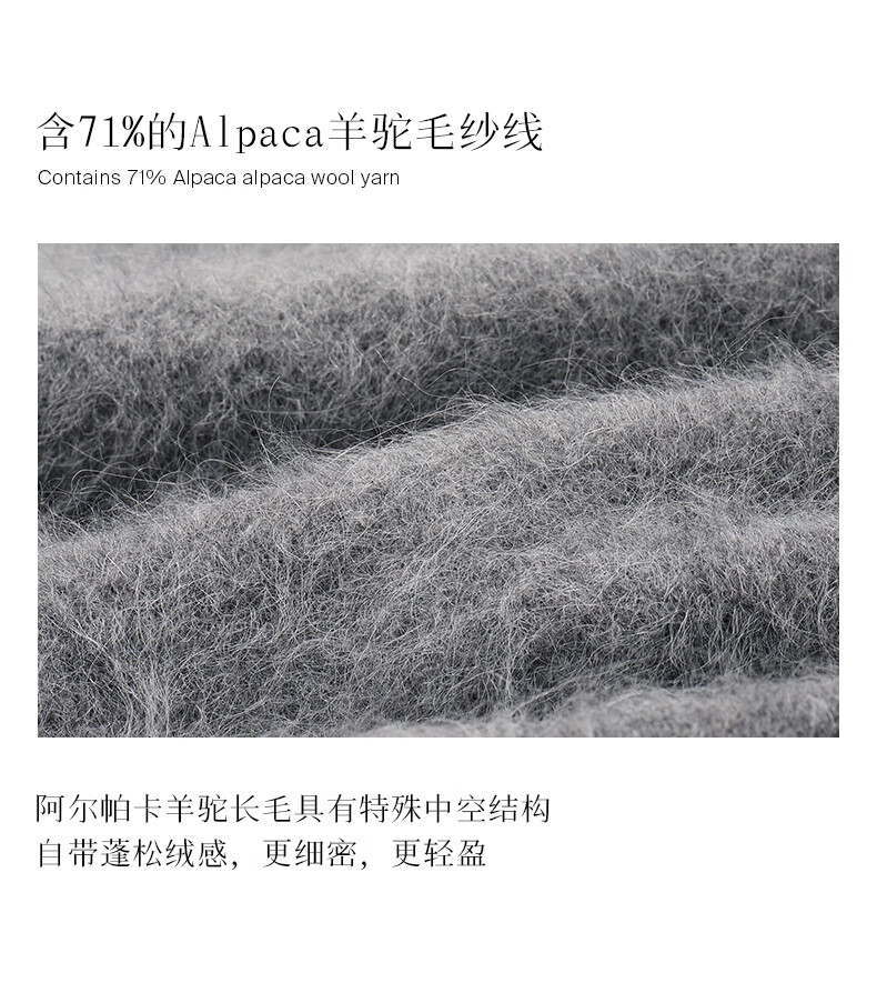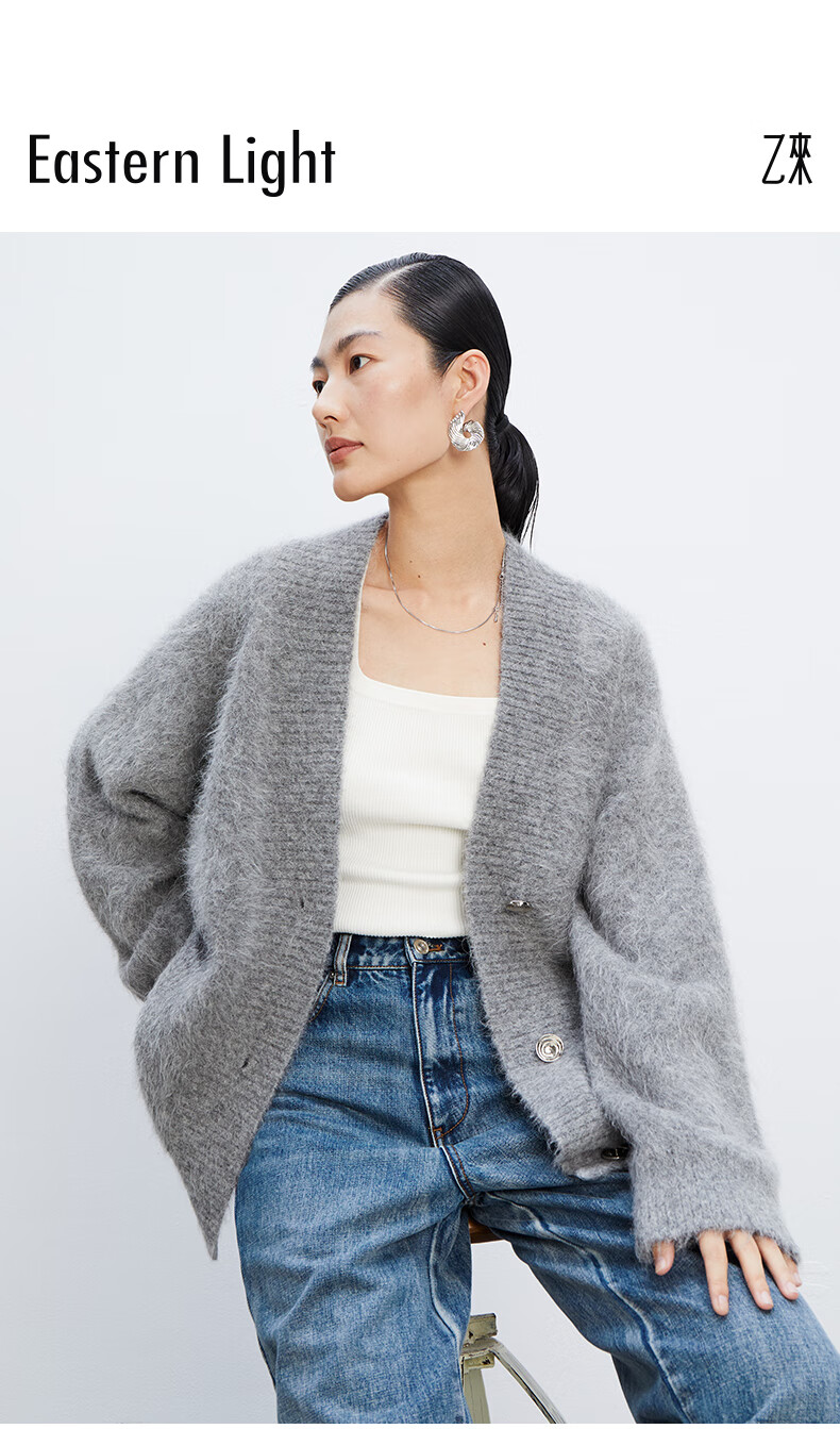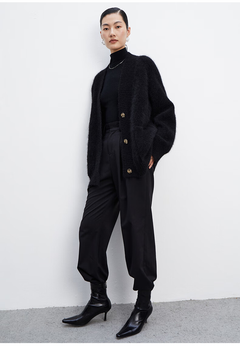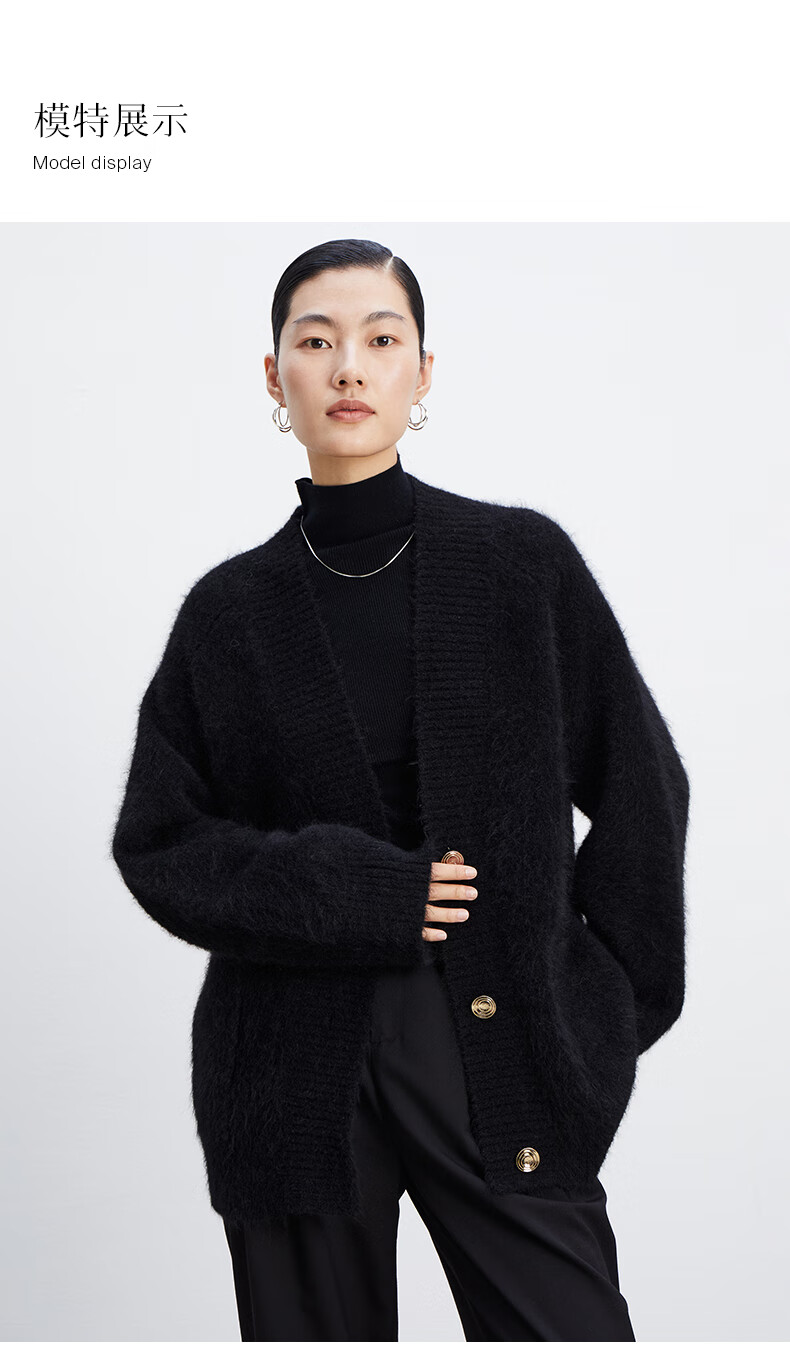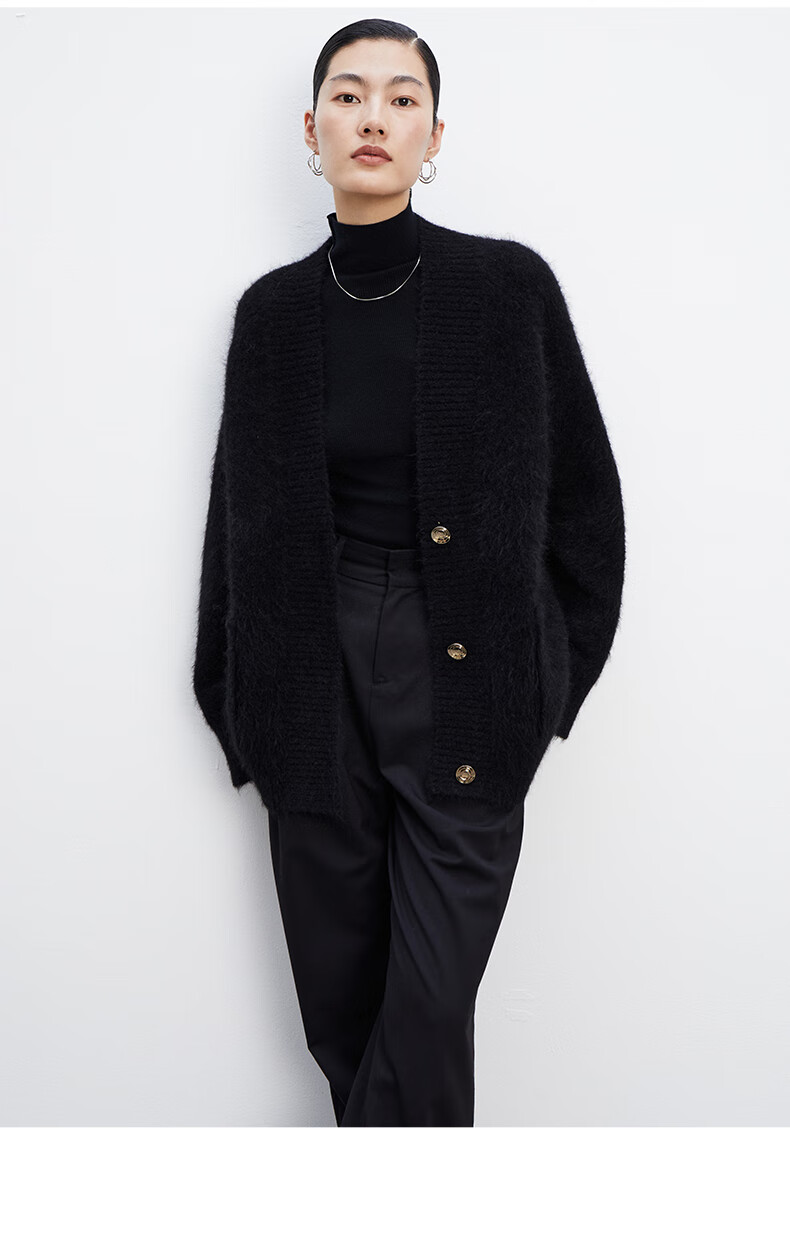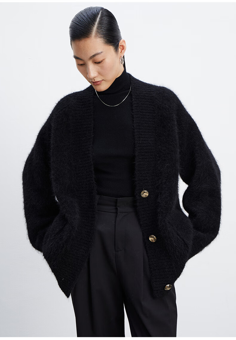 乙来(EASTERN LIGHT)【Alpaca羊驼毛长毛】秋冬针织开衫衣保暖外套 上衣-优雅黑 S