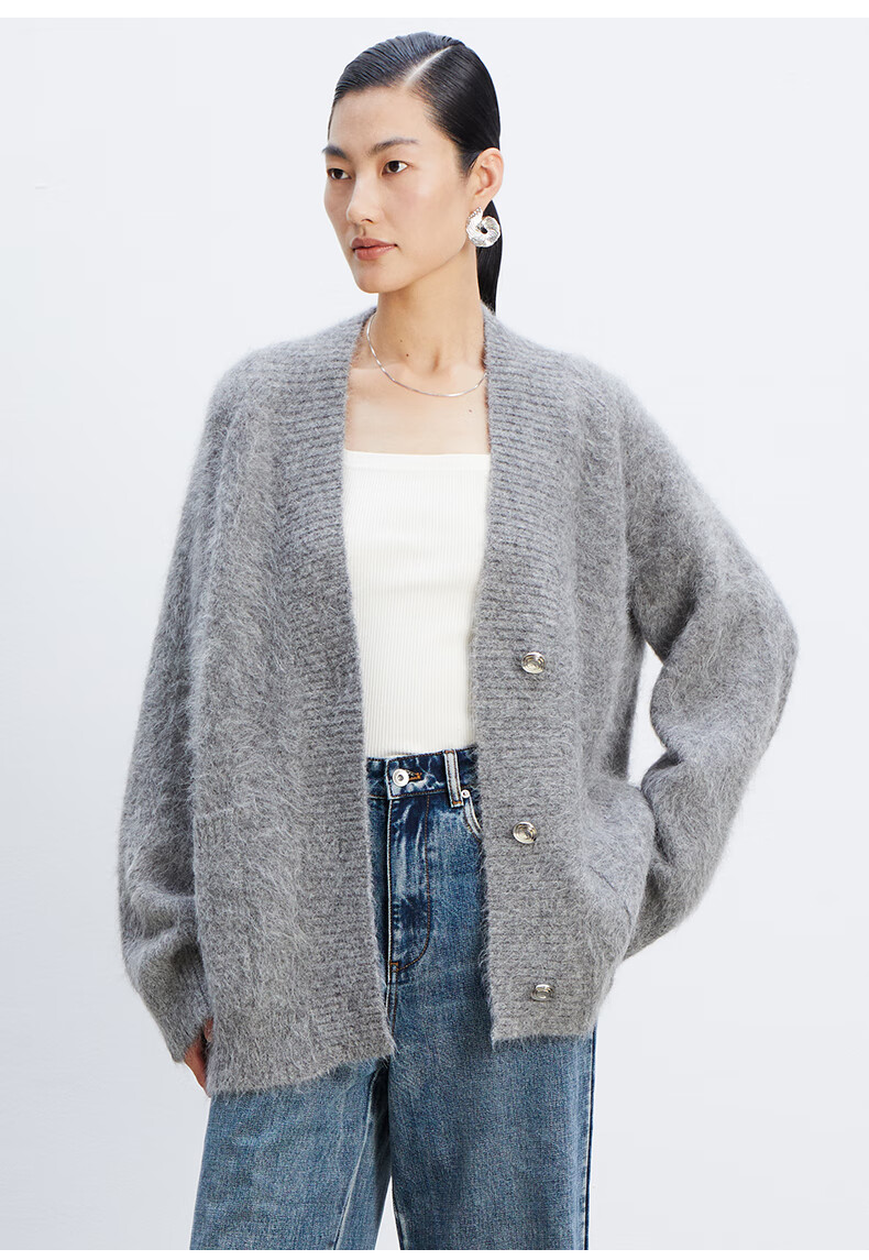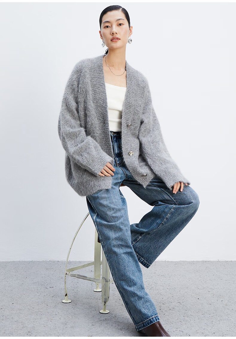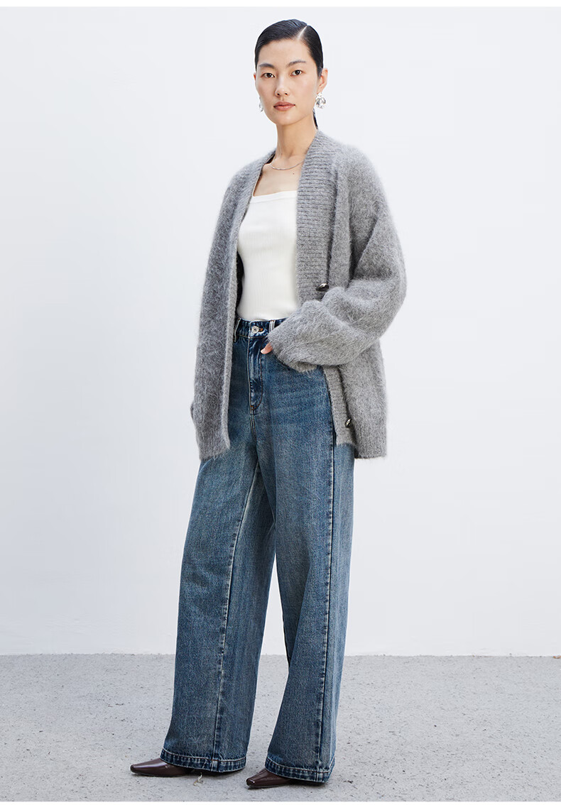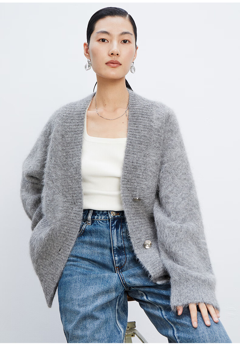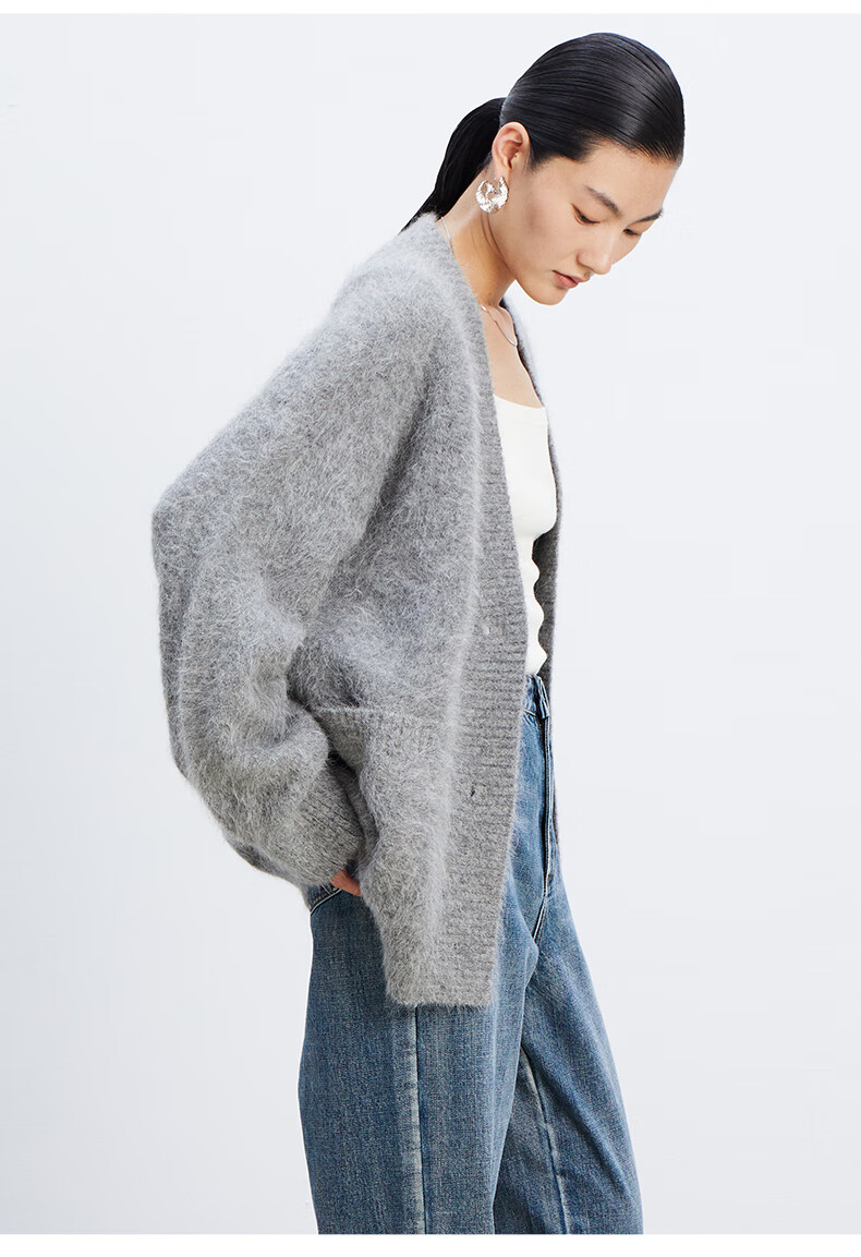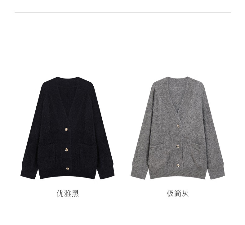 乙来(EASTERN LIGHT)【Alpaca羊驼毛长毛】秋冬针织开衫衣保暖外套 上衣-优雅黑 S