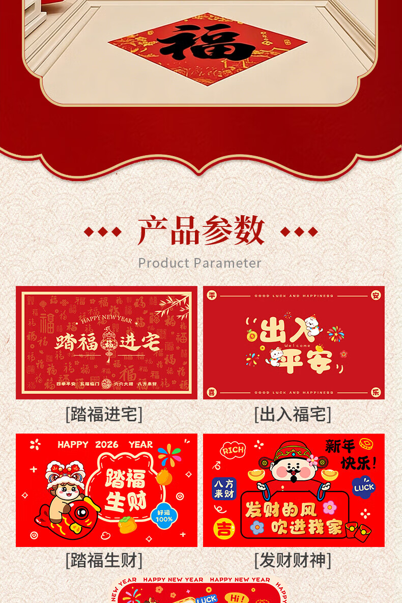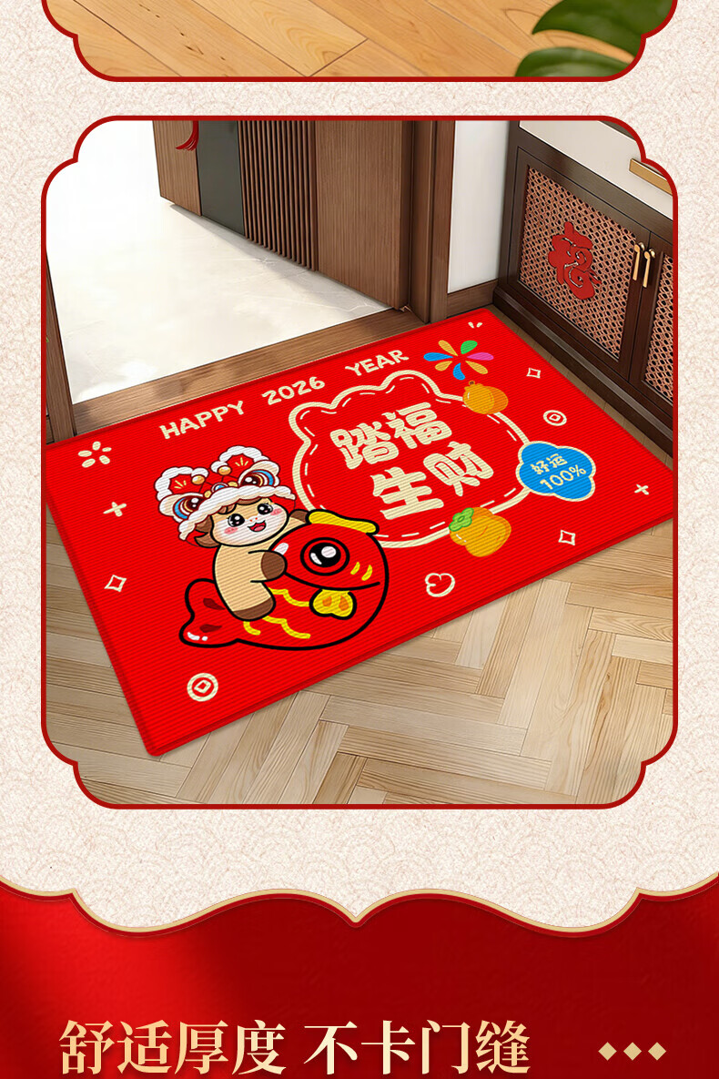 千棵树2026马年进门地垫新年入户门垫家用喜庆红色出入平安竖版玄关脚垫 发财财神 50cm*80cm