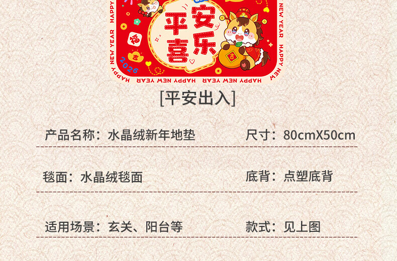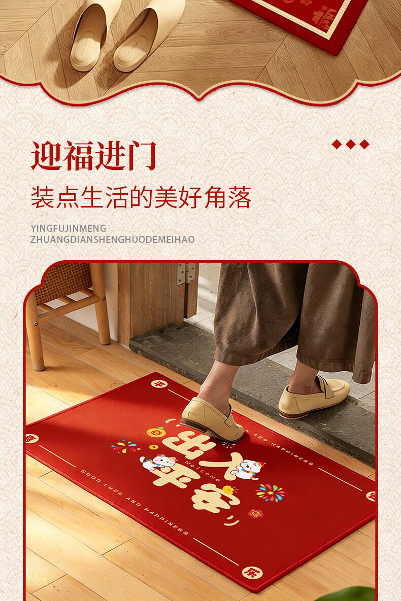 香巴赫德国入户门垫喜庆红色乔迁新居进门地垫家用耐脏玄关地毯防滑垫 诸事皆顺 定制联系客服【升级版TPR防滑底】