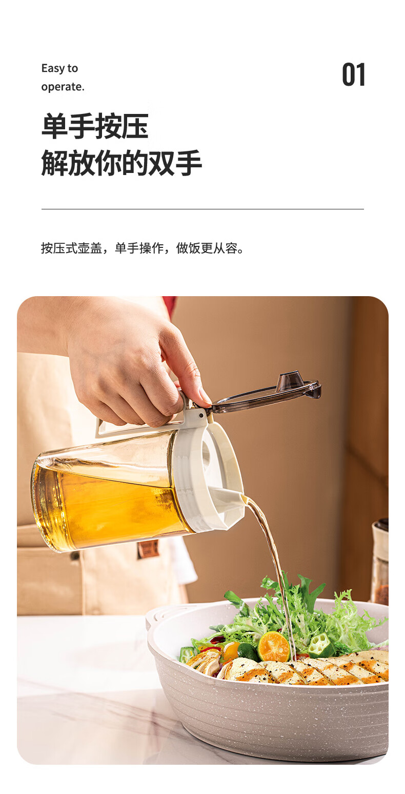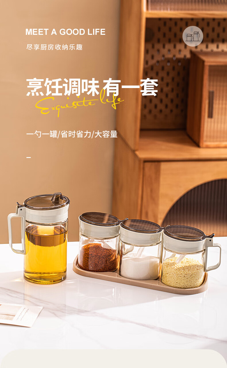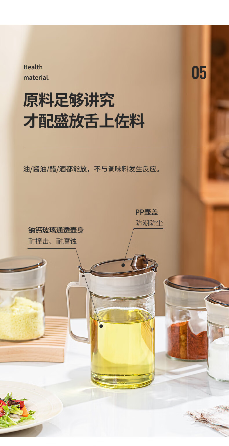 乐唯诗(LOVWISH)玻璃油壶防漏油瓶调料罐调料盒小油罐家用酱油瓶香油醋瓶 乐境油壶调味罐五件套装