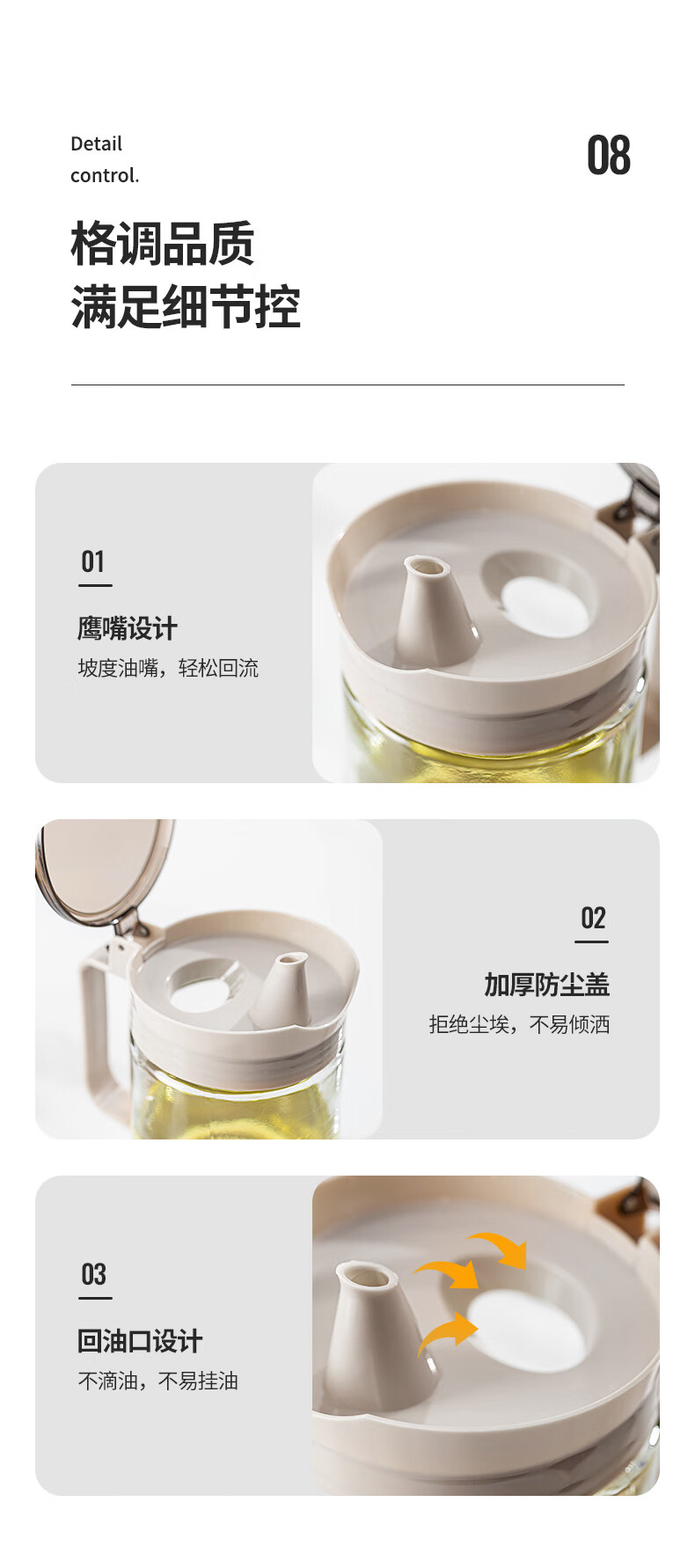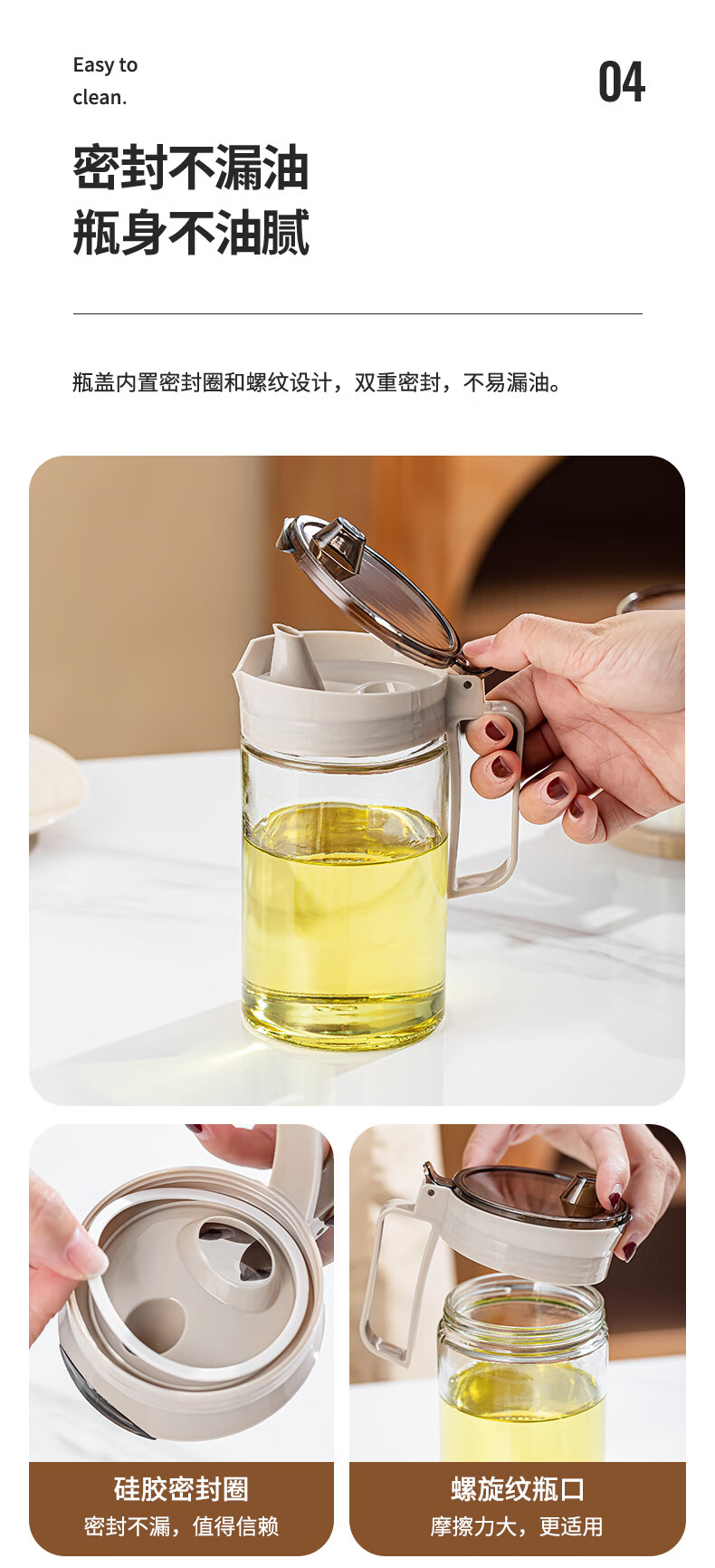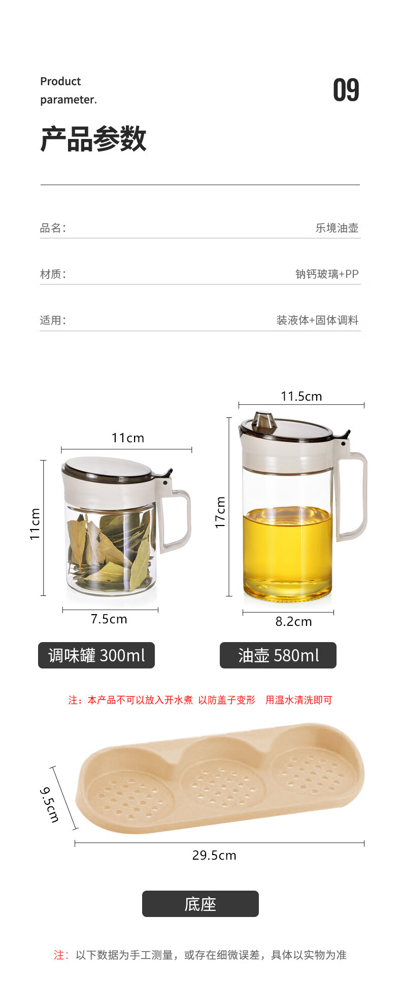 乐唯诗(LOVWISH)玻璃油壶防漏油瓶调料罐调料盒小油罐家用酱油瓶香油醋瓶 乐境油壶调味罐五件套装