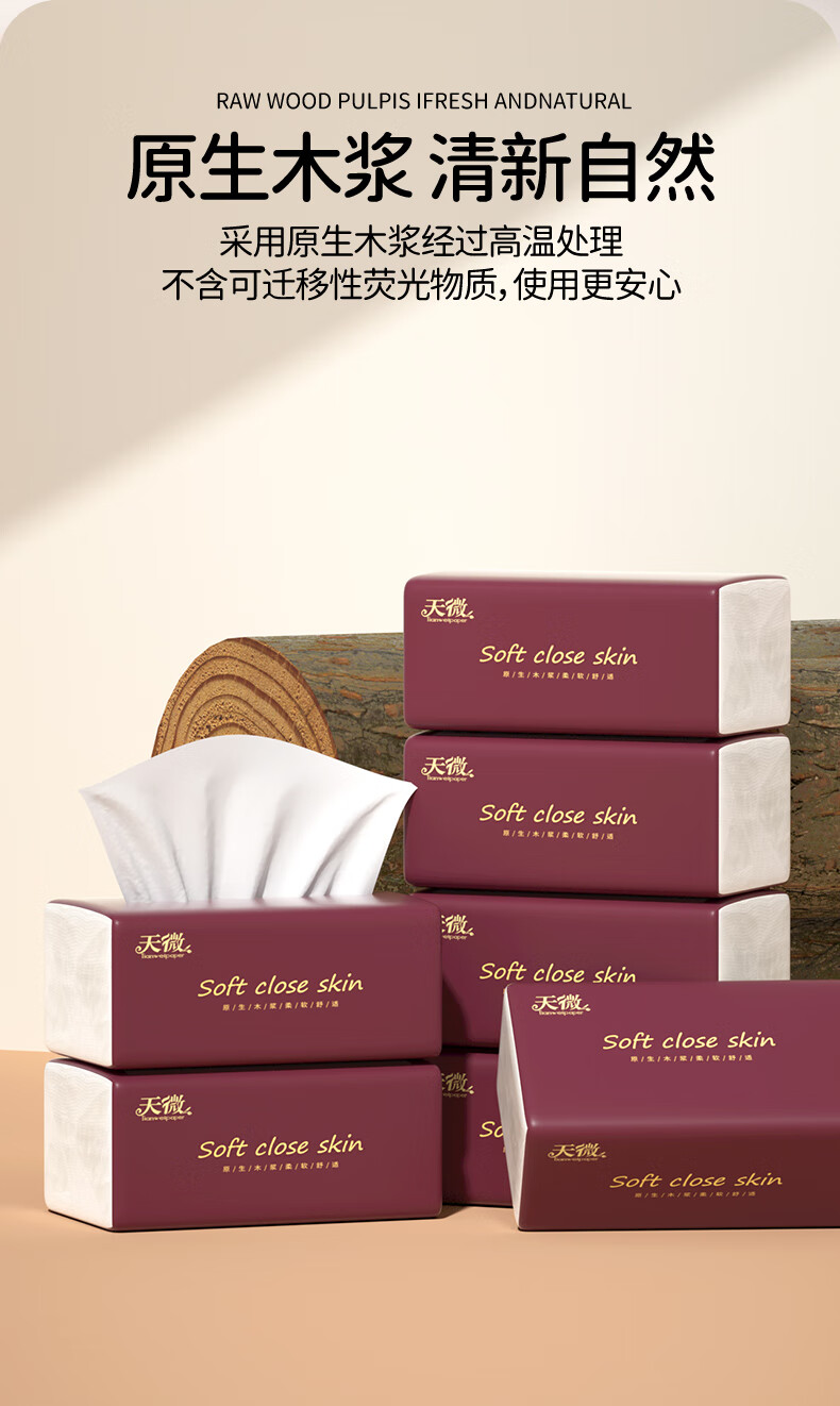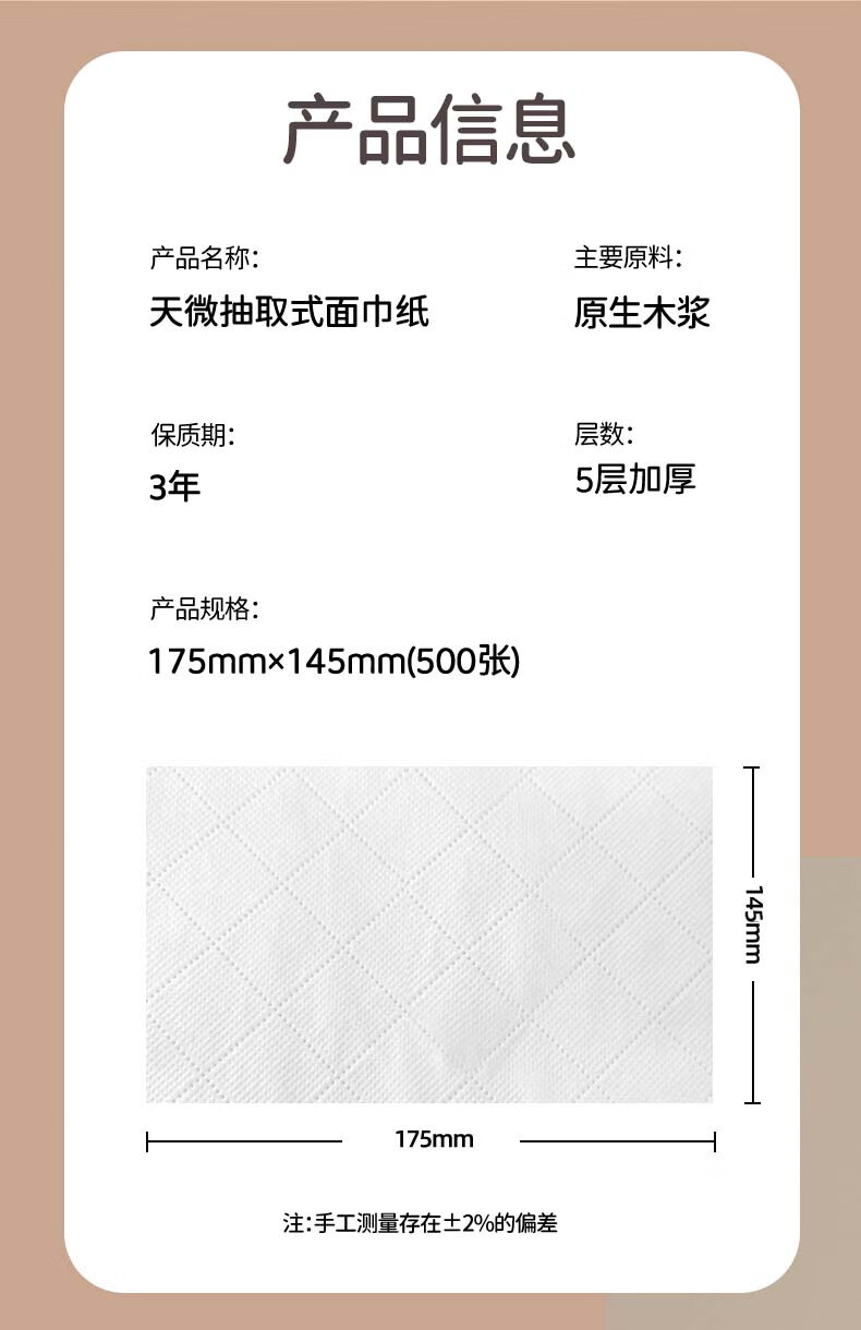 天微【精选好物】500张大包抽纸纸巾家用实惠卫生纸柔韧面巾纸原生木 商超同款 5层 500张*3包