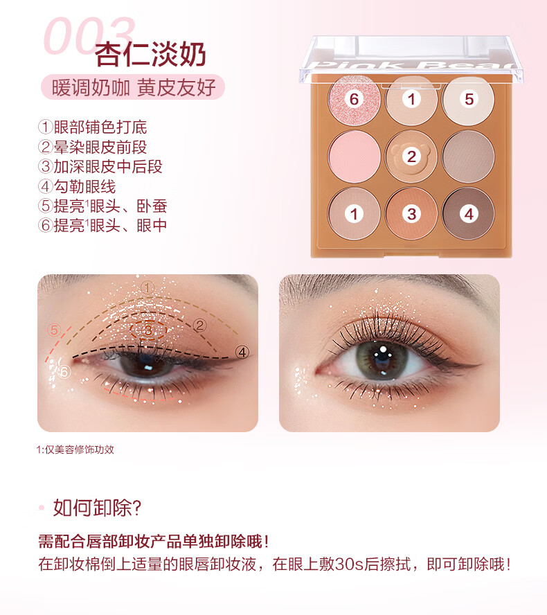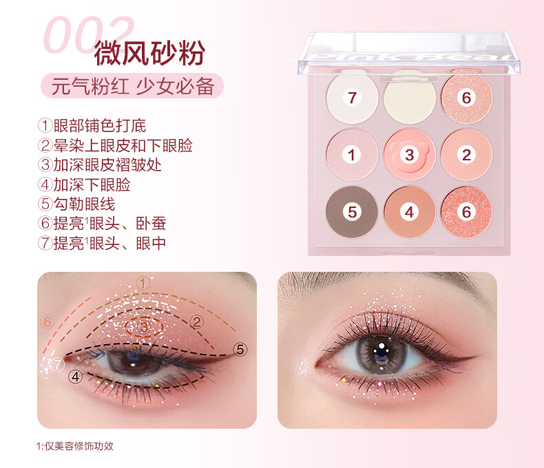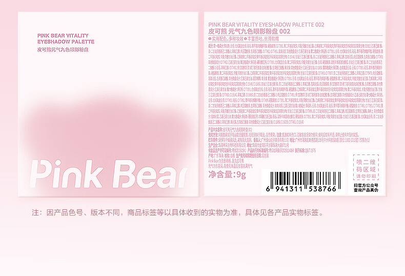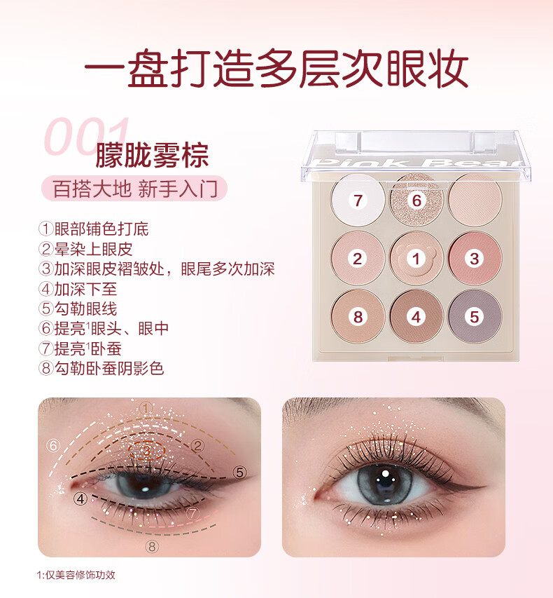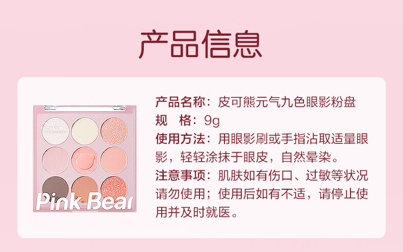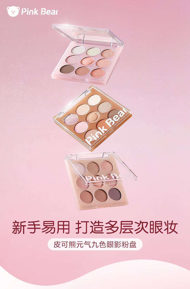 Pink Bear九色眼影盘哑光持久不飞粉通勤百搭新手推荐初学者 元气九色眼影 001