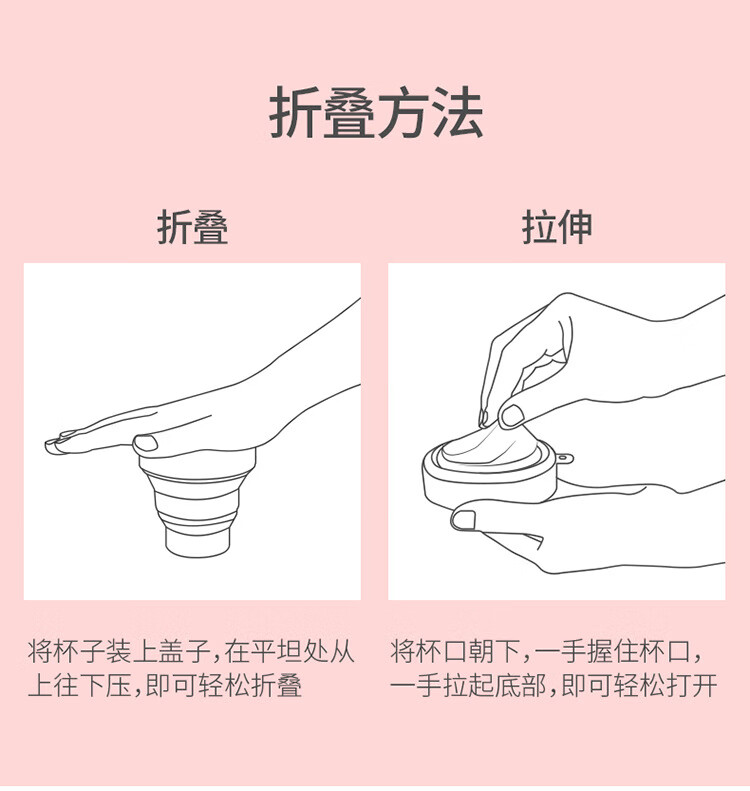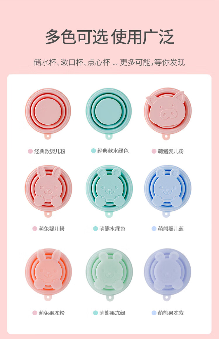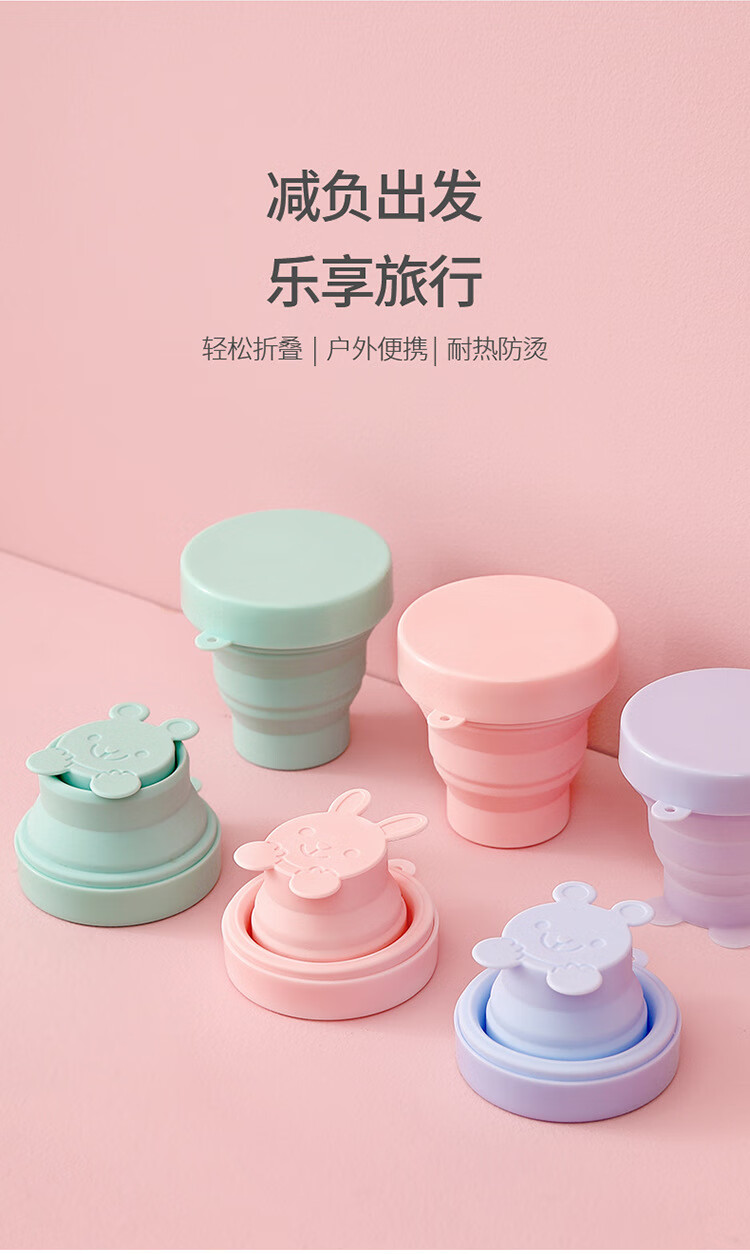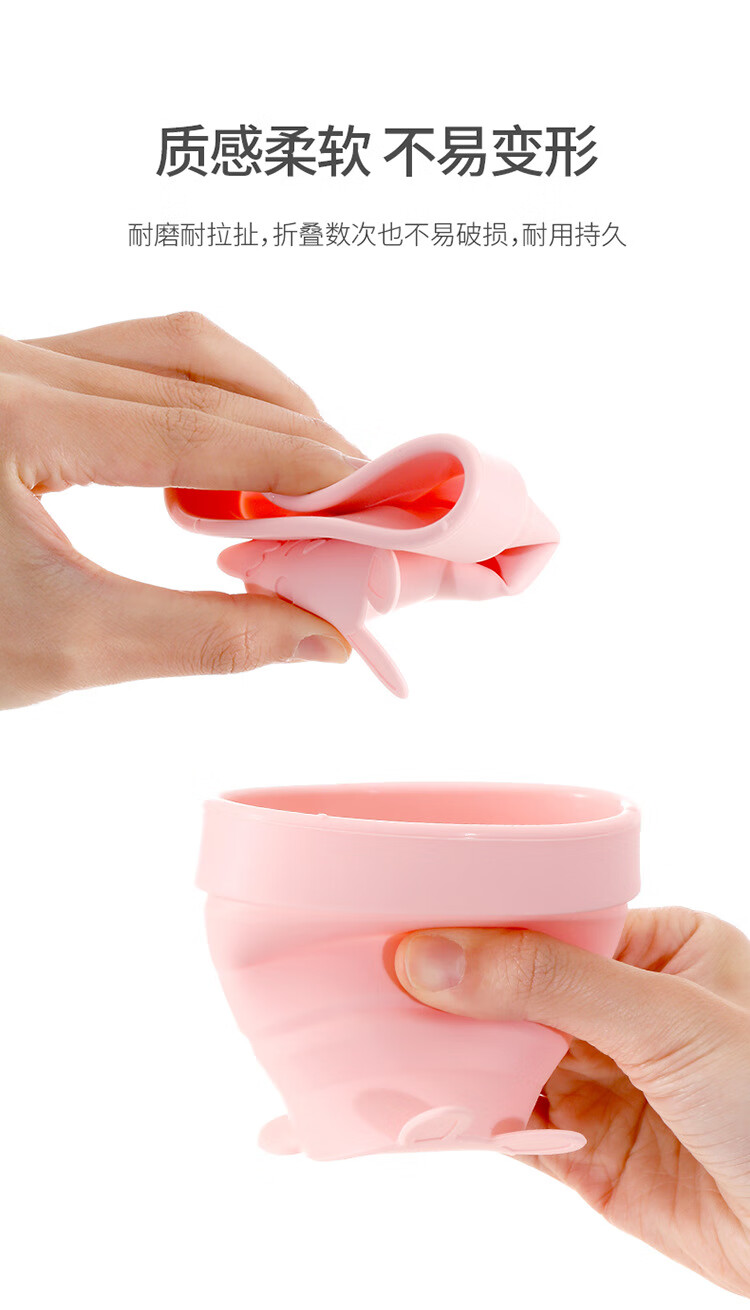 折叠硅胶杯伸缩压缩杯子洗漱杯可爱喝水杯便携户外旅行杯 果冻粉(170ml) 170ml230ml