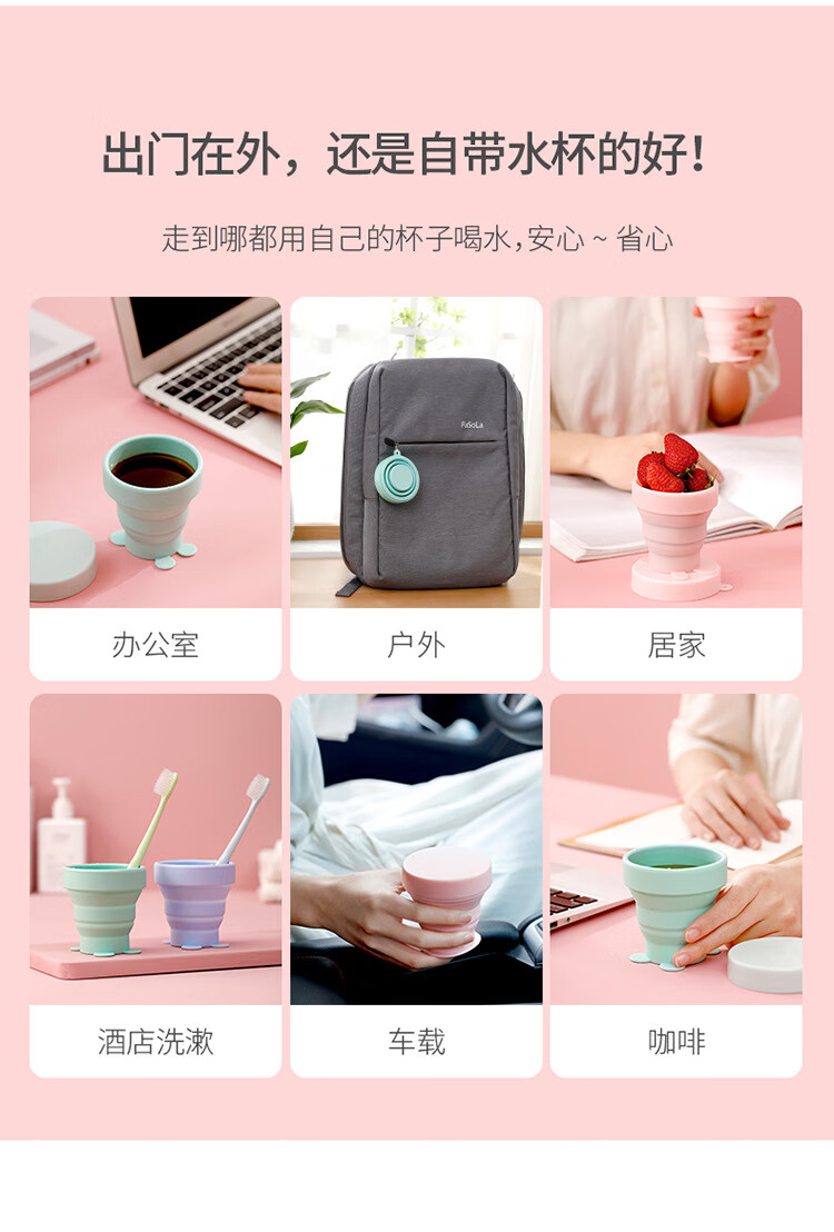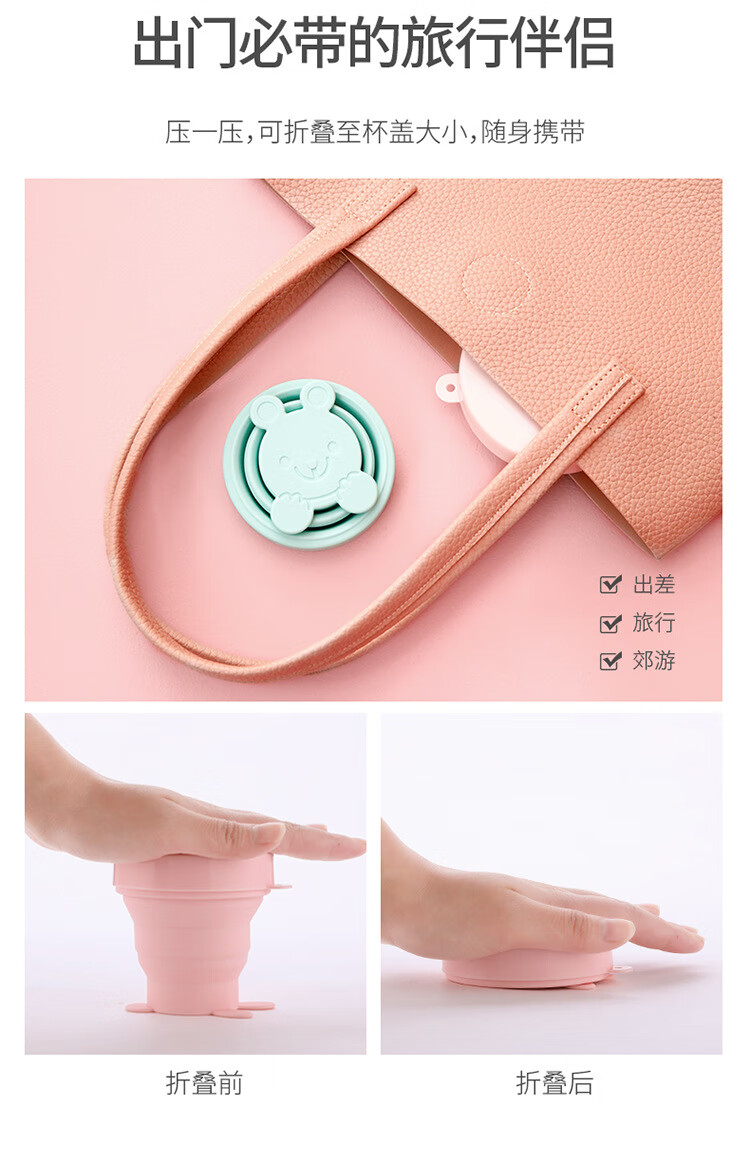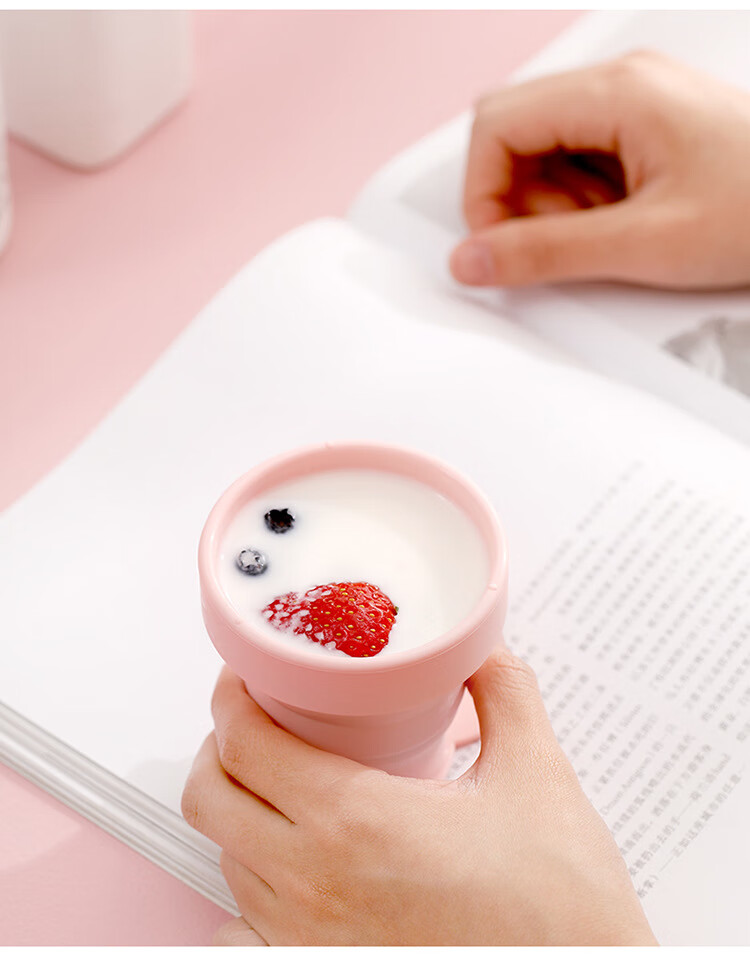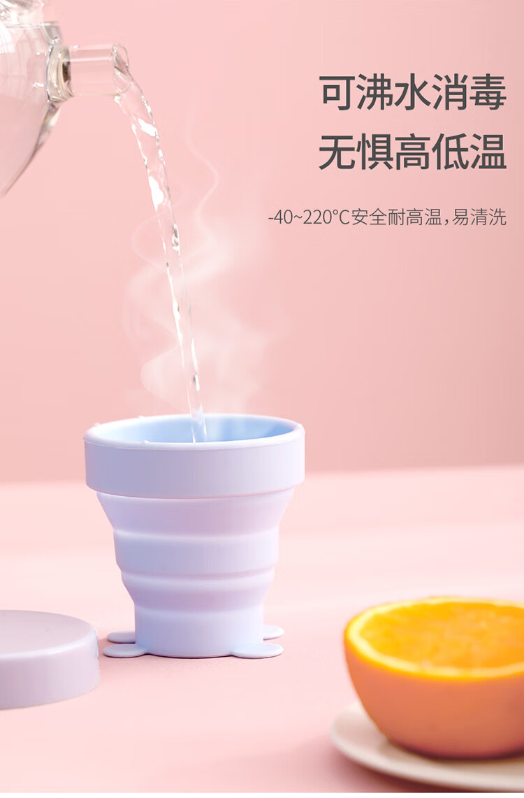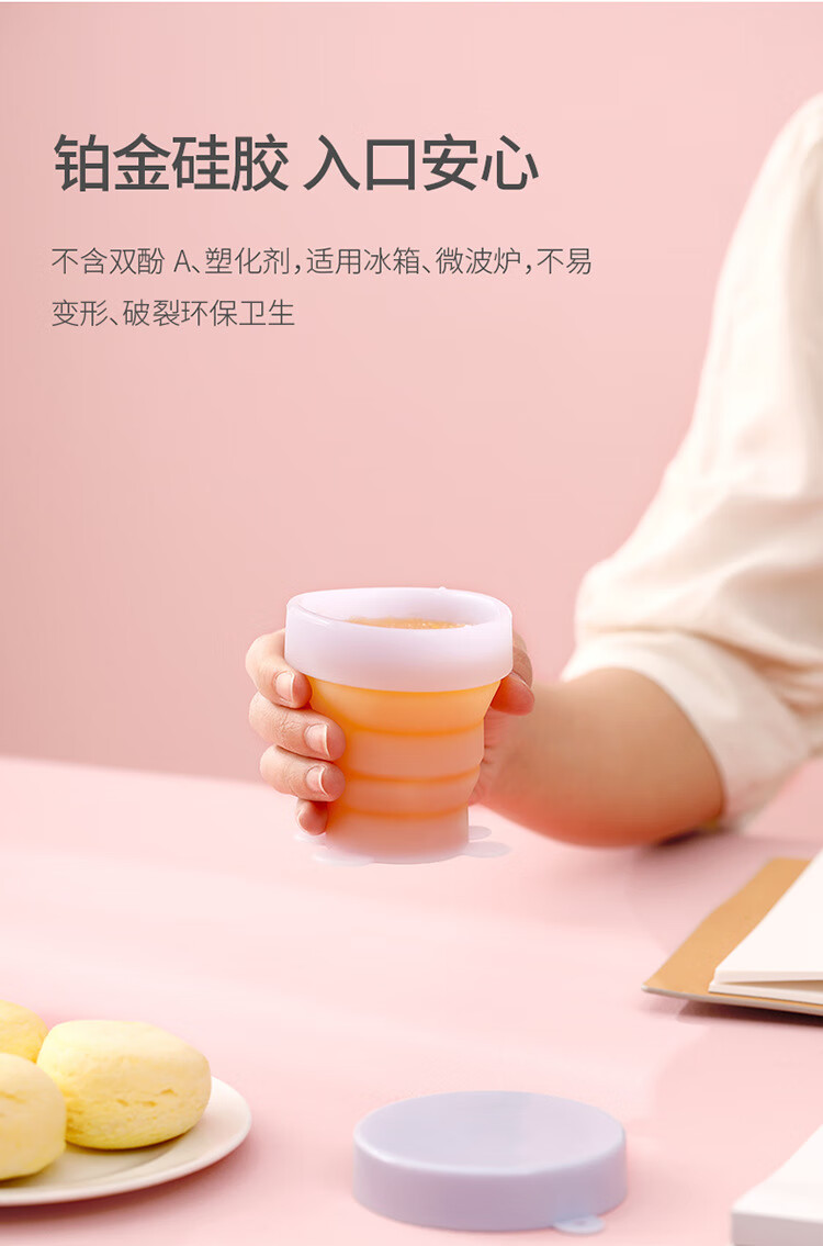 折叠硅胶杯伸缩压缩杯子洗漱杯可爱喝水杯便携户外旅行杯 果冻粉(170ml) 170ml230ml