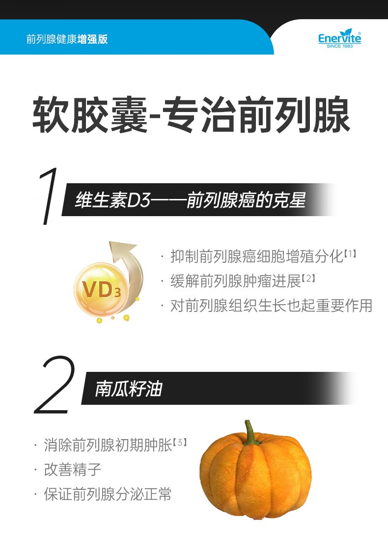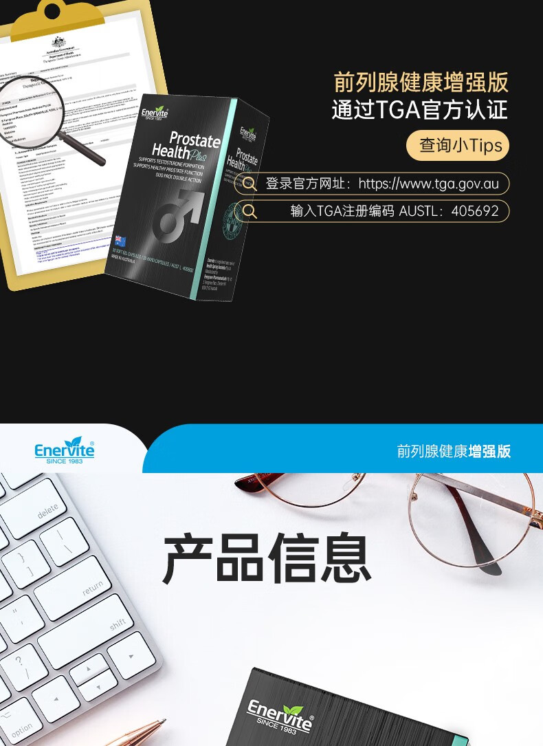 EnerVite番茄红素软胶囊 锯棕榈 前列尿道健康 强健精力备孕男士营养 30粒硬胶囊+30粒软胶囊