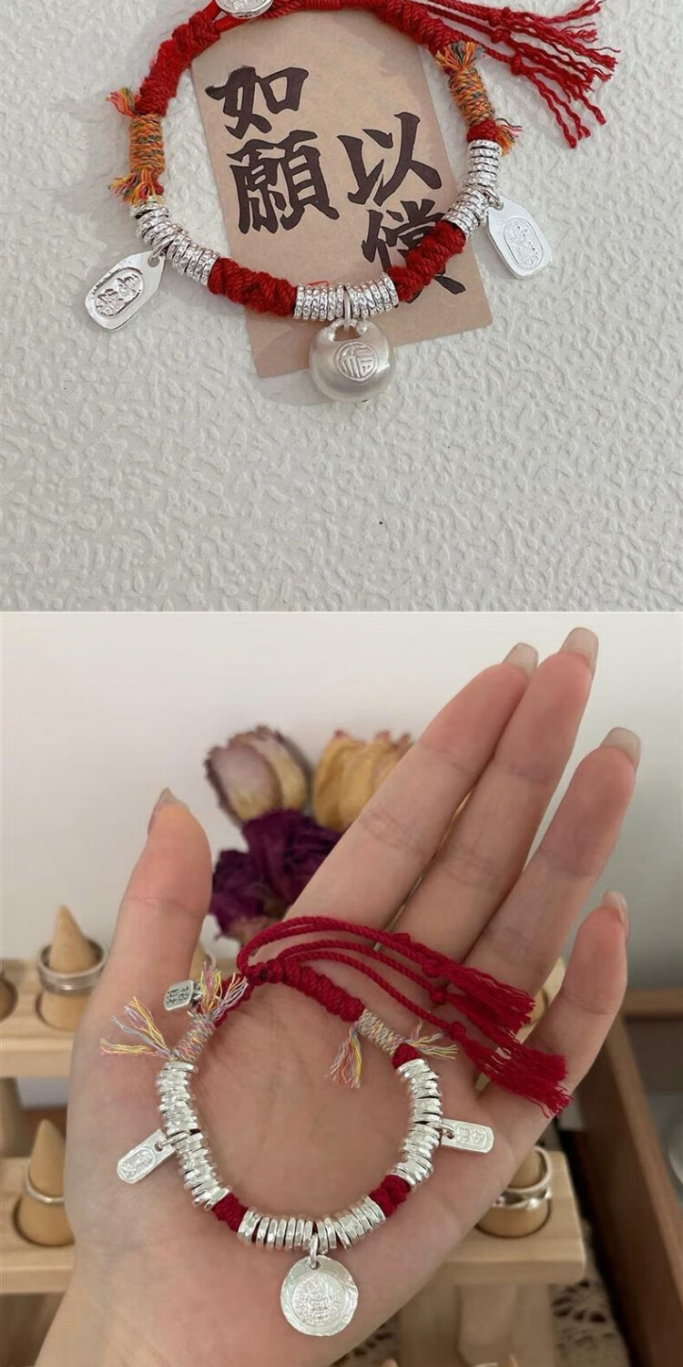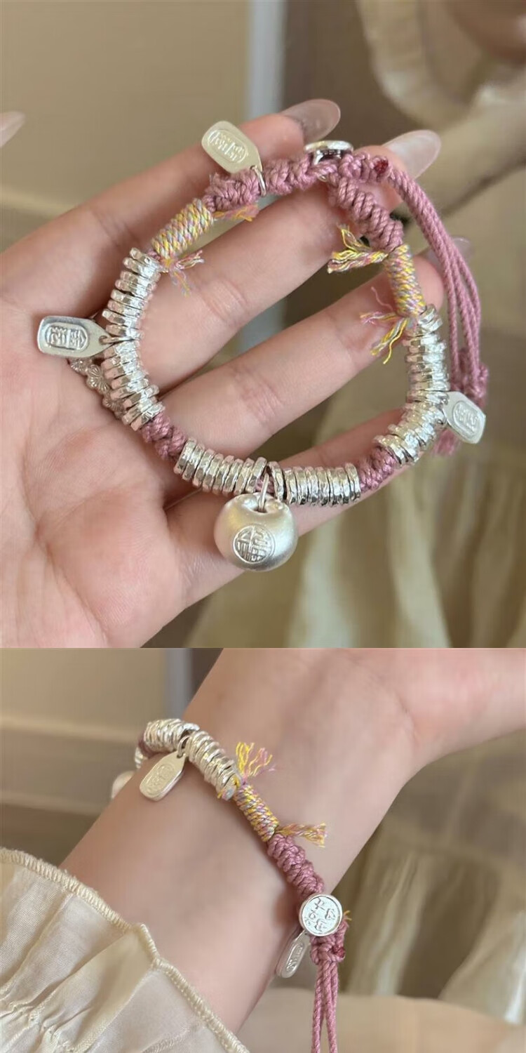 小胖福纯银手链盘缠绳实心女款999足银手串送女友闺蜜礼物 小胖福盘缠手链25