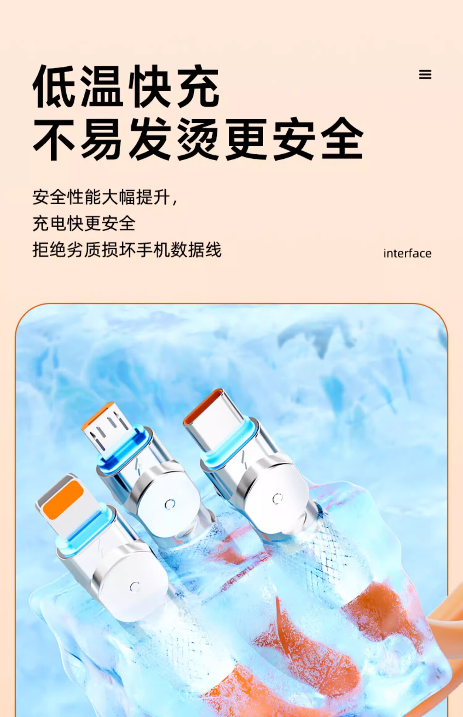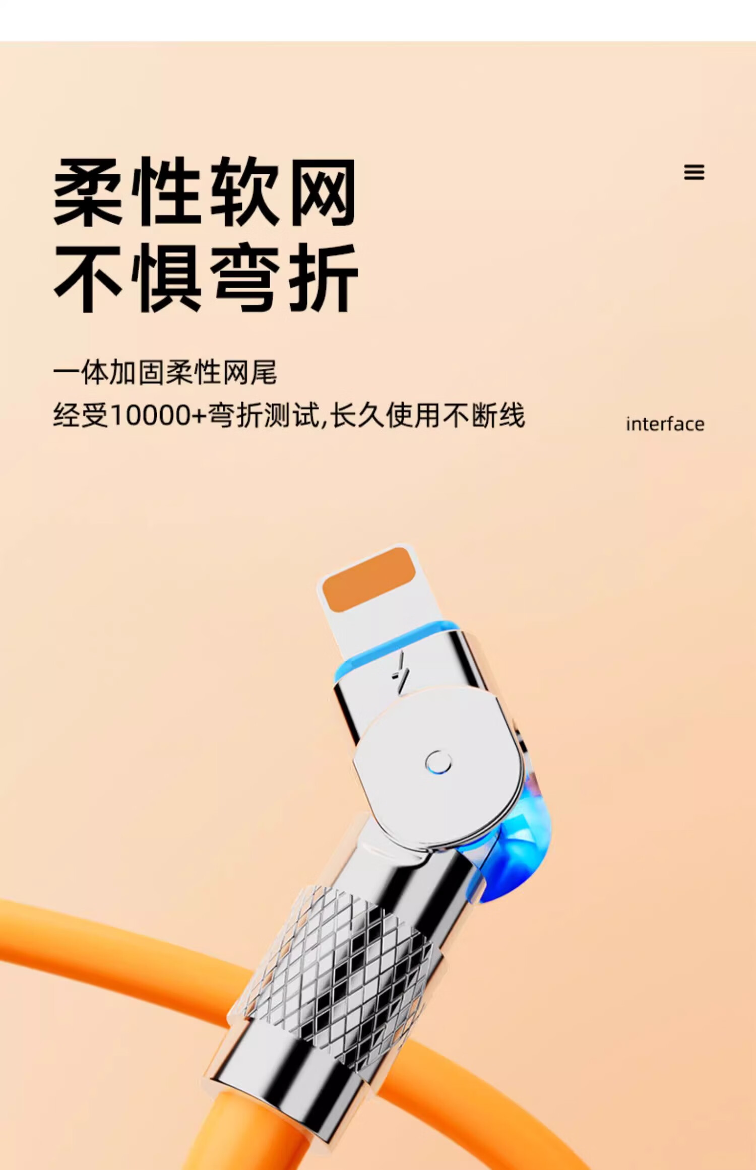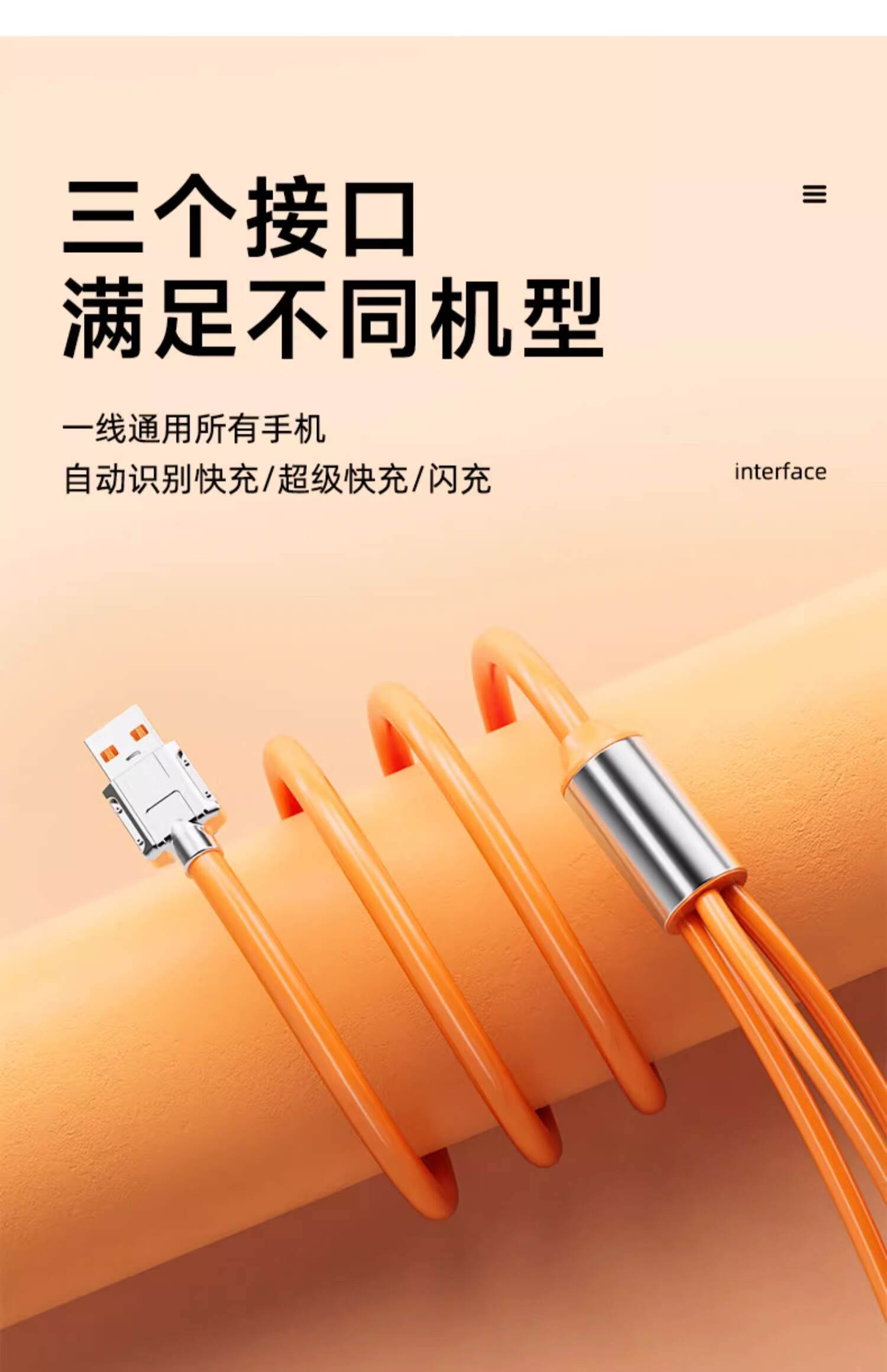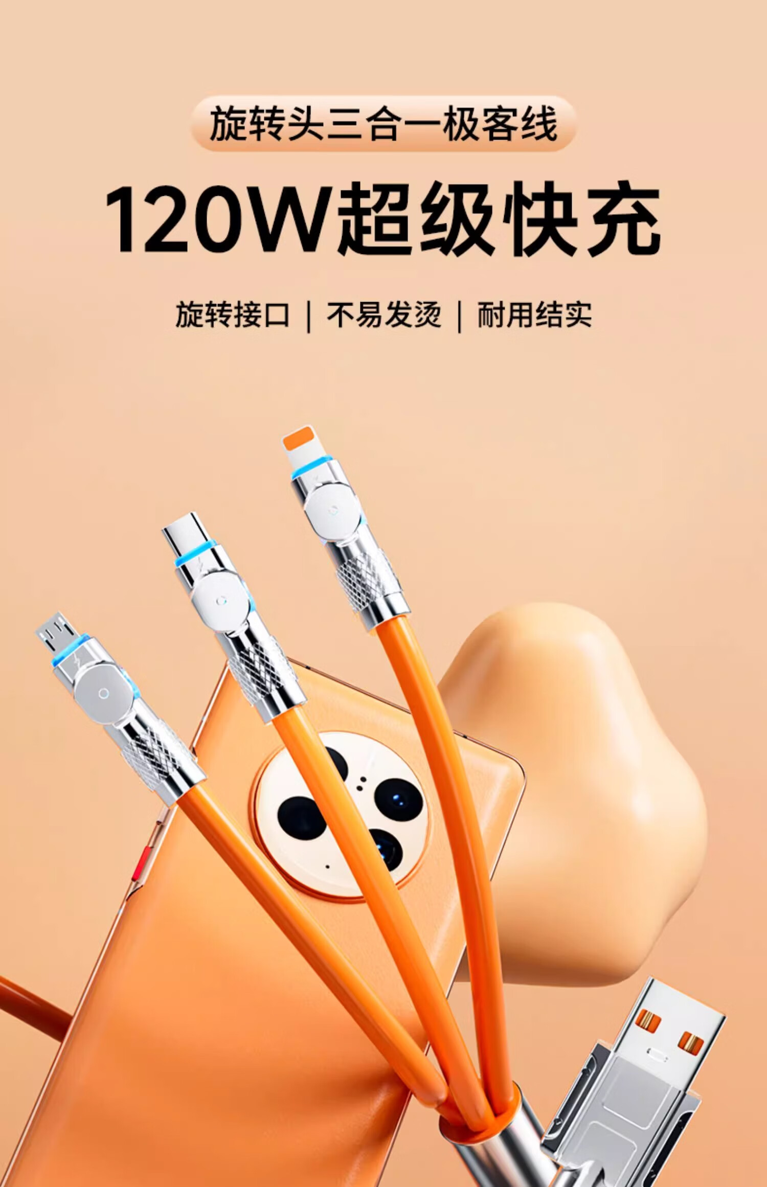 品奈优加长2米旋转机甲线一拖三数据线三合一6A快充适用苹果华为vivo安卓typec通用充电线带灯车载 2米【橙色】旋转一拖三
