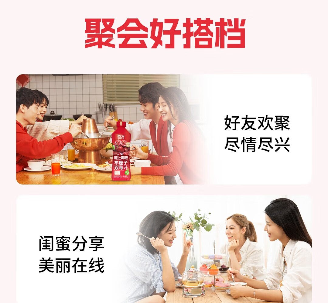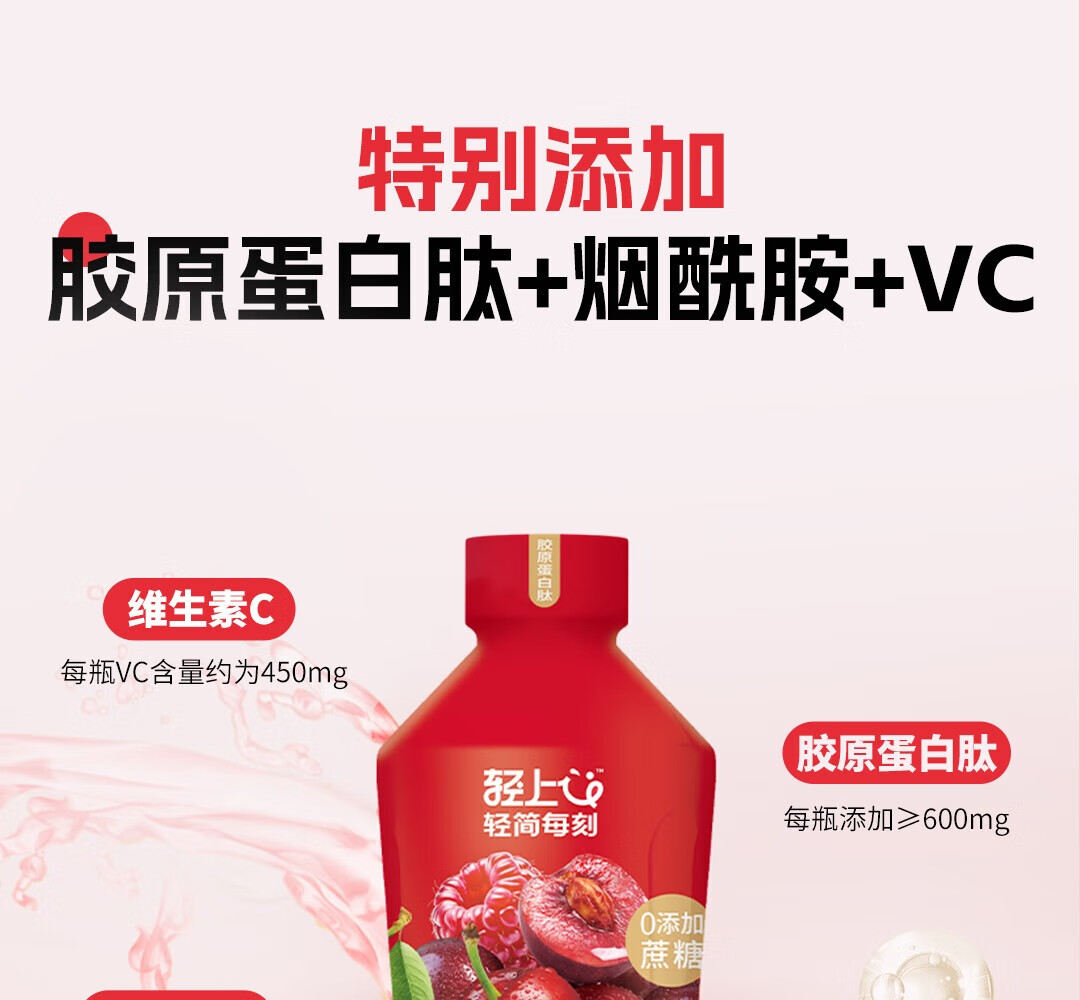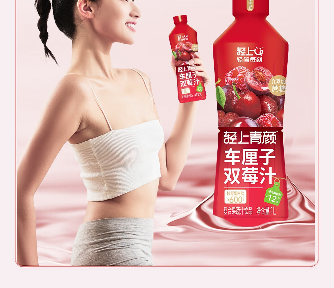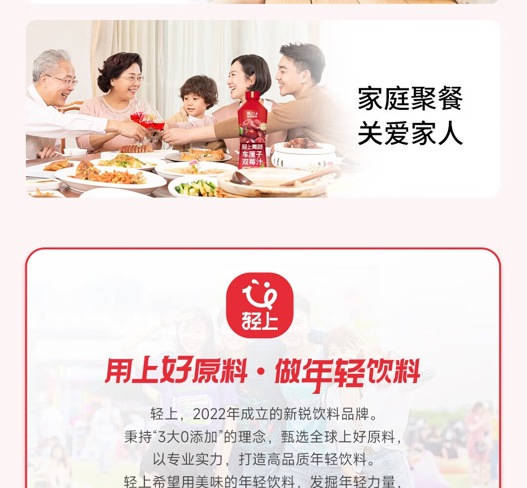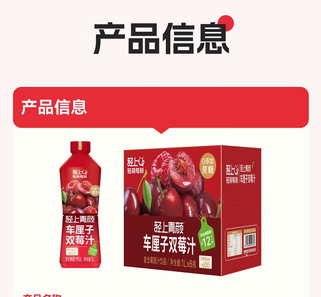 轻上【年货礼盒】轻上樱桃双莓汁蔓越莓车厘子红树莓复合果汁饮料 车厘子樱桃双莓汁1L*2瓶