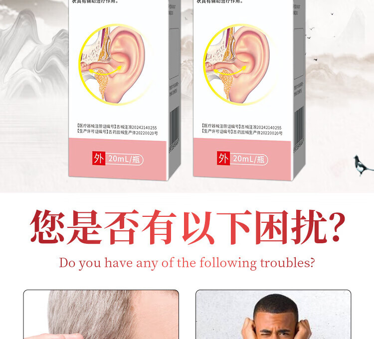 葵花耳鸣滴耳液神经性耳鸣耳聋专用的药蝉鸣声嗡嗡响听力下降医用贴 1盒【葵花耳鸣滴液]一滴止鸣