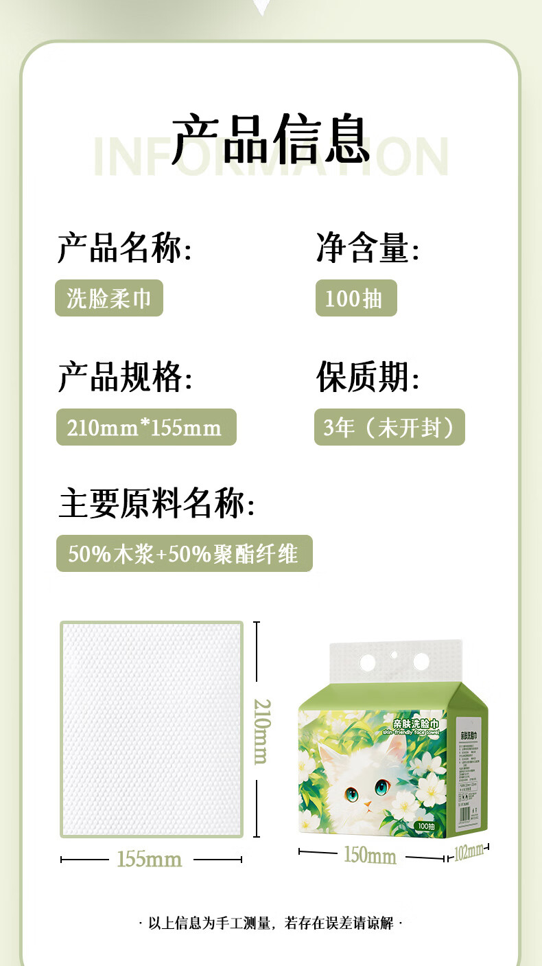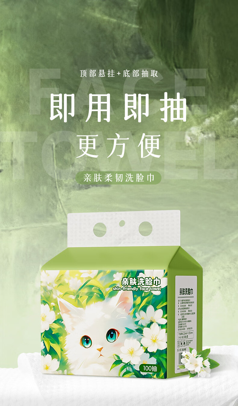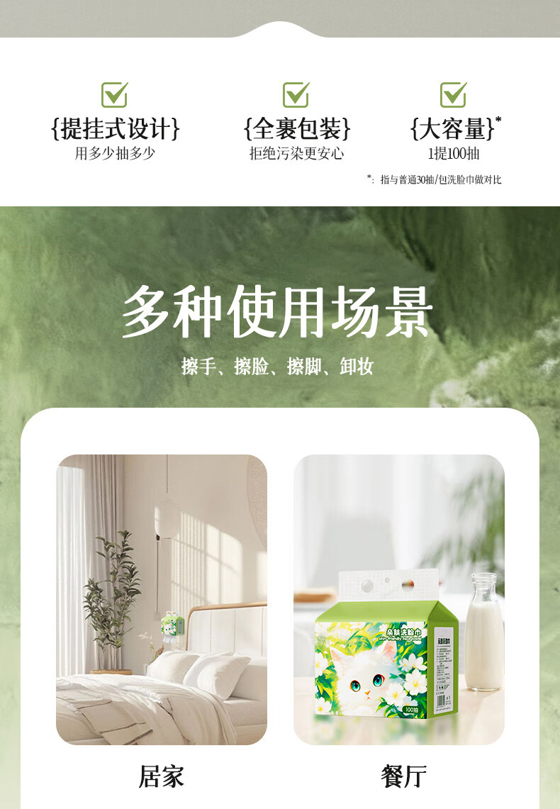 君乐集洗脸巾一次性悬挂式加厚亲肤柔软擦脸巾绵柔巾毛巾洁面巾 亲肤洗脸巾100抽*3包