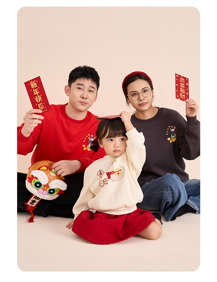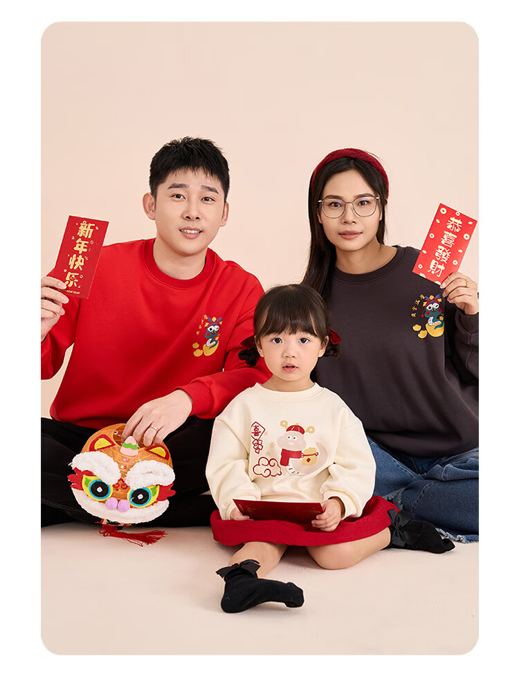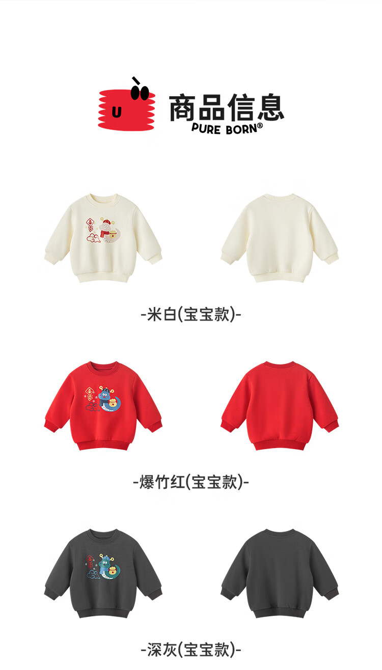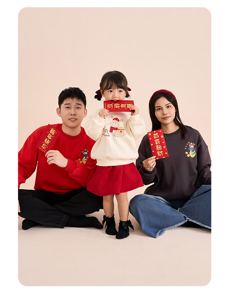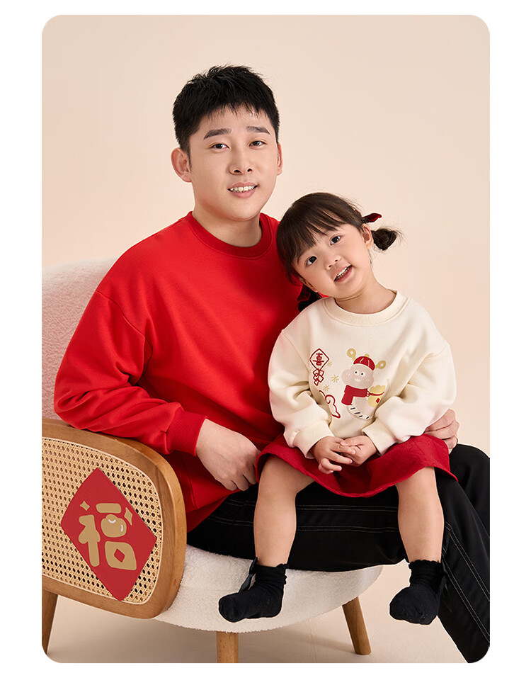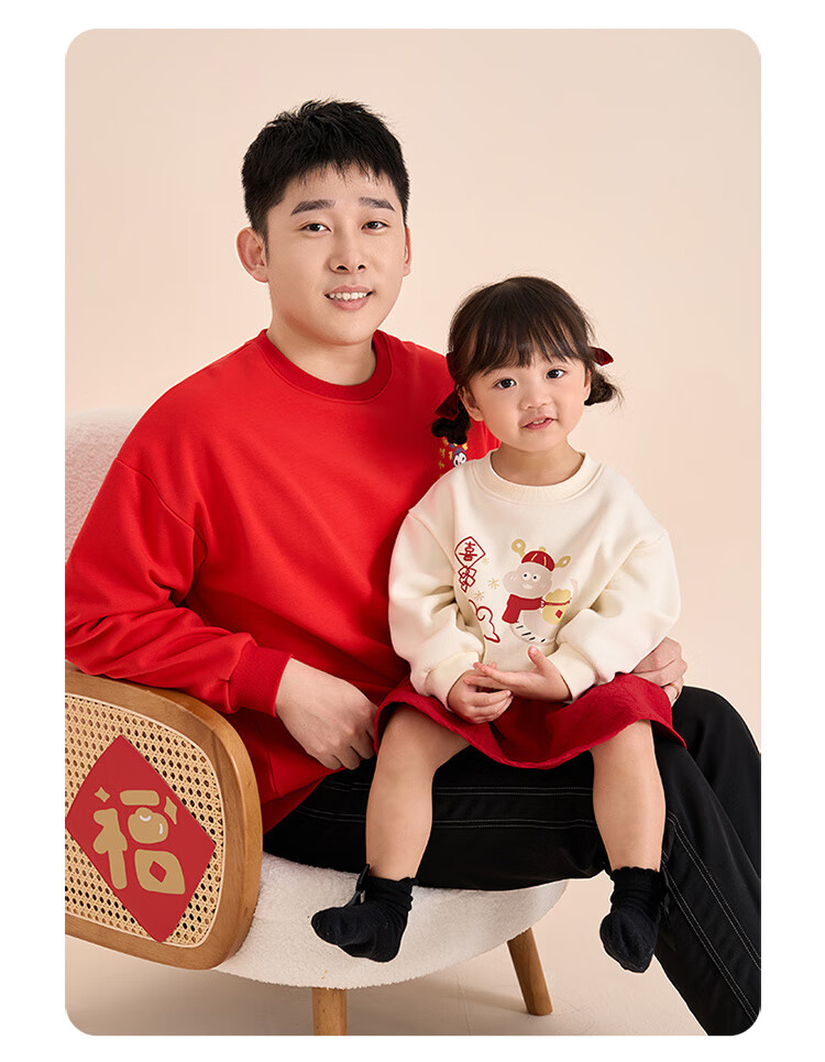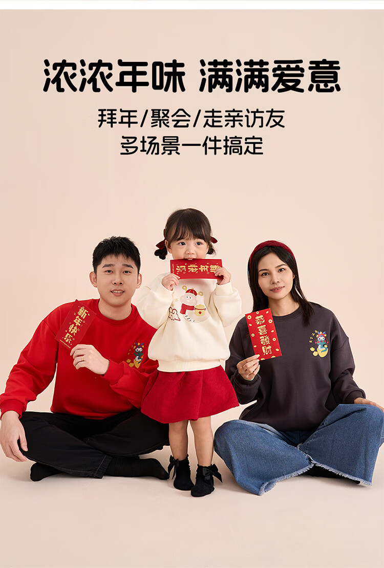 博睿恩(Pureborn)宝宝新年款亲子装加绒秋冬新款一家三口保暖新年拜年服 爆竹红-宝宝款 110
