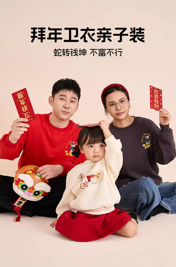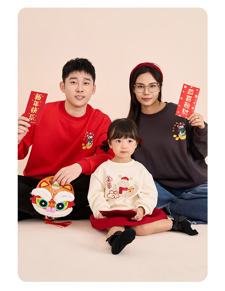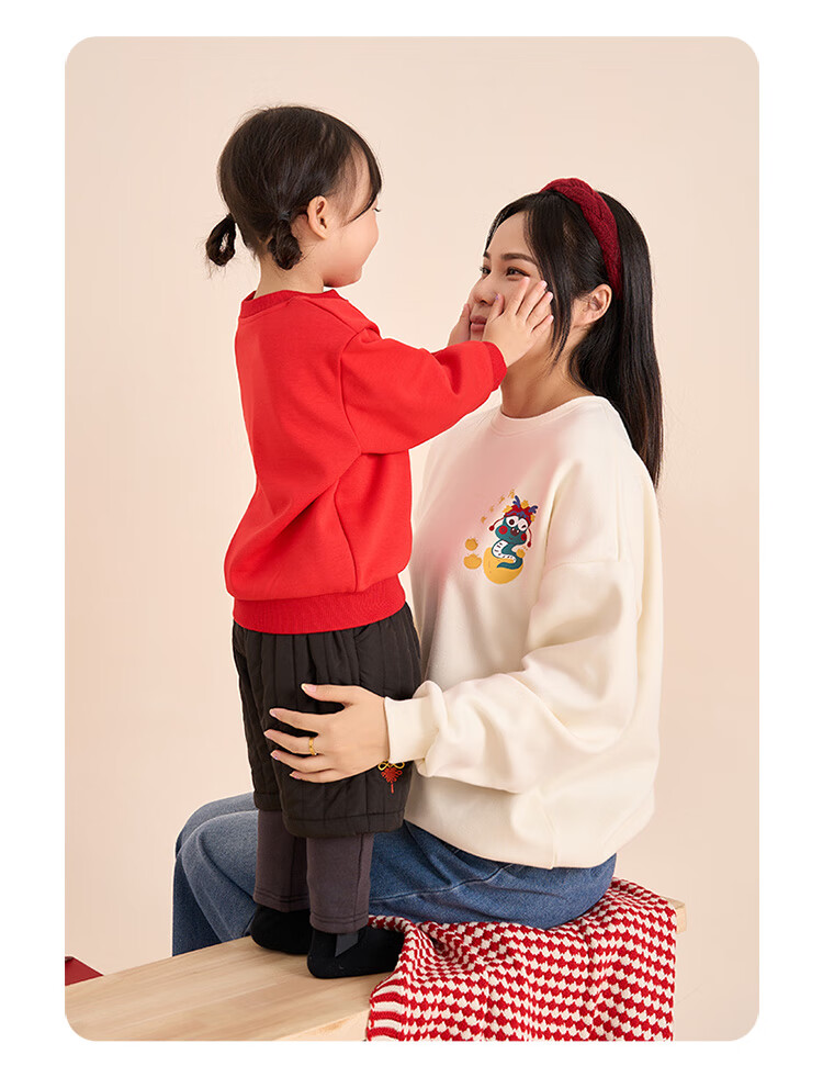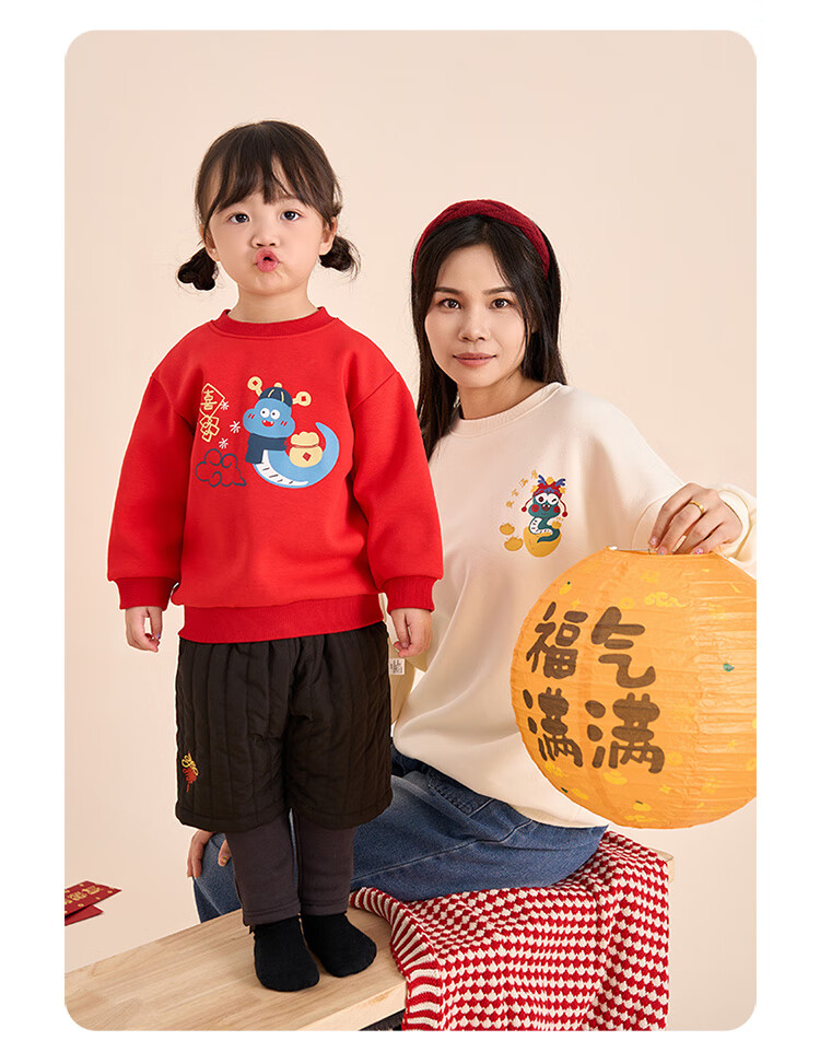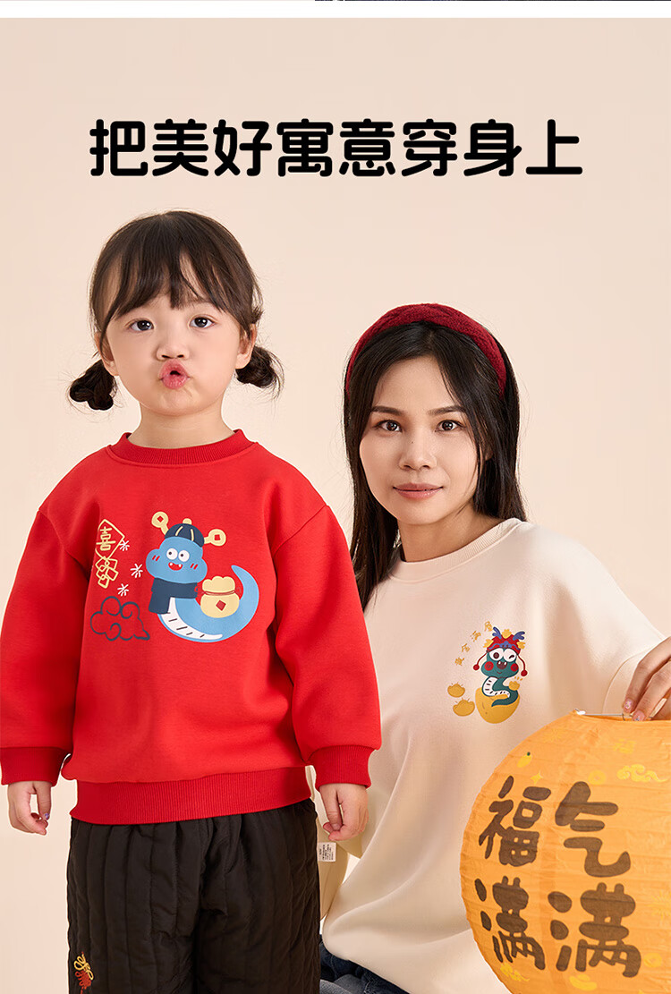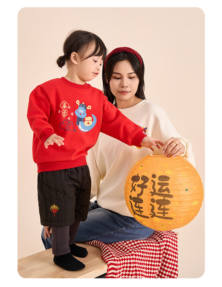 博睿恩(Pureborn)宝宝新年款亲子装加绒秋冬新款一家三口保暖新年拜年服 爆竹红-宝宝款 110
