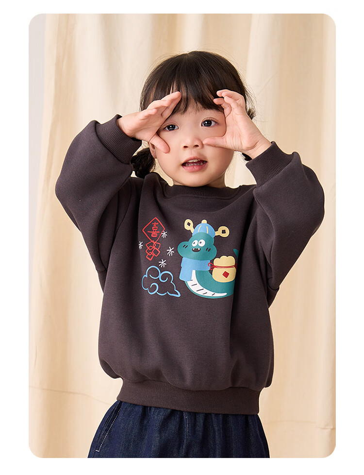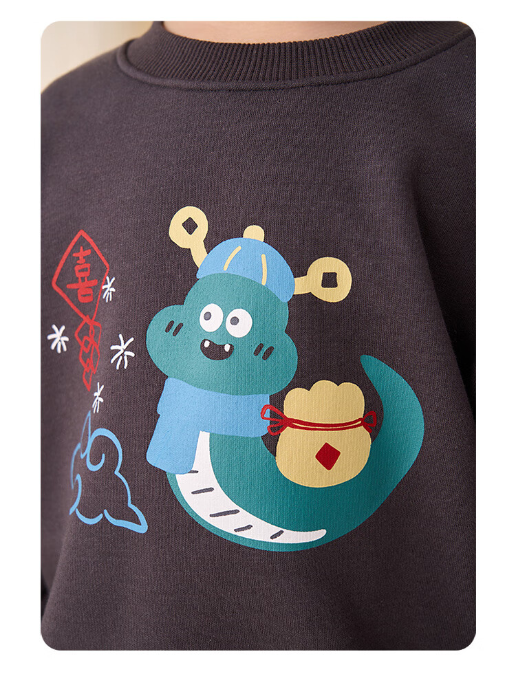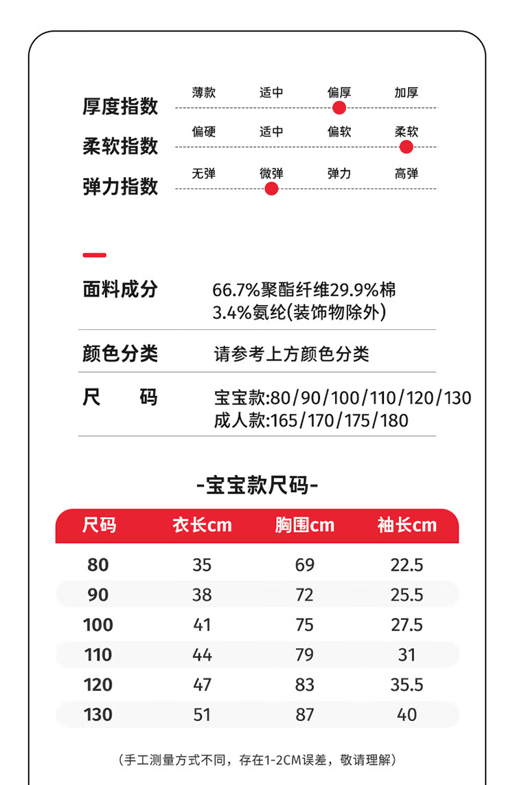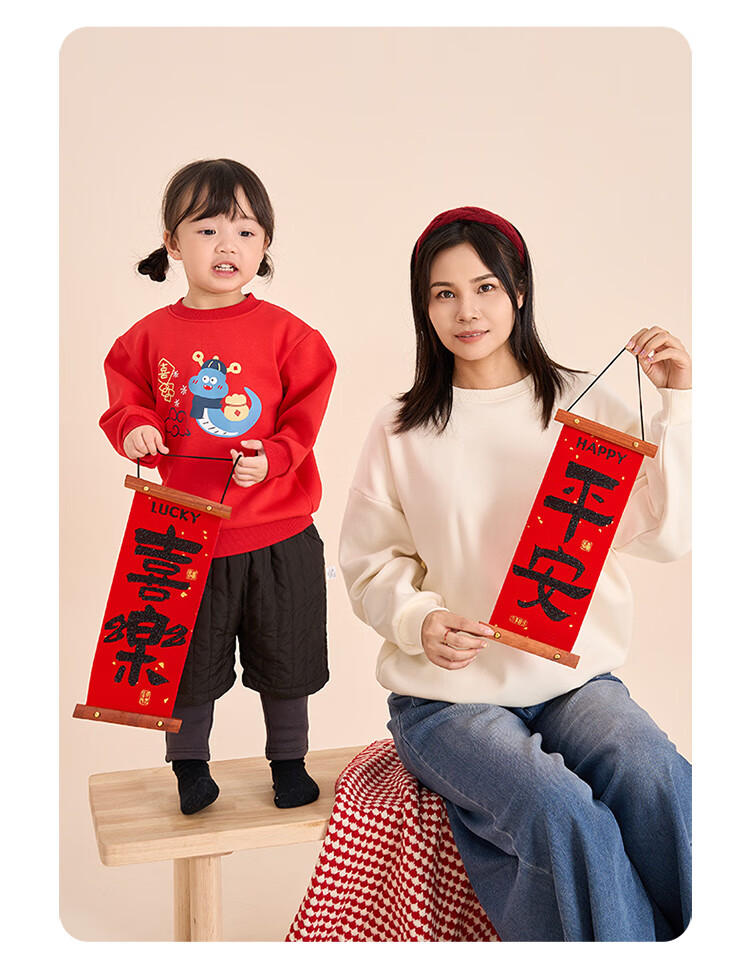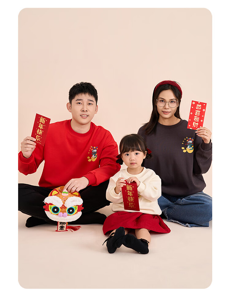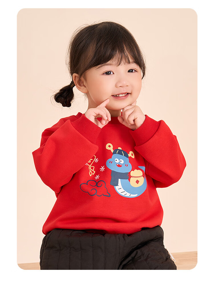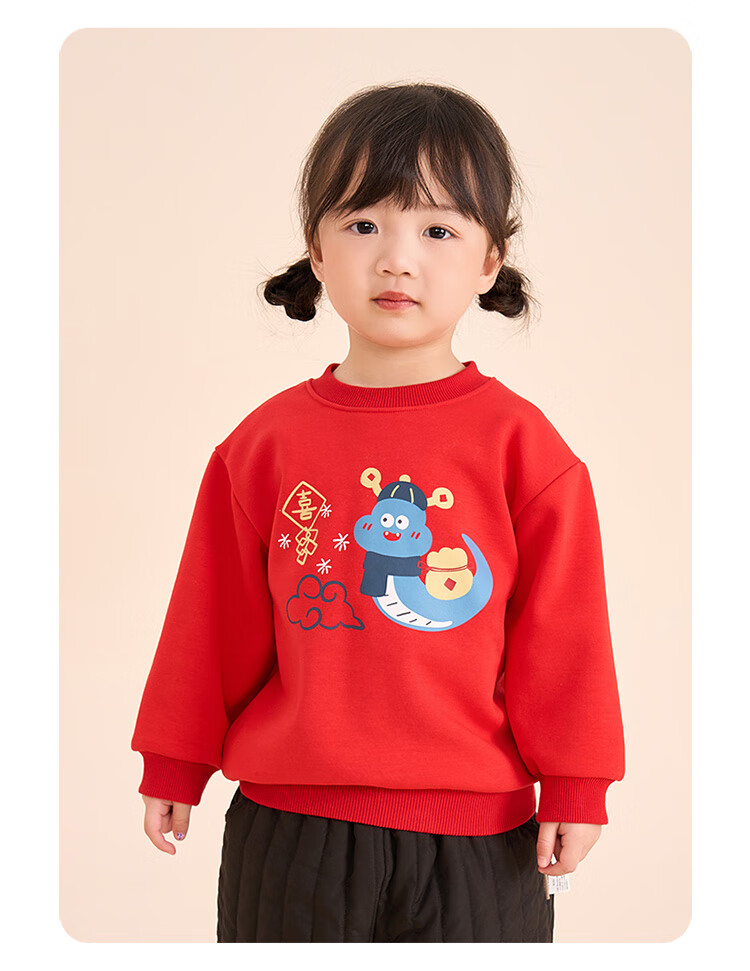 博睿恩(Pureborn)宝宝新年款亲子装加绒秋冬新款一家三口保暖新年拜年服 爆竹红-宝宝款 110