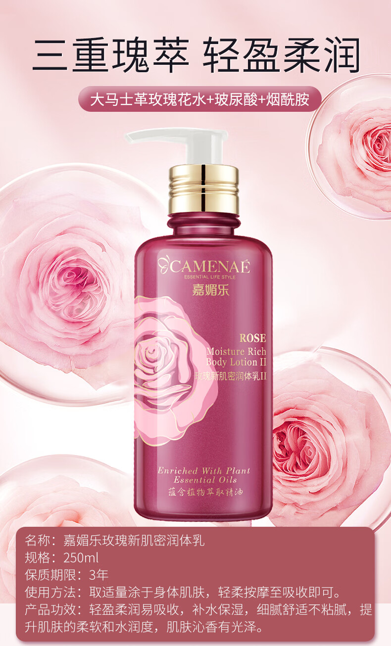 嘉媚乐玫瑰身体乳保湿补水玫瑰香味润肤乳露嘉媚乐新肌密润体乳 玫瑰新肌密润体乳250ml