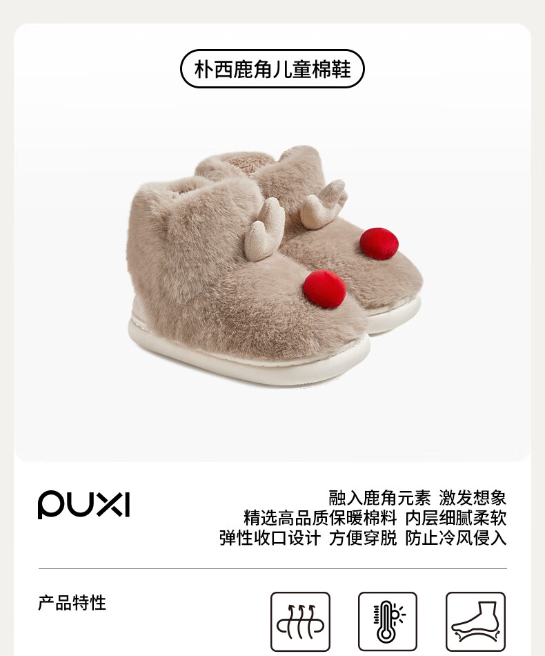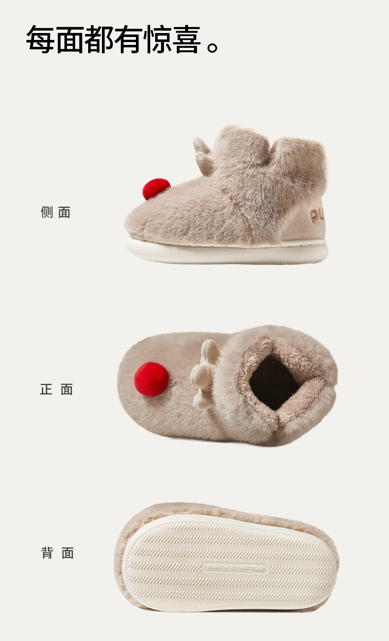 朴西鹿角儿童棉靴女童可爱冬季新款加绒加厚保暖软底男童宝宝棉鞋 云朵白 32 (210mm)