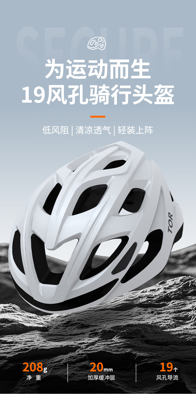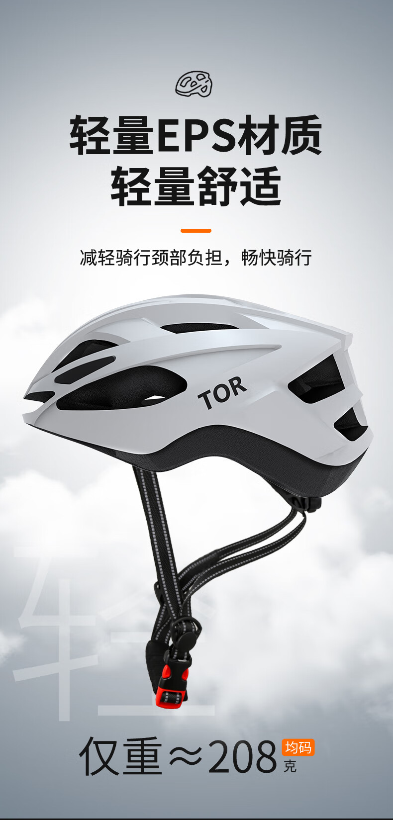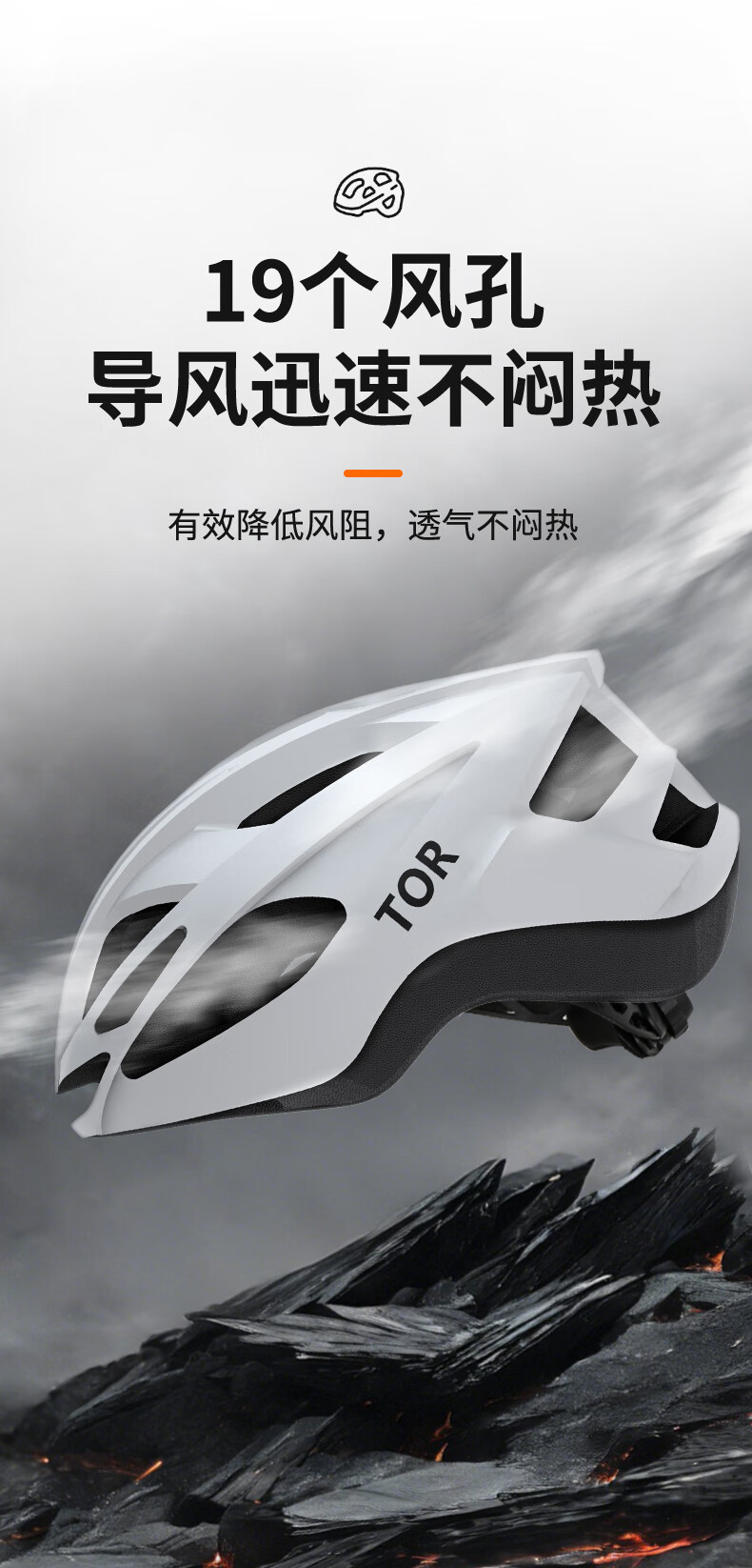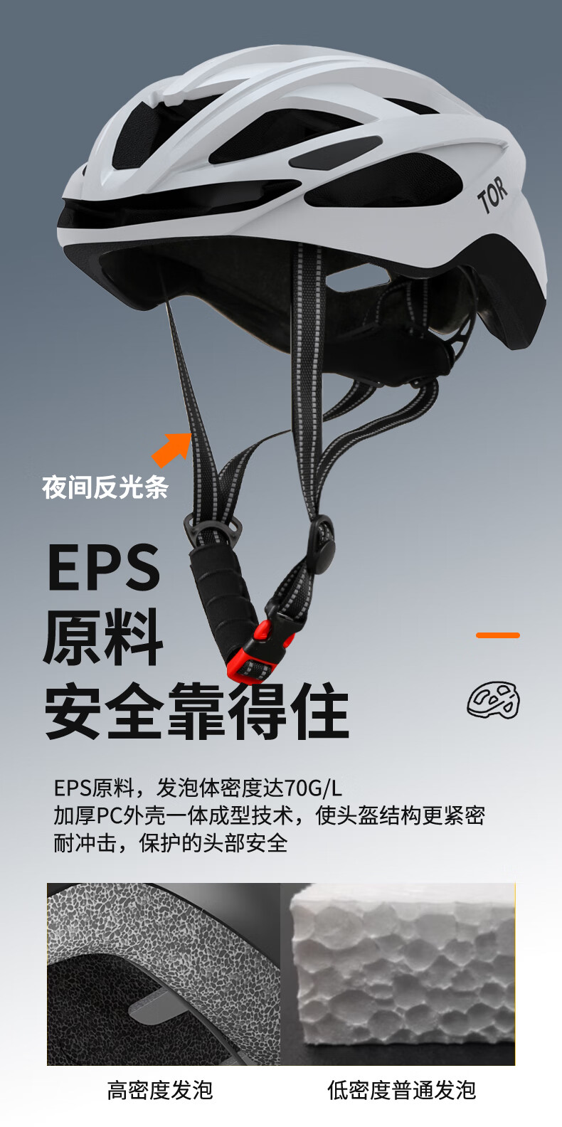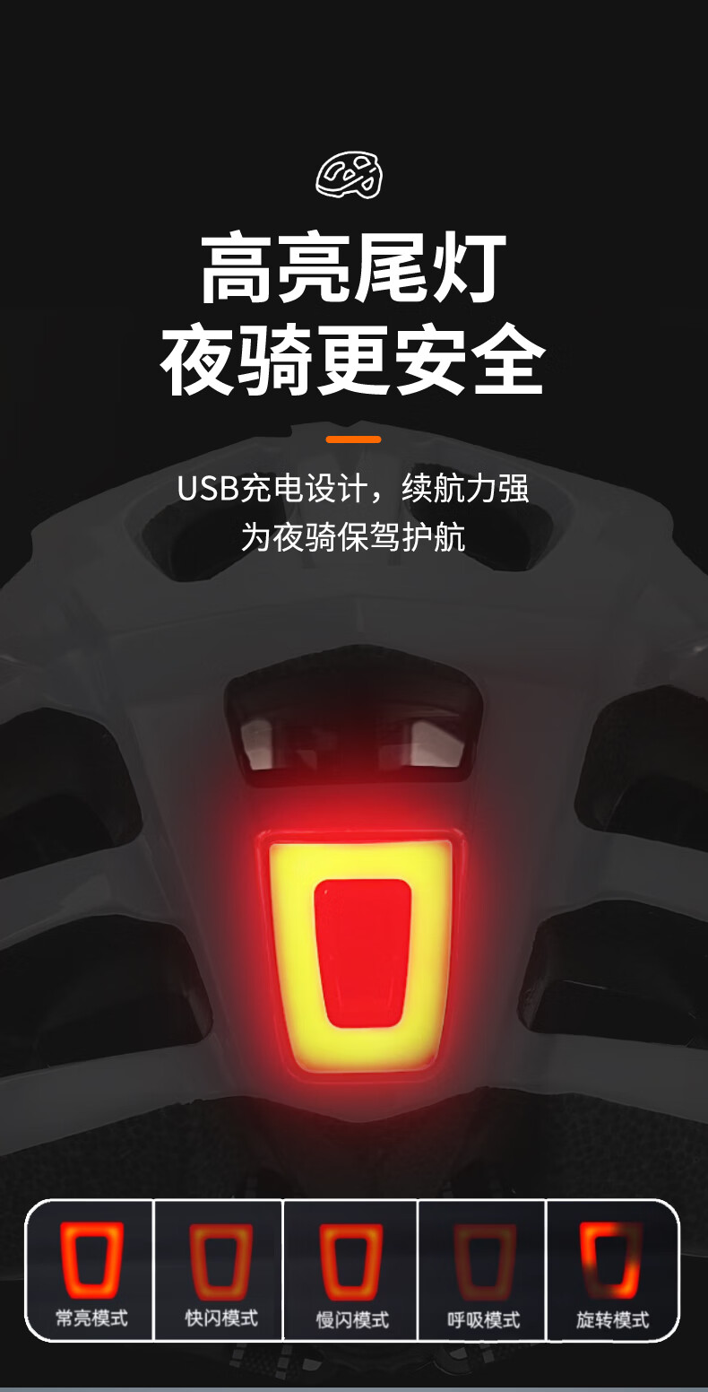 TOR骑行头盔山路车山地车公路车自行车头盔男女一体成型轻量化安全帽 尾灯款黑色+高密度EPS+可调头围 均码