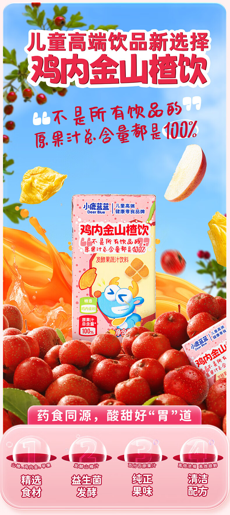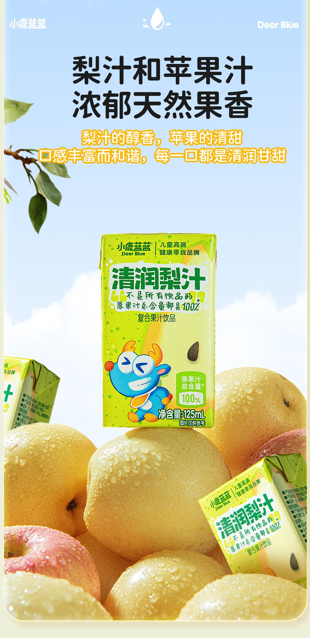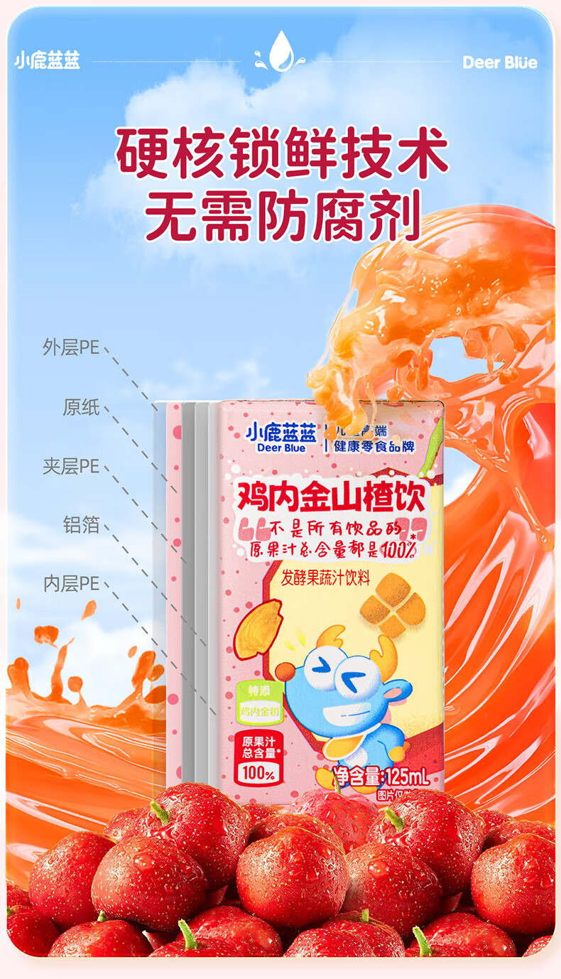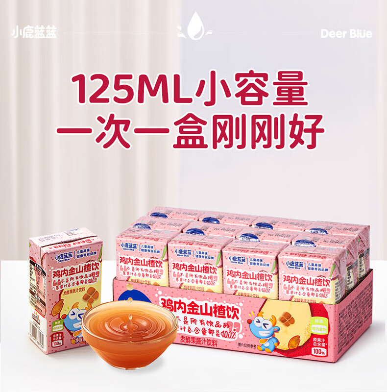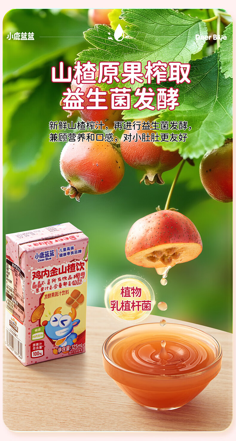 小鹿蓝蓝梨汁山楂汁清润5层保鲜材质不加香精色素防腐剂原果汁总含量100% 【鸡内金山楂饮】 125ml*12盒