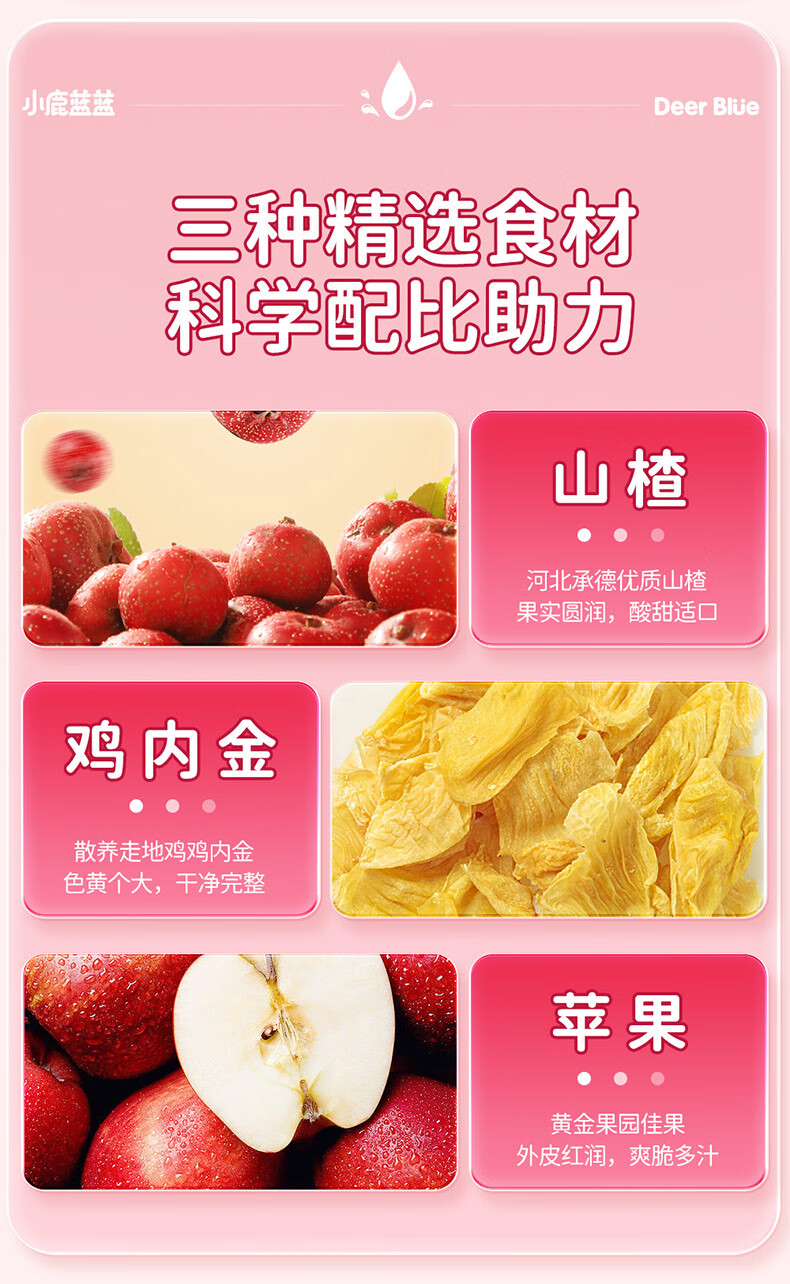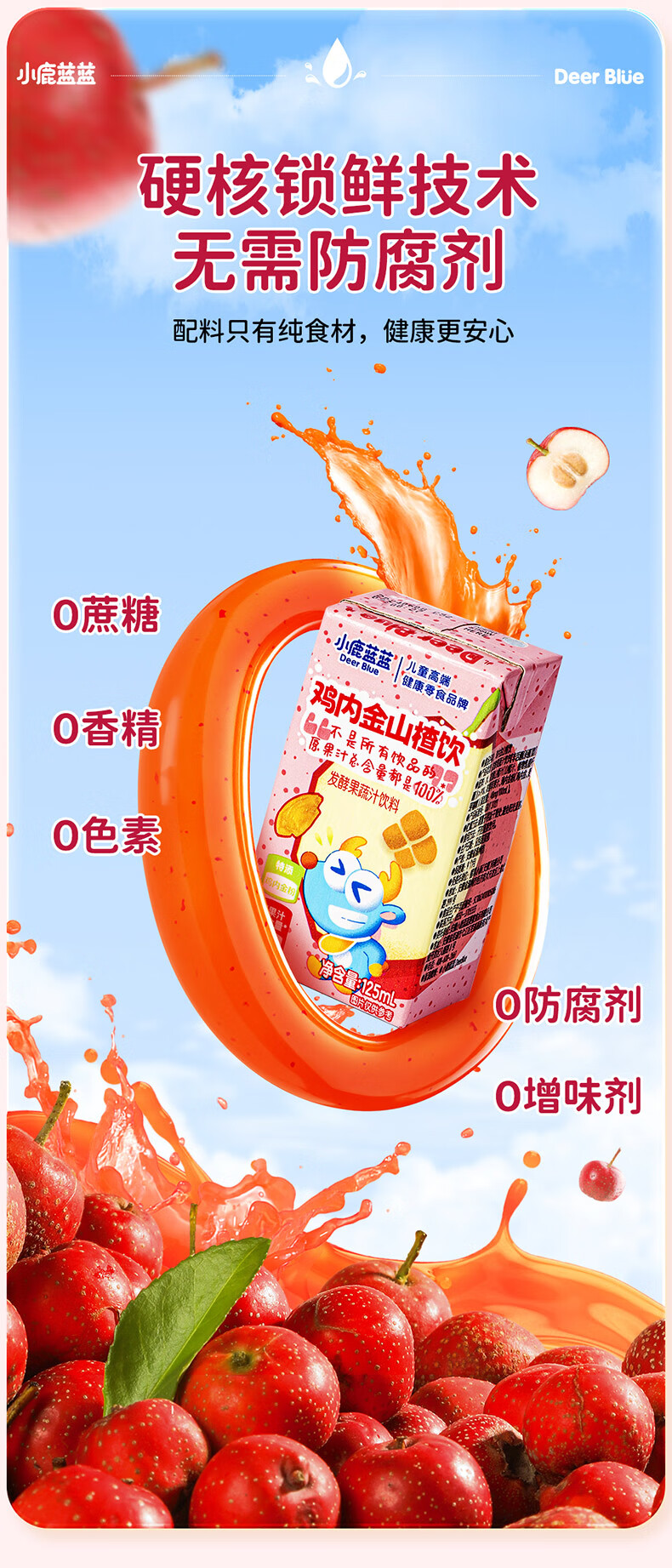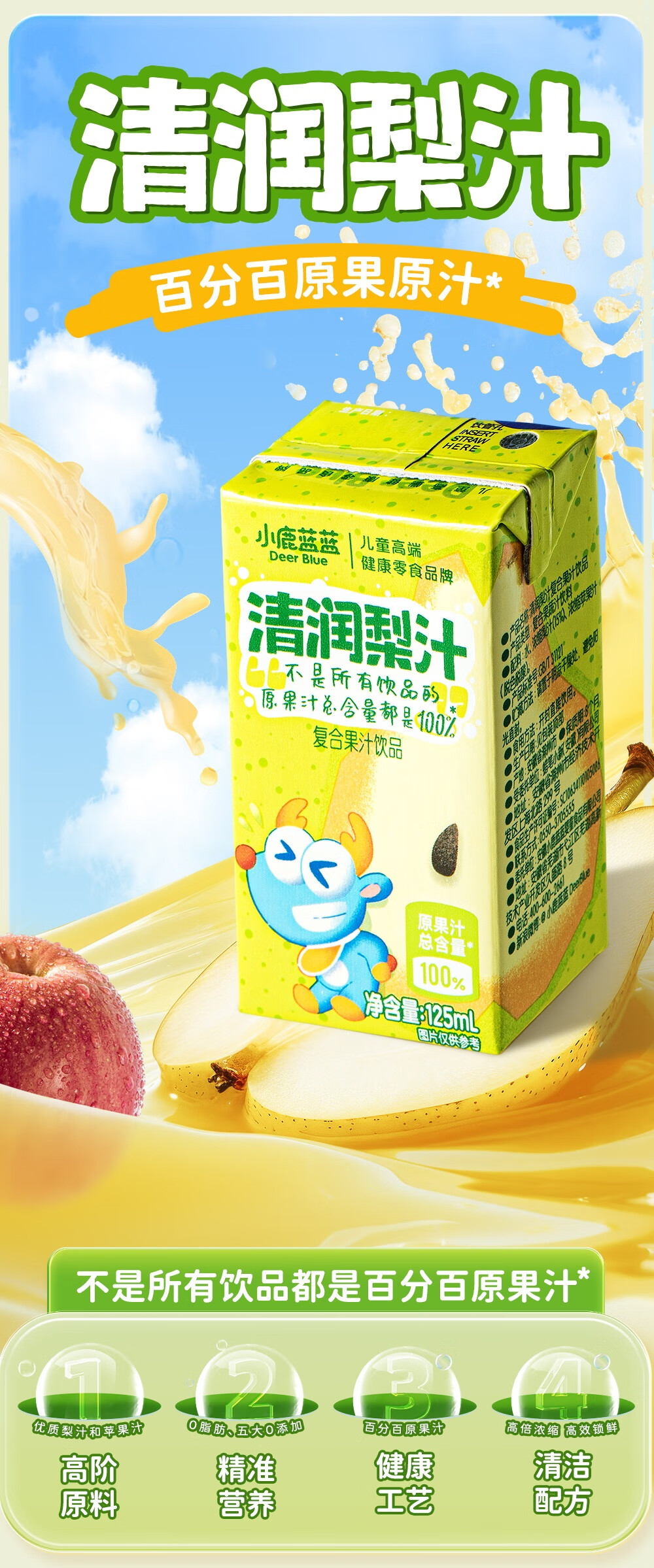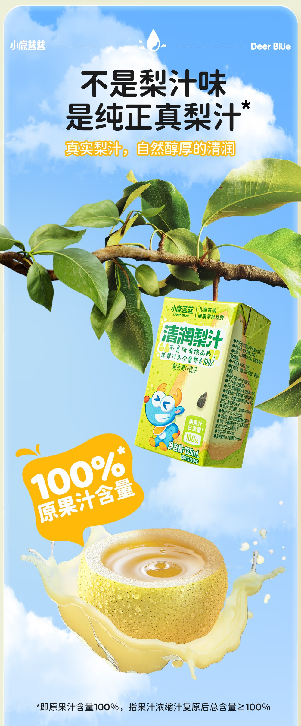 小鹿蓝蓝梨汁山楂汁清润5层保鲜材质不加香精色素防腐剂原果汁总含量100% 【鸡内金山楂饮】 125ml*12盒