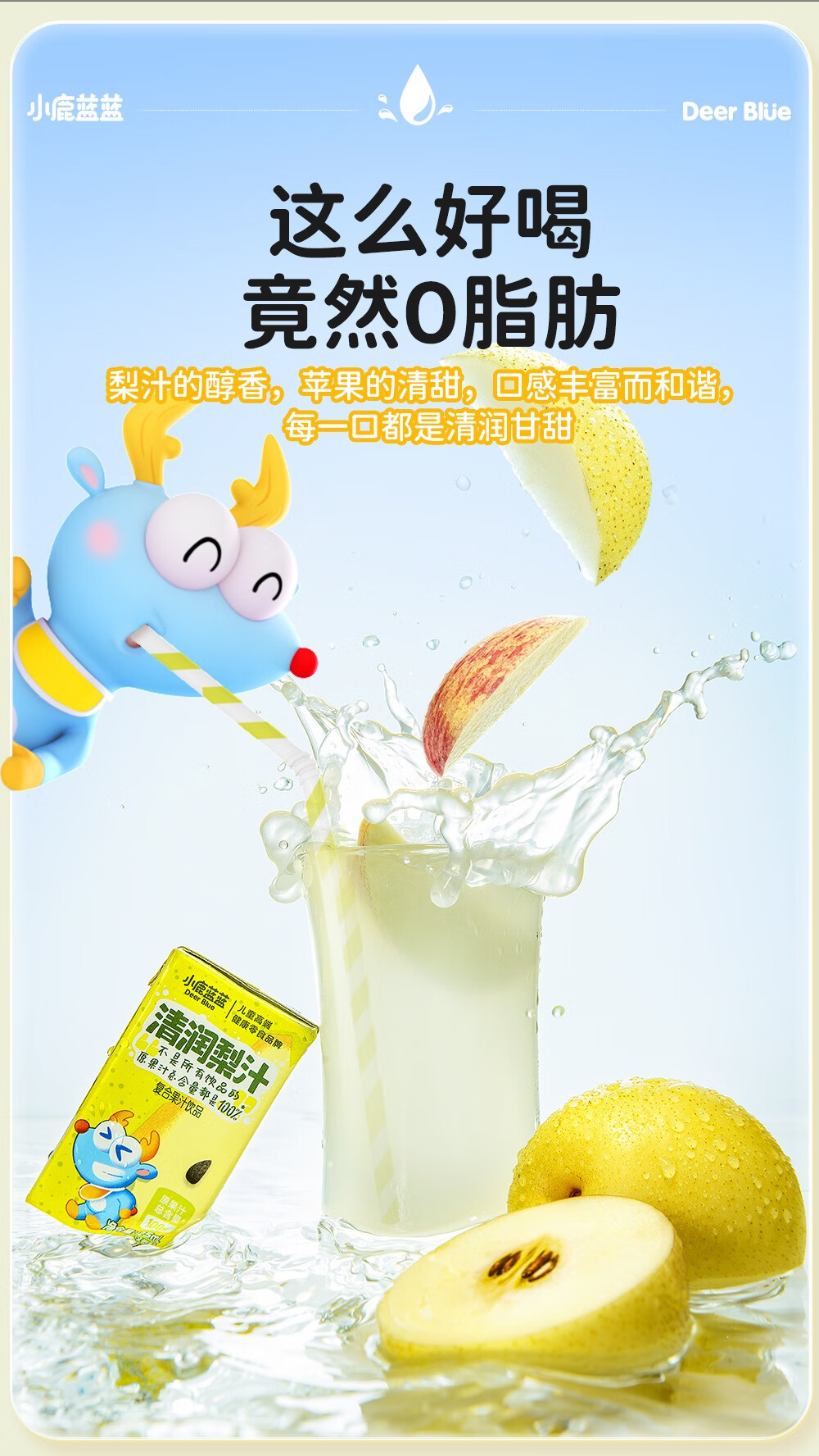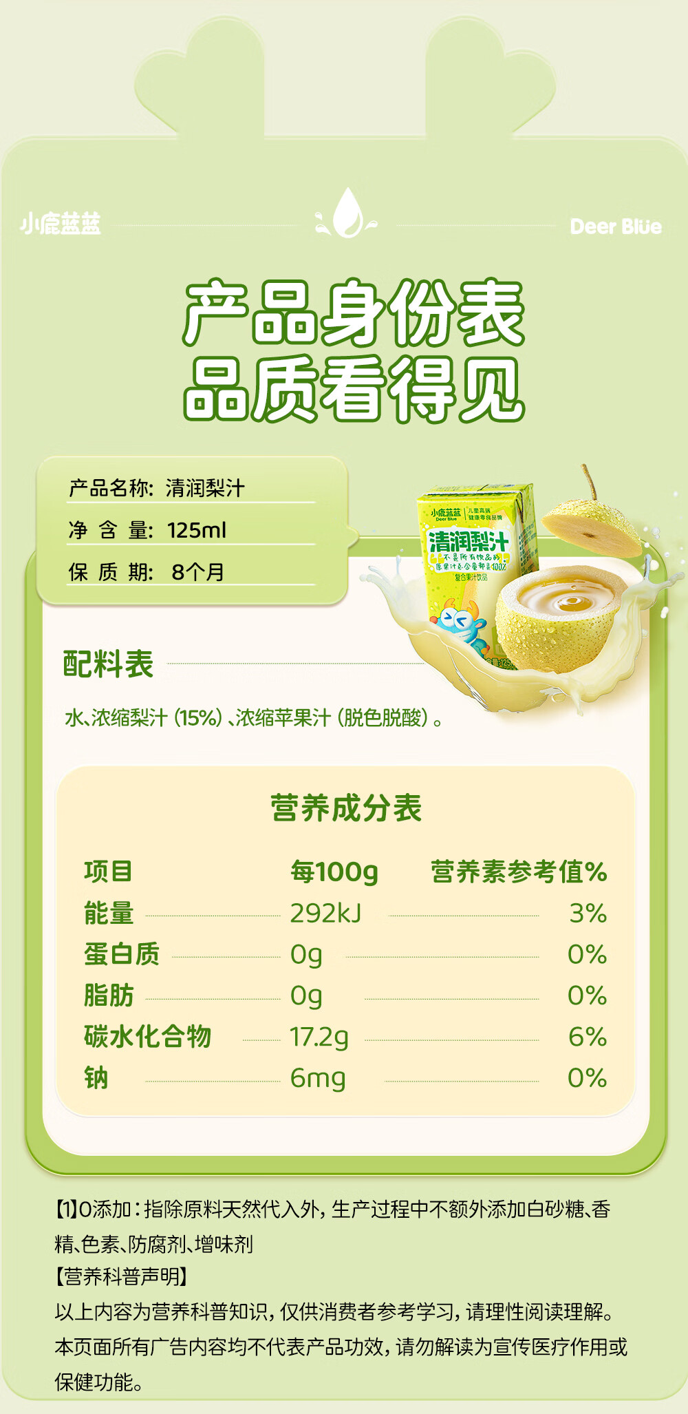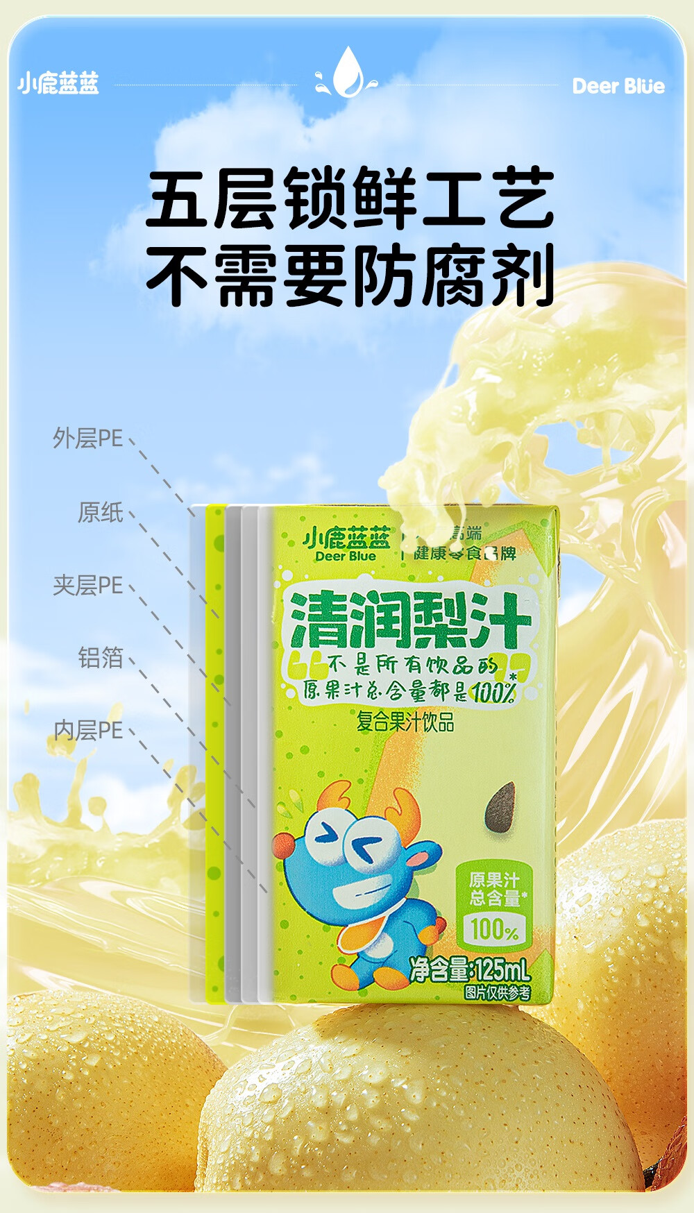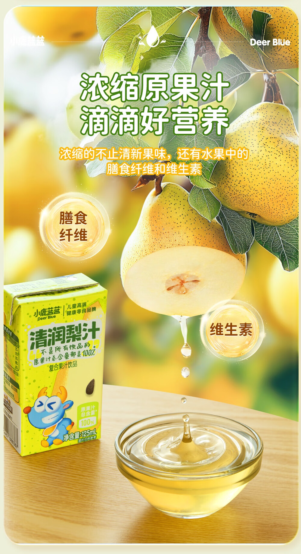 小鹿蓝蓝梨汁山楂汁清润5层保鲜材质不加香精色素防腐剂原果汁总含量100% 【鸡内金山楂饮】 125ml*12盒