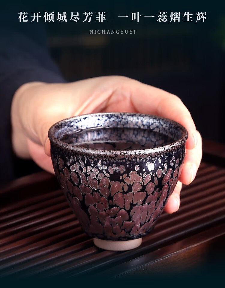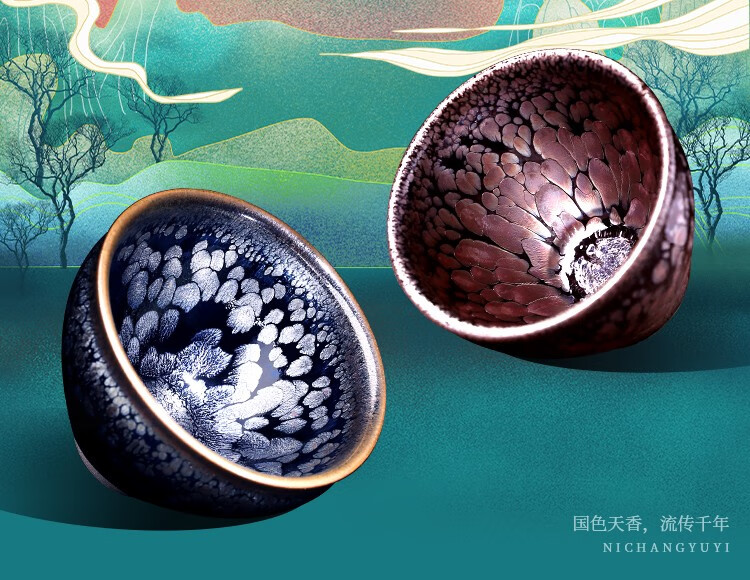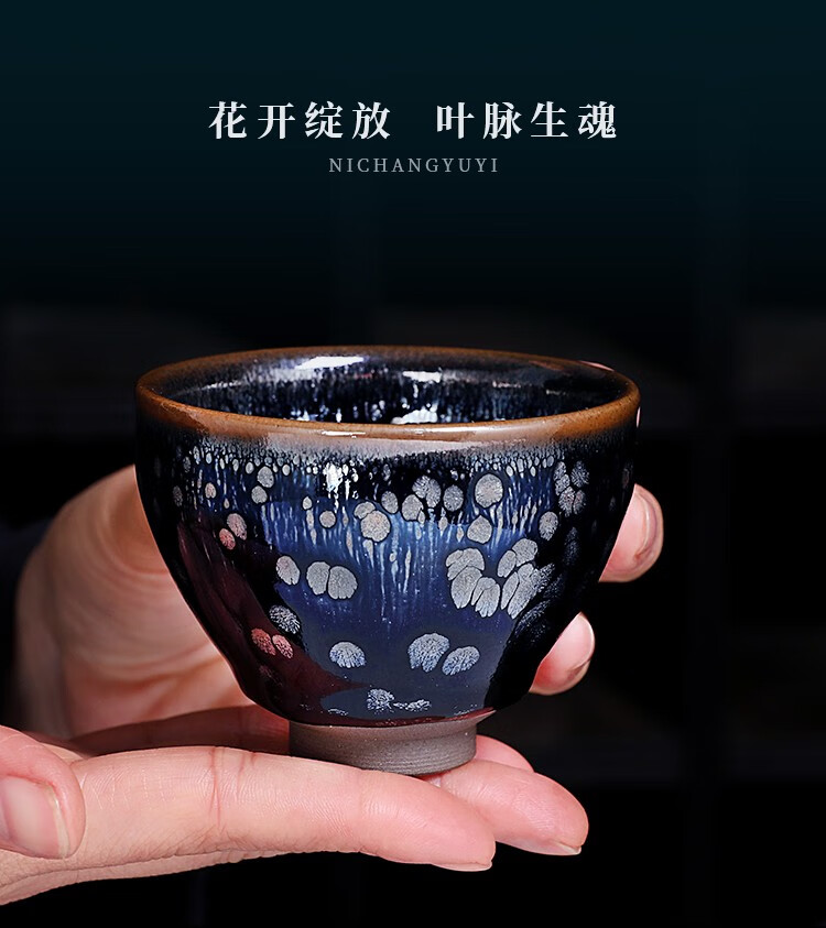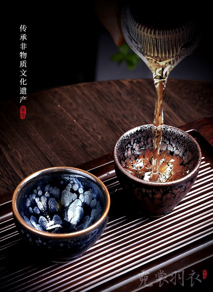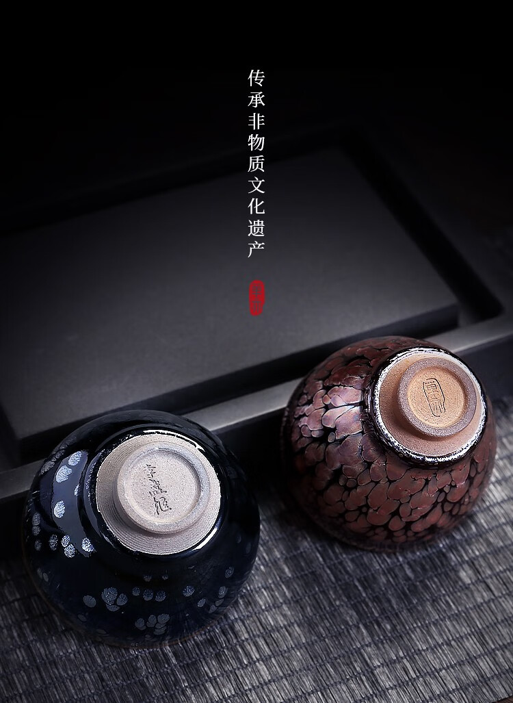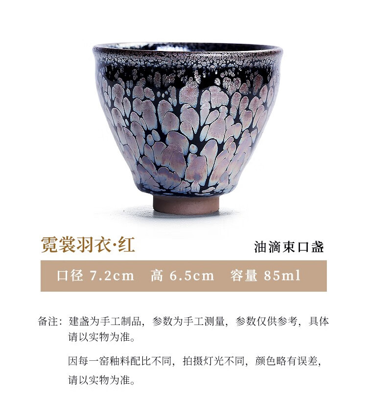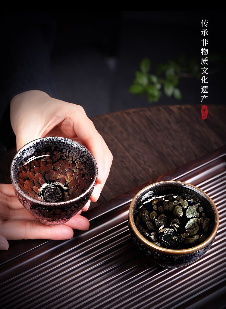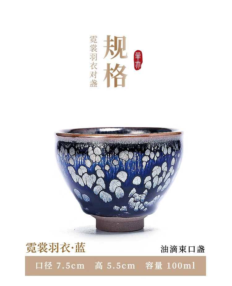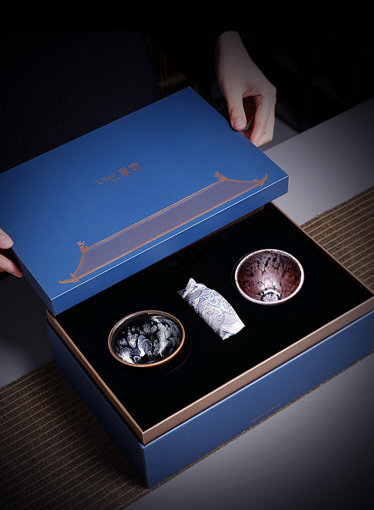 单亦建盏茶杯纯手工主人杯功夫茶具铁胎品茗杯油滴对杯高档春节礼物 霓裳羽衣【礼盒装】