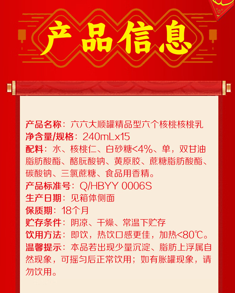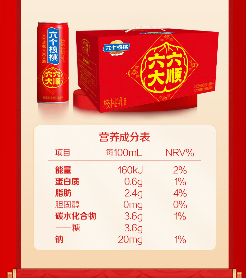 六个核桃六六大顺240ml*15罐核桃乳植物蛋白饮料整箱