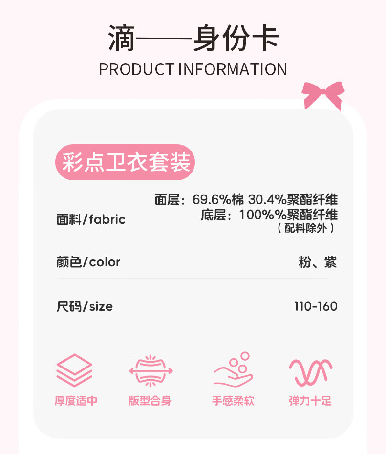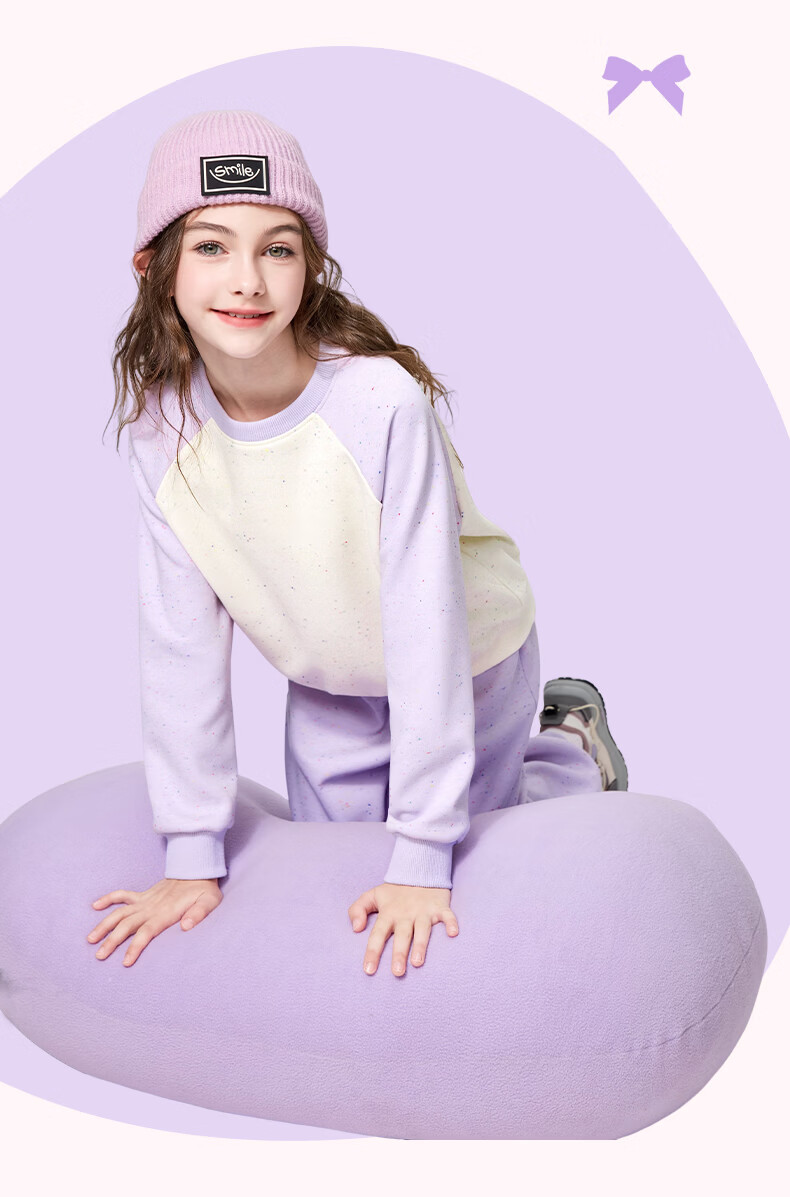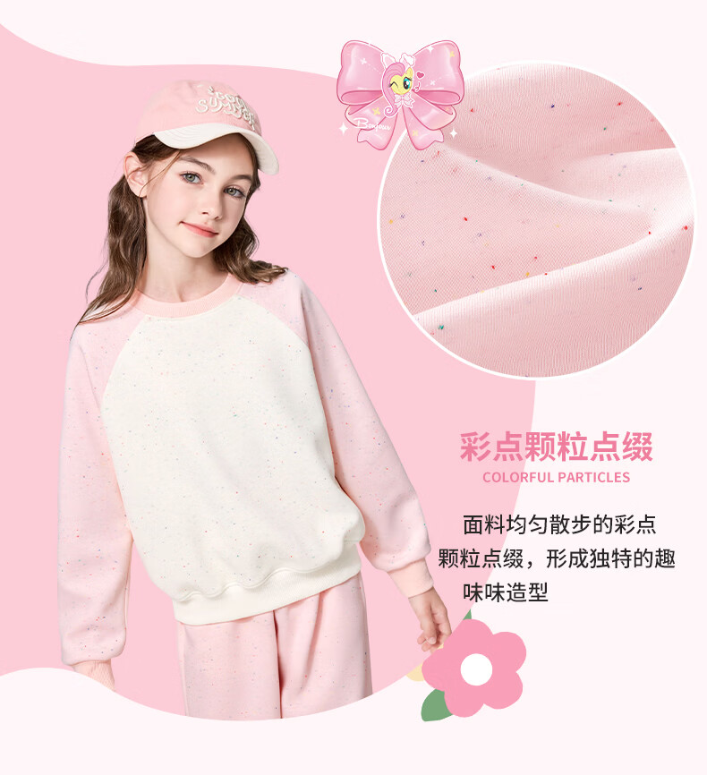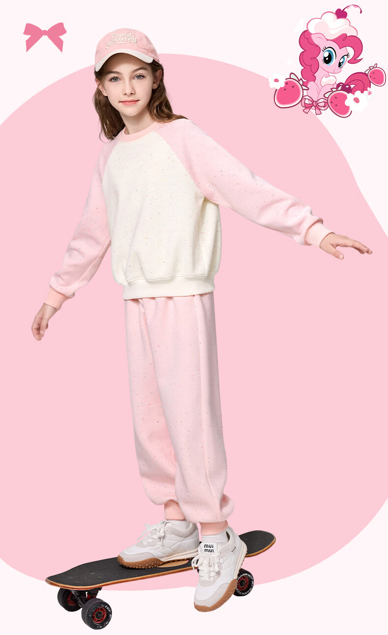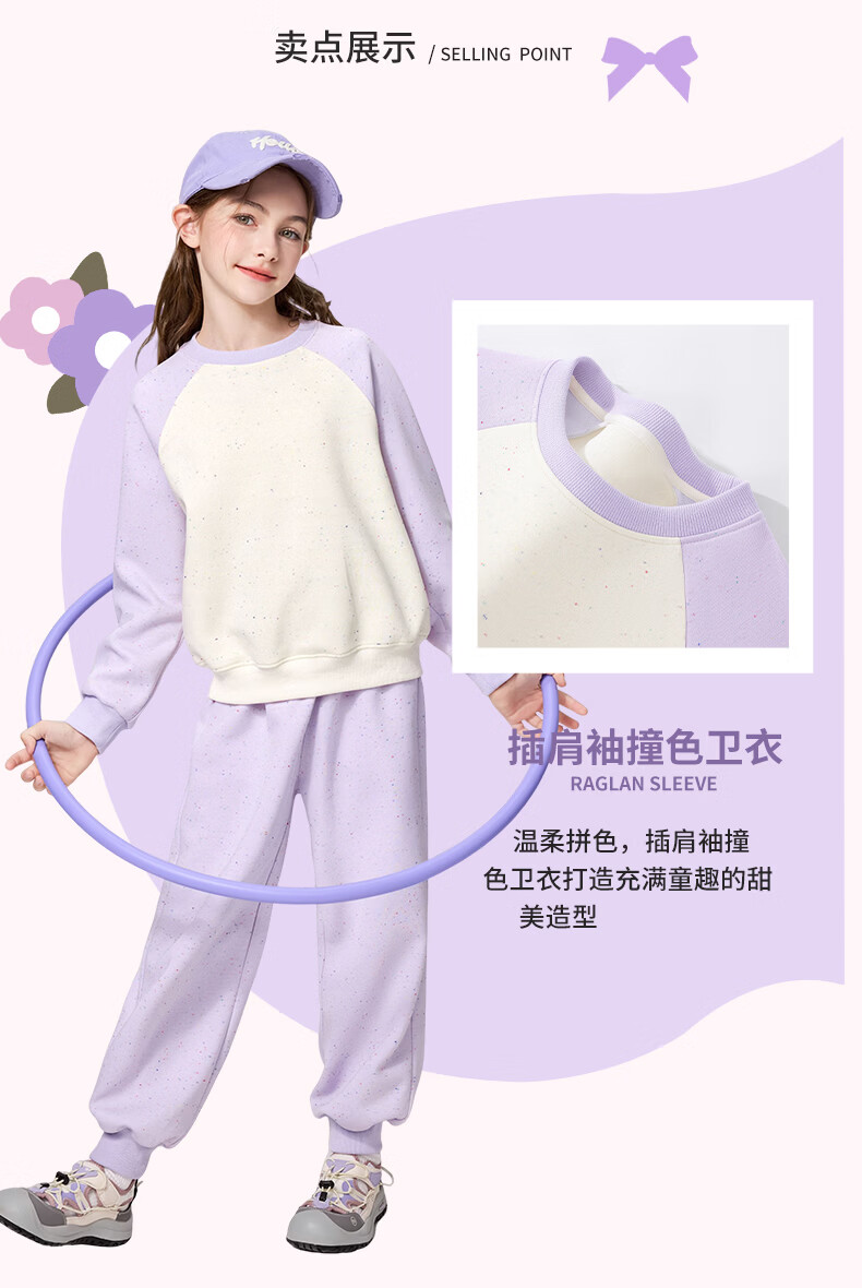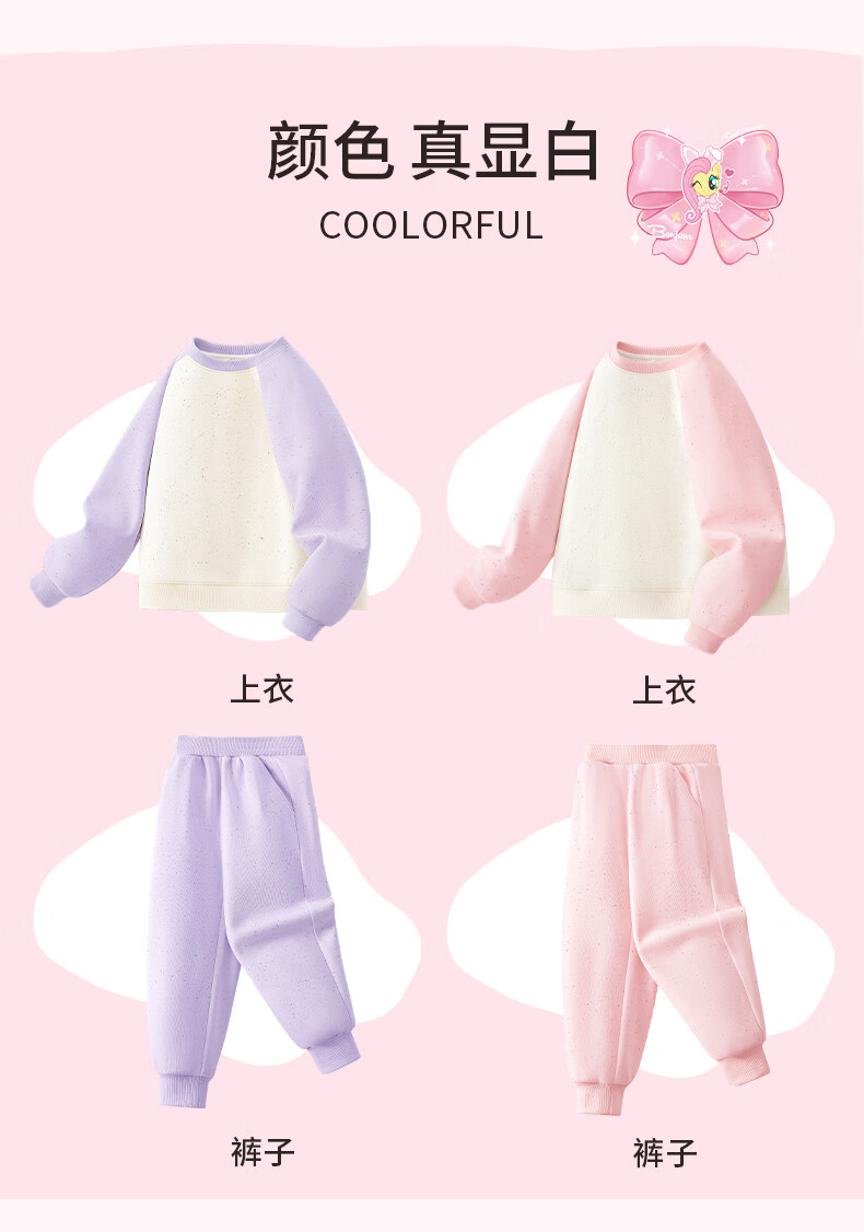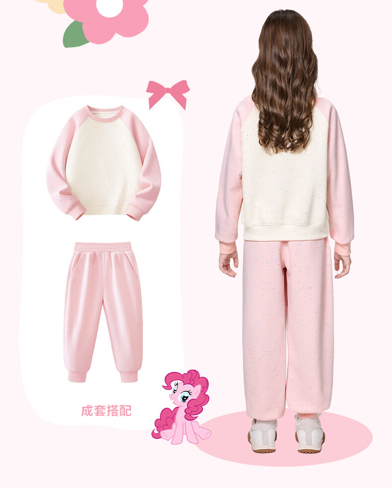 小马宝莉女童套装春季2026新款儿童甜美洋气彩点运动卫衣卫裤两件套 紫 淡彩三主角 110