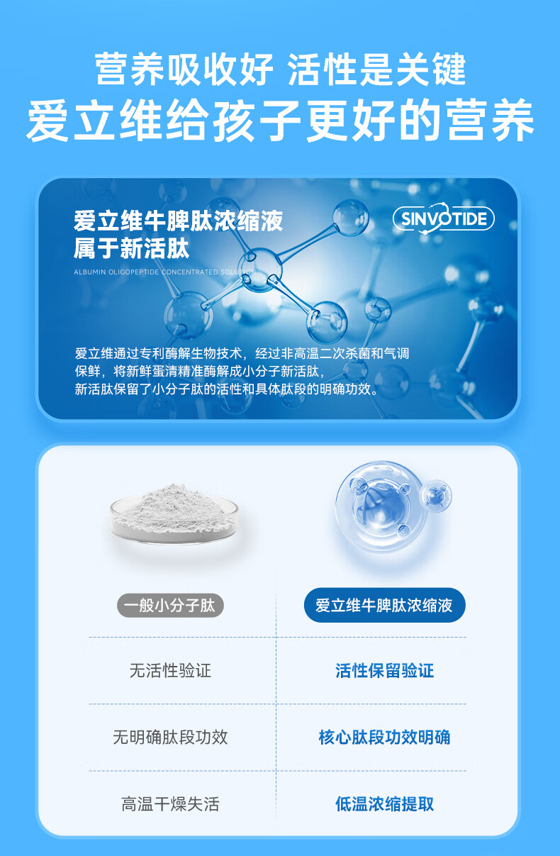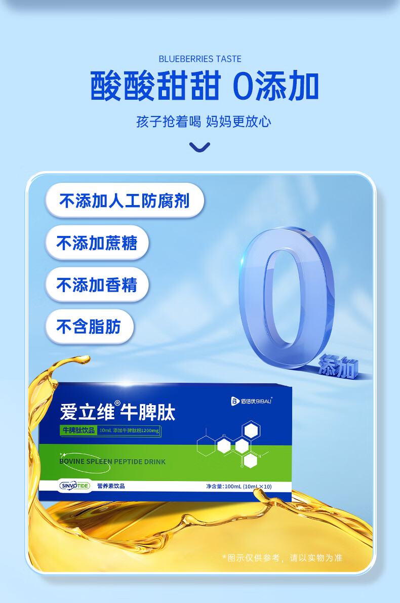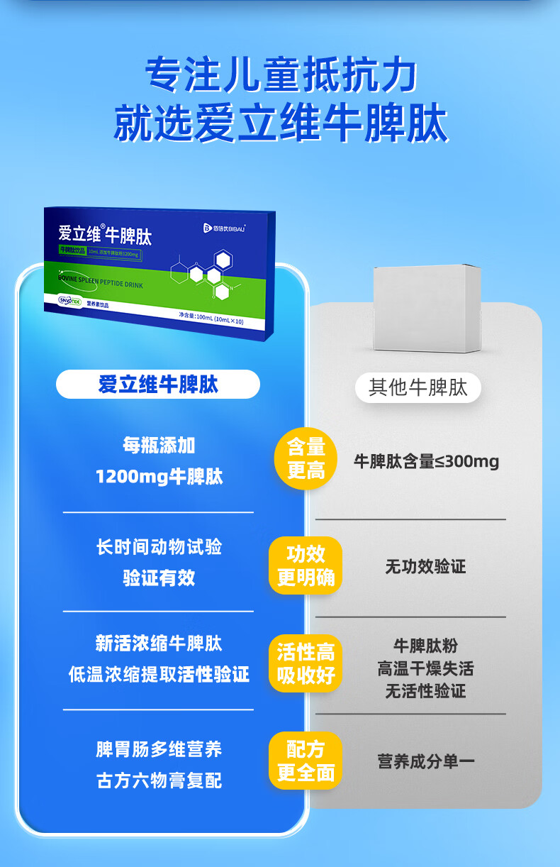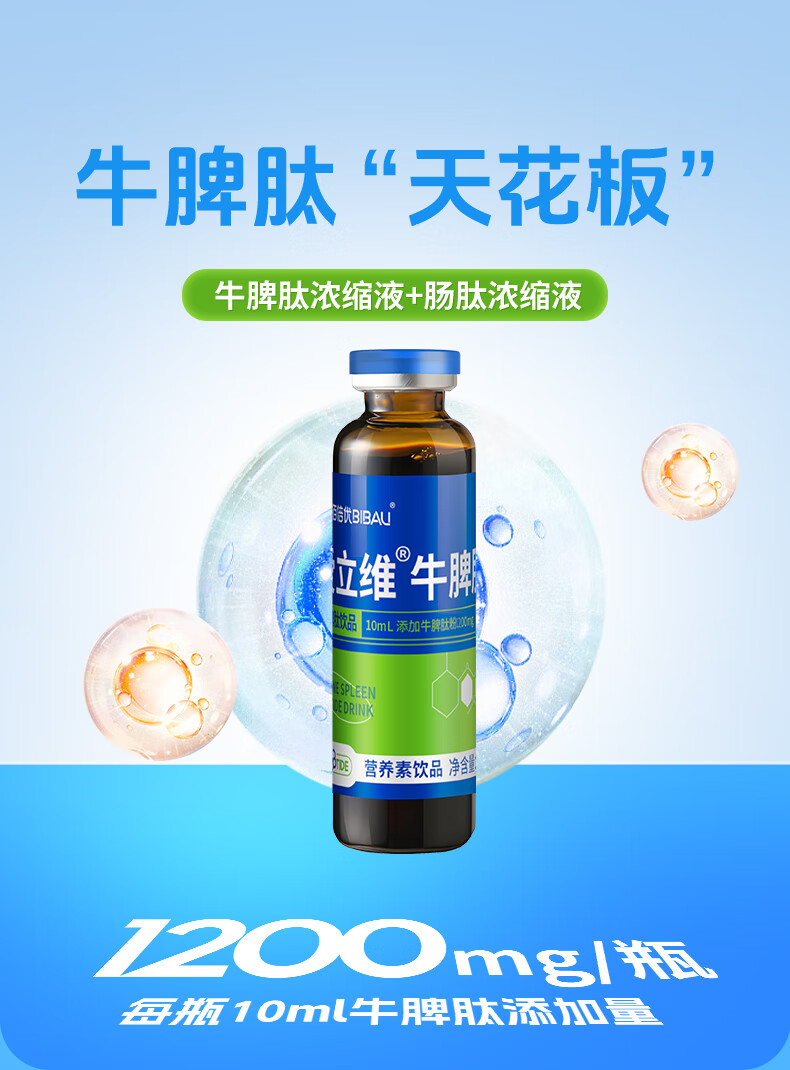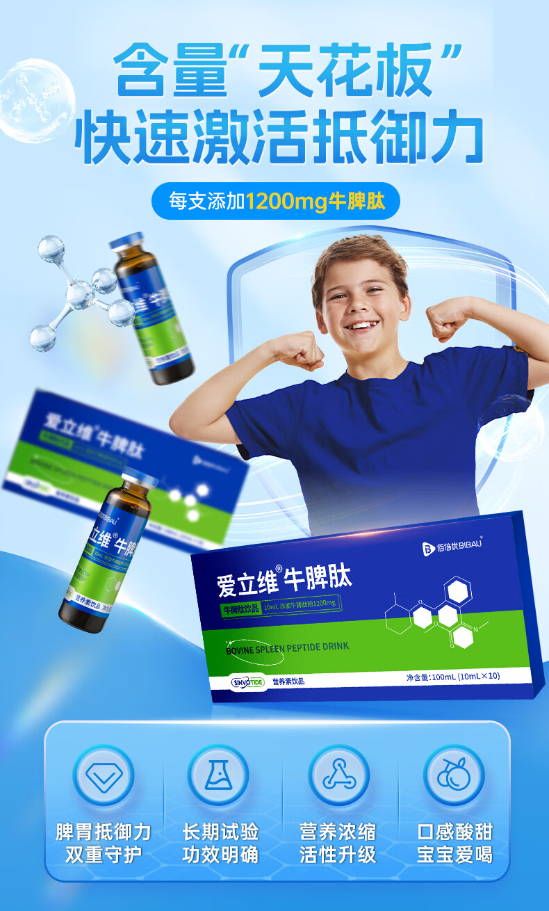 爱立维牛脾肽鸡内金脾氨肽儿童成人口服液小分子多肽1200mg10ml*10 高含量6盒60支【6-12岁 60天巩固装】