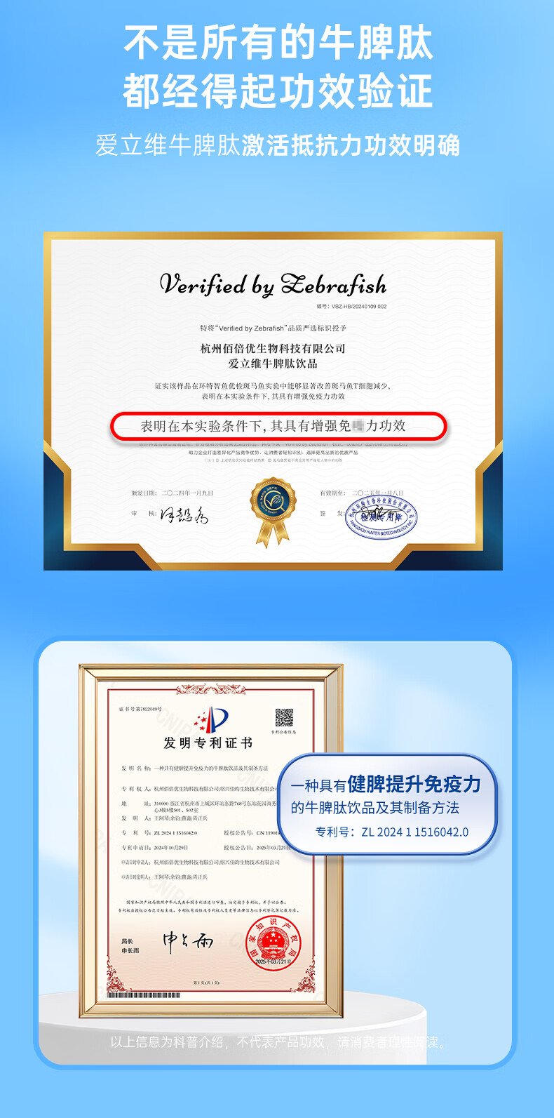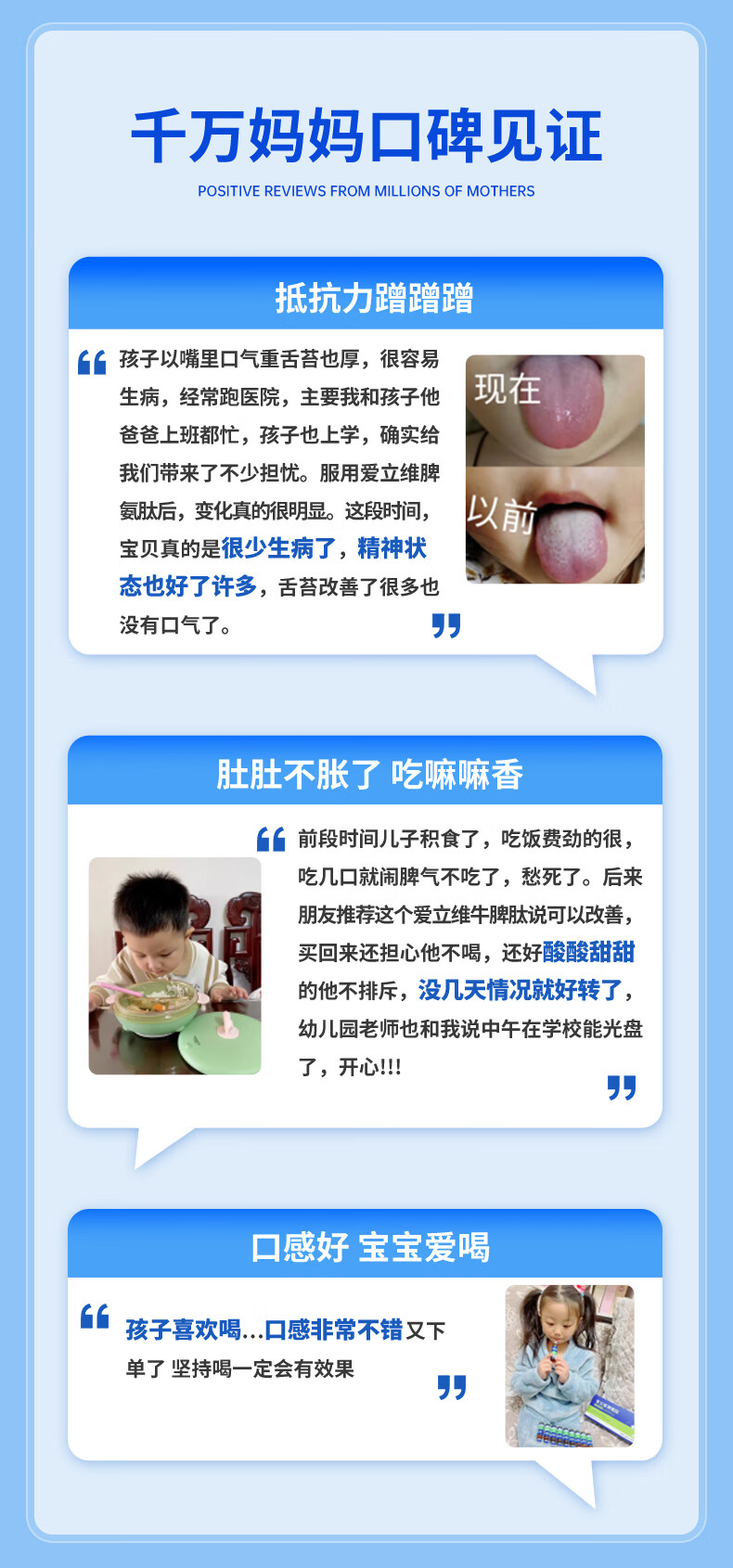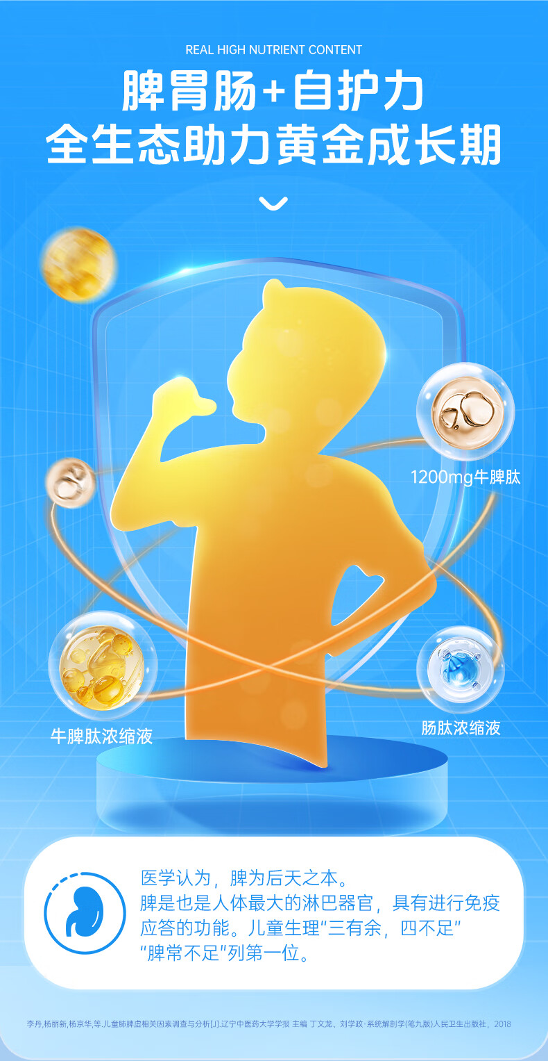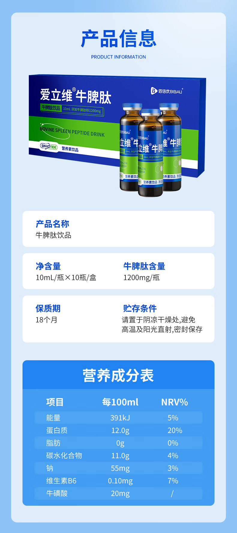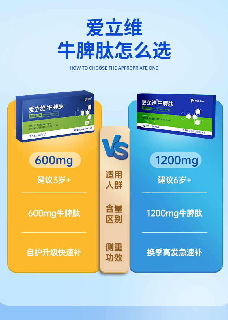 爱立维牛脾肽鸡内金脾氨肽儿童成人口服液小分子多肽1200mg10ml*10 高含量6盒60支【6-12岁 60天巩固装】