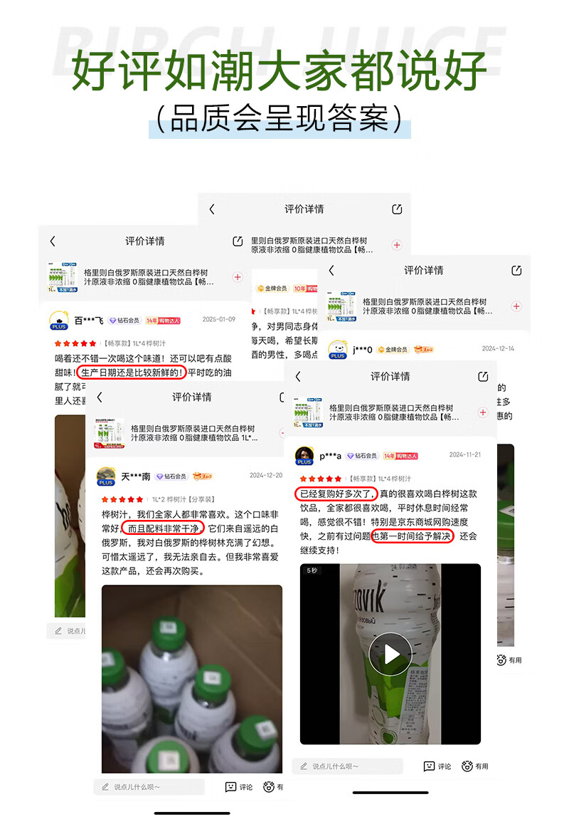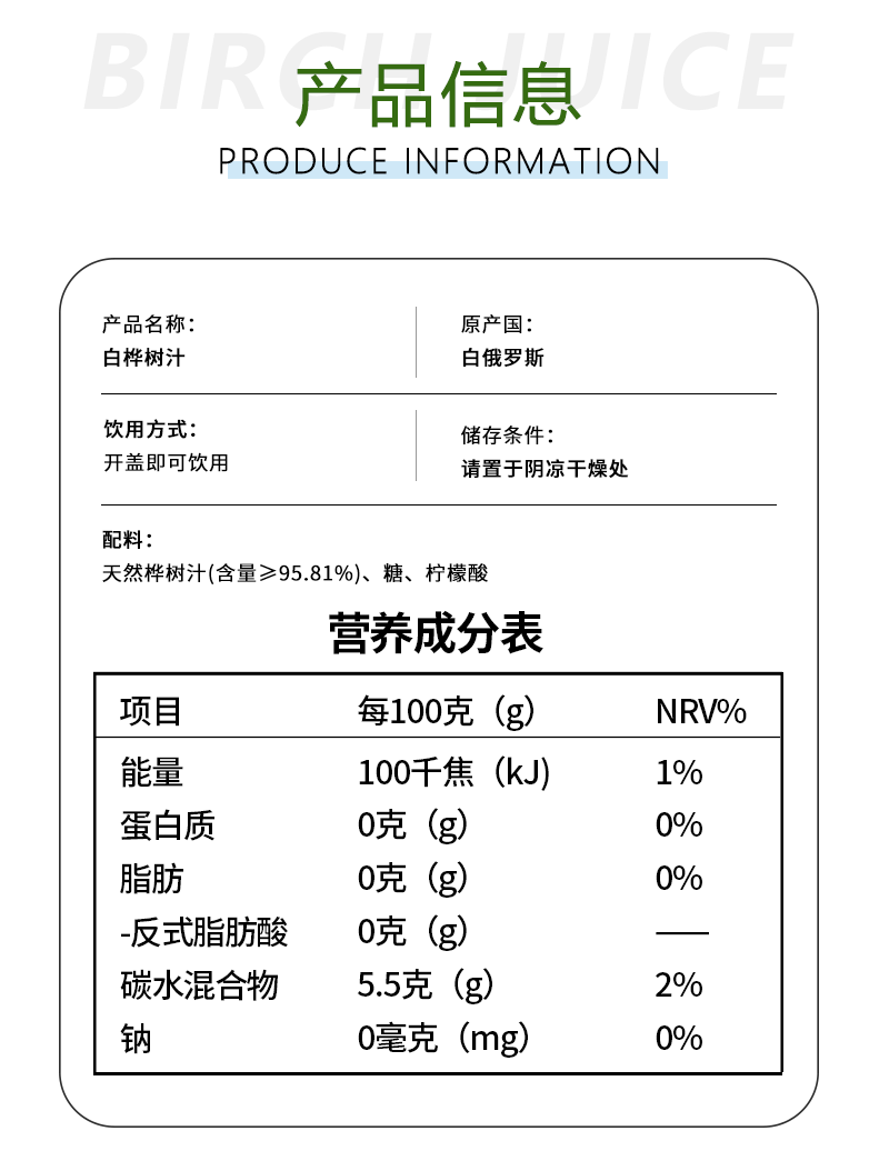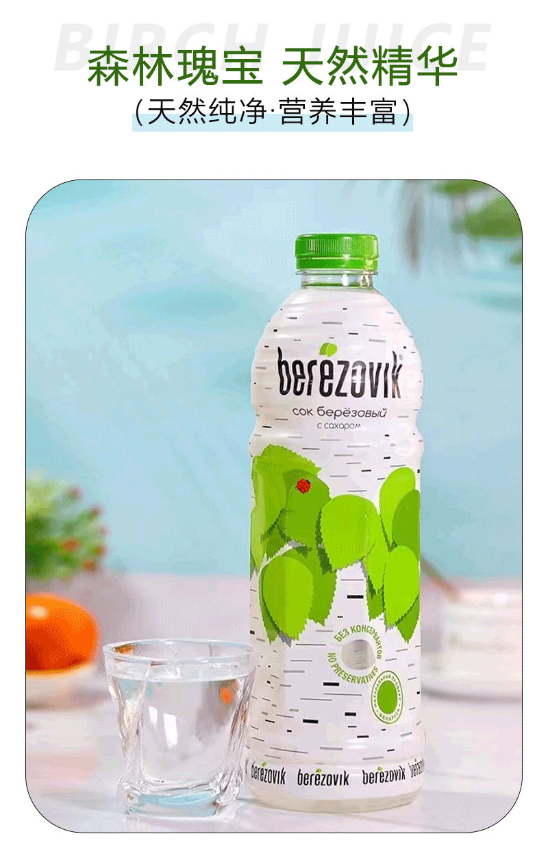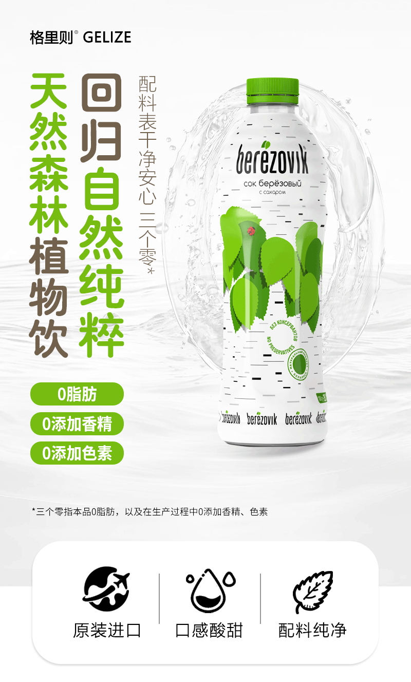 格里则白桦树汁白俄罗斯进口0脂肪0色素桦树提取汁液健康营养植物饮品 白桦树汁1L*4瓶