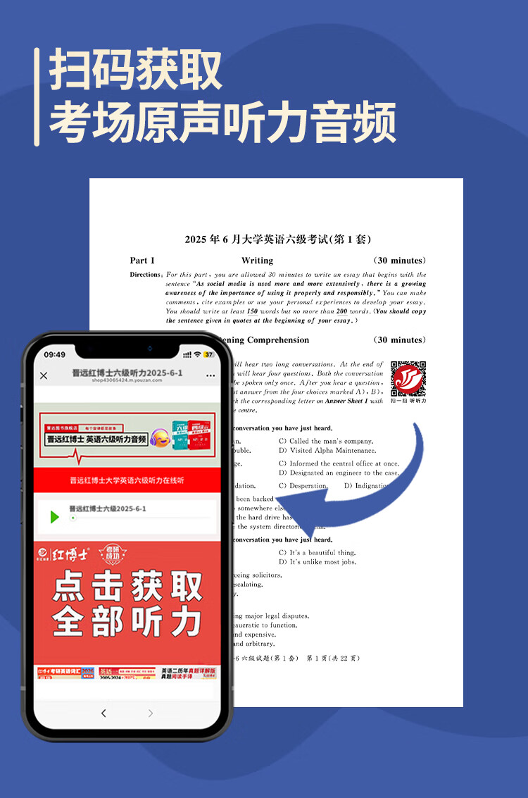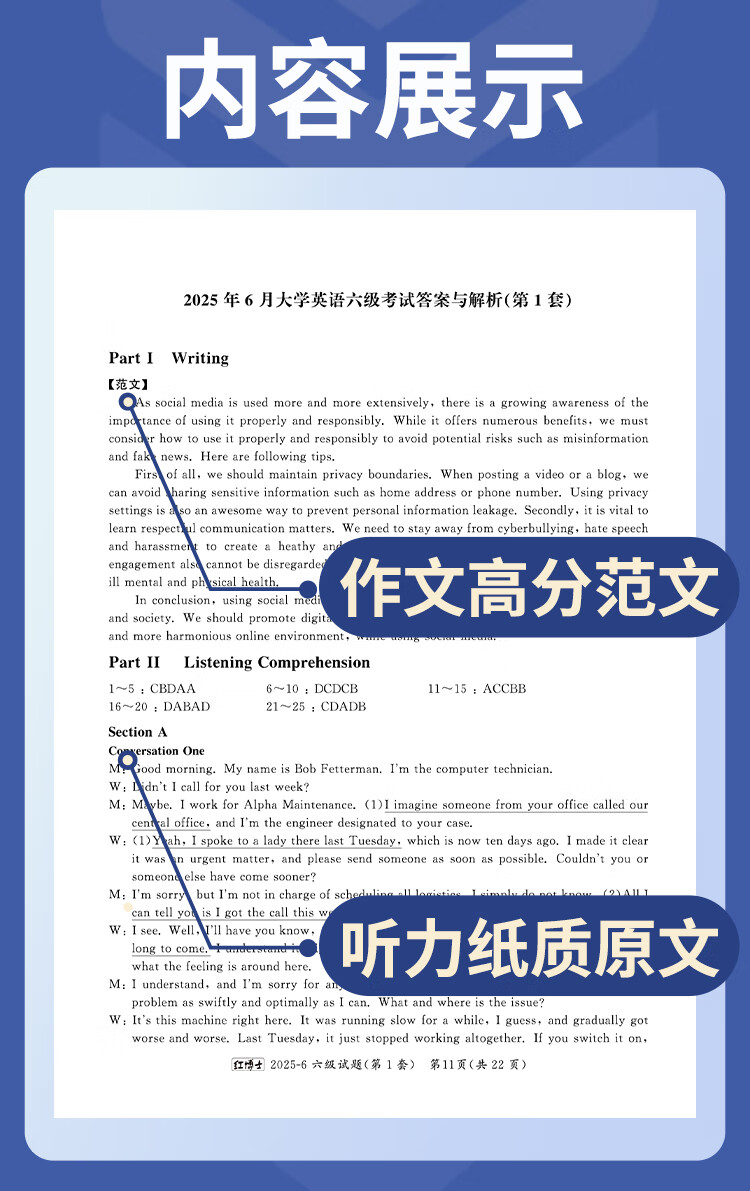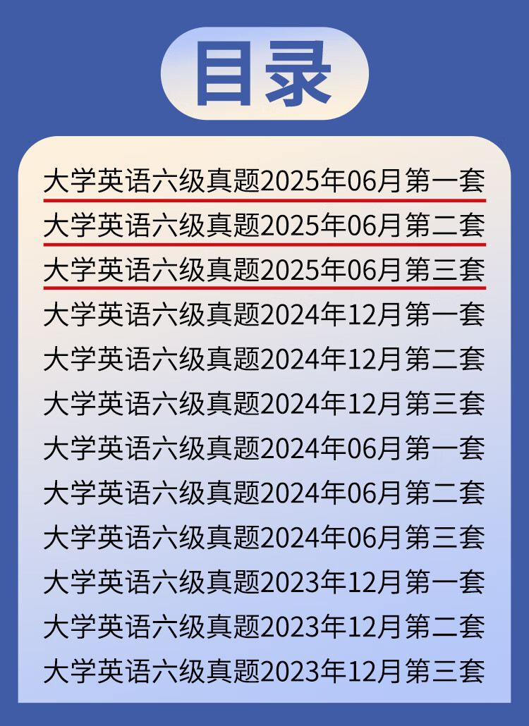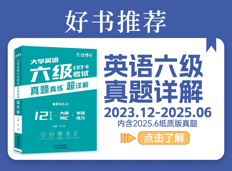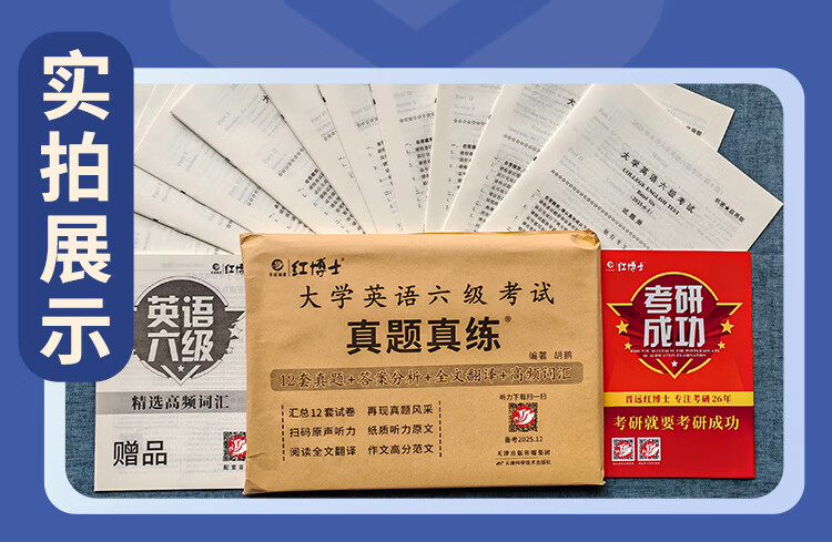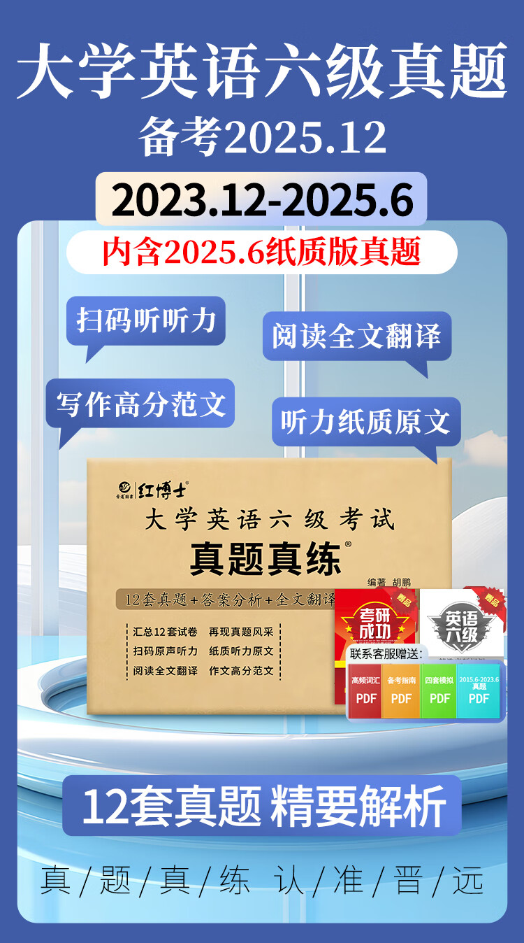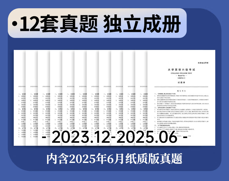 六级考试2025年12月大学英语六级考试真题试卷 全国统一CET6六级考试十二套真题纸质解析赠高频词汇 【基础版】六级真题12套纸质(真题+精简解析)