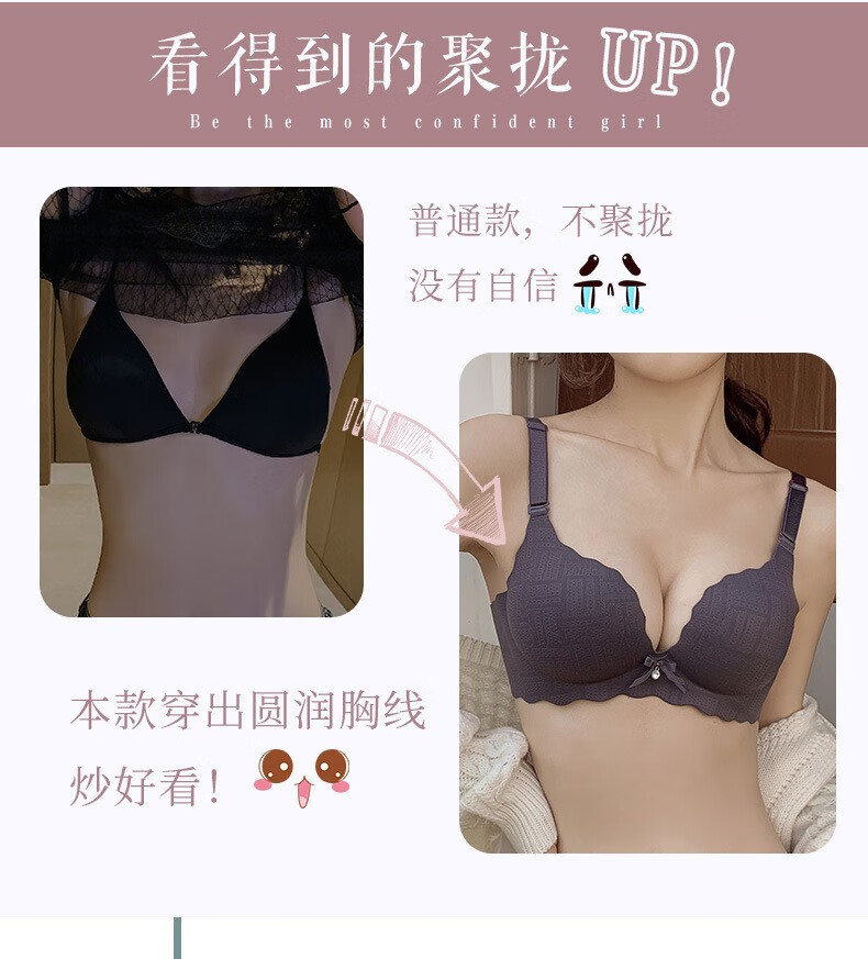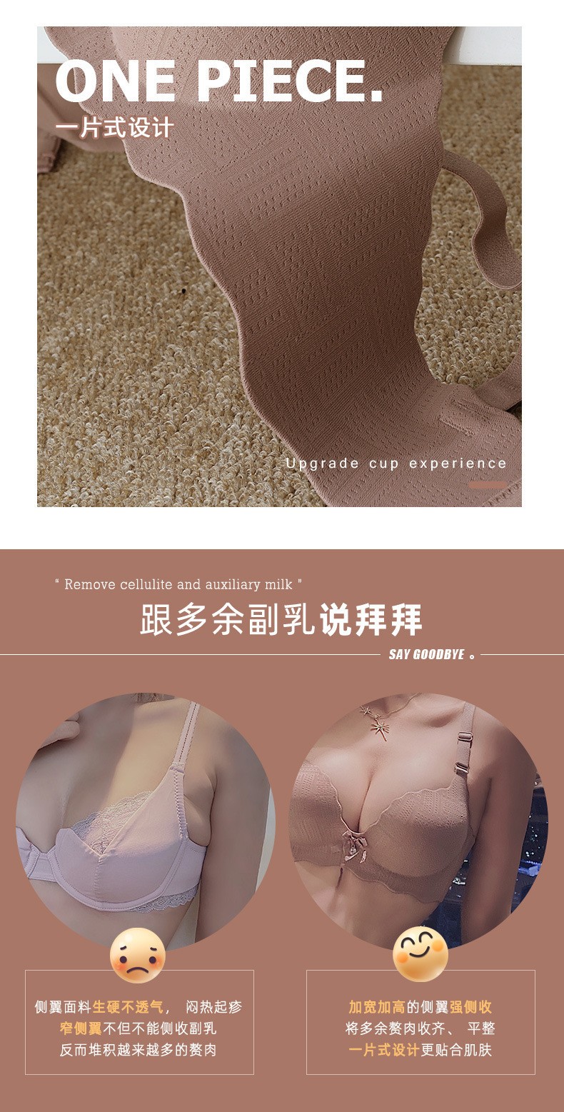 蝶蓝莎小胸AA杯聚拢显大内衣女无痕一片式收副乳调整型无钢圈加厚文胸罩 肤色(单件) 38/85码(AB通杯厚约3CM)