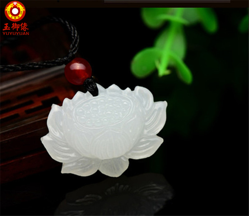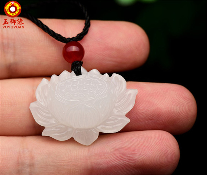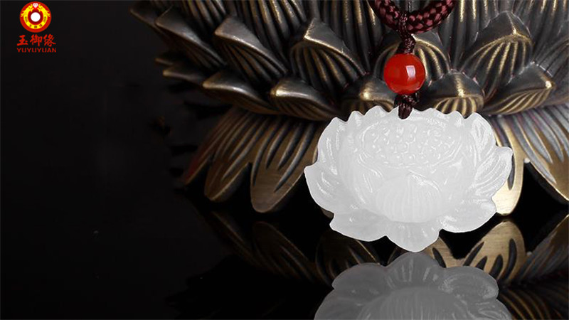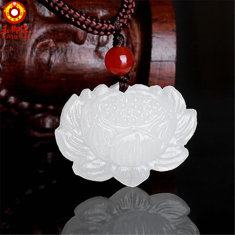 玉御缘【好事连连】白玉玉石吊坠玉坠玉佩白玉莲花吊坠女友妈妈礼物证书